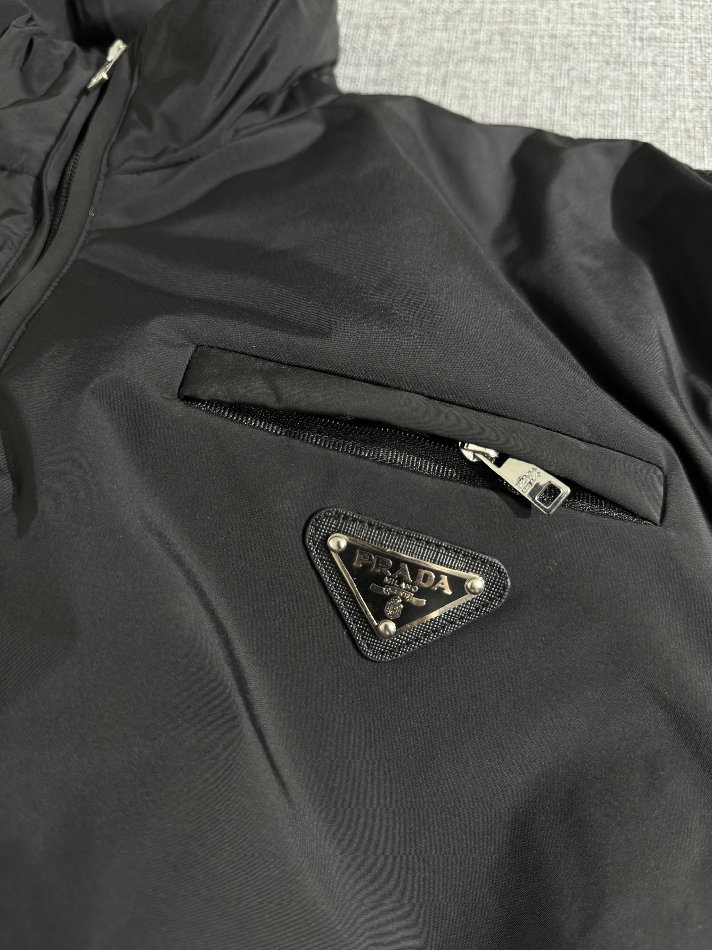 這款衣服是AAAAA 1:1 質量(非常棒). 使用了和原版一模一樣的材料. 商標部分也保持了和普拉達/Prada一樣. 圖片拍攝是實物衣服拍攝, 您所收到的實物保證和我們圖片一模一樣.