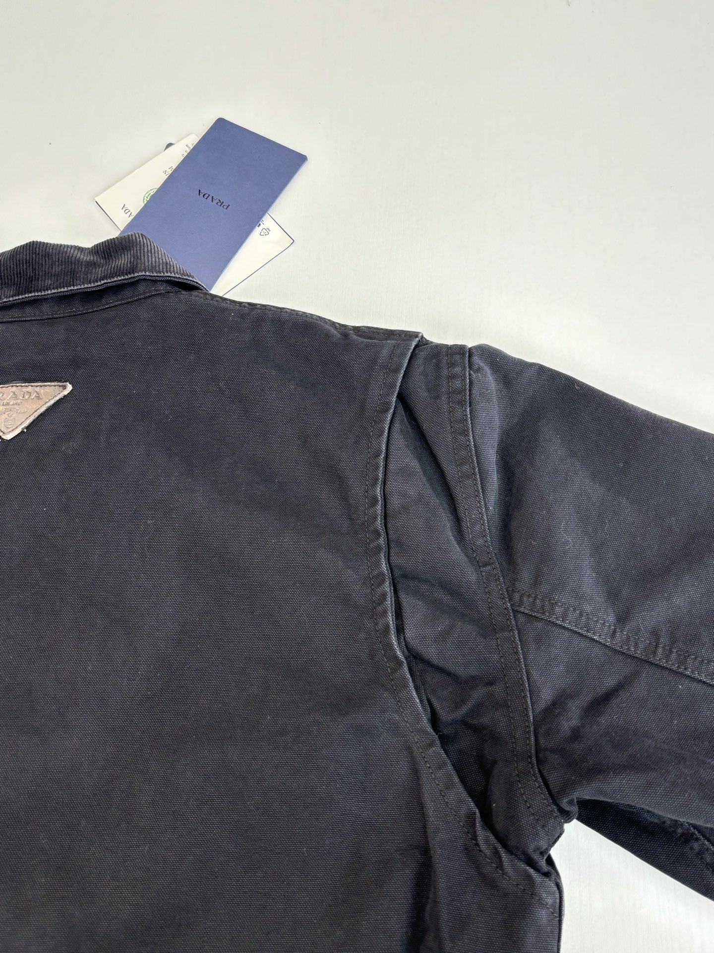 這款衣服是AAAAA 1:1 質量(非常棒). 使用了和原版一模一樣的材料. 商標部分也保持了和普拉達/Prada一樣. 圖片拍攝是實物衣服拍攝, 您所收到的實物保證和我們圖片一模一樣.