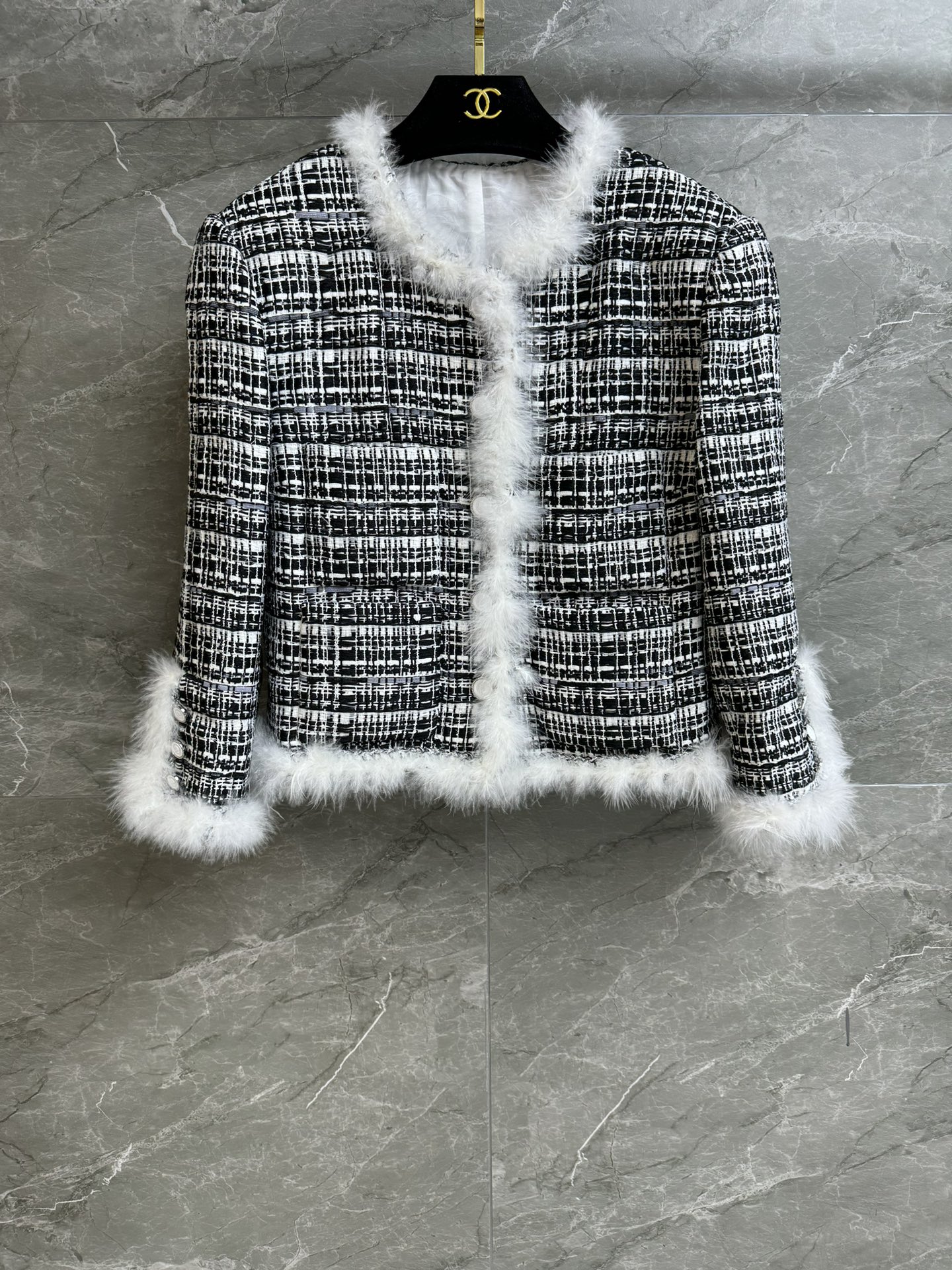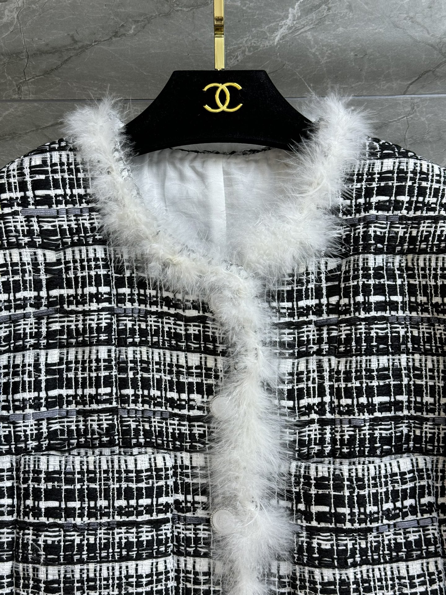 這款衣服是AAAAA 1:1 質量(非常棒). 使用了和原版一模一樣的材料. 商標部分也保持了和香奈兒/Chanel一樣. 圖片拍攝是實物衣服拍攝, 您所收到的實物保證和我們圖片一模一樣.