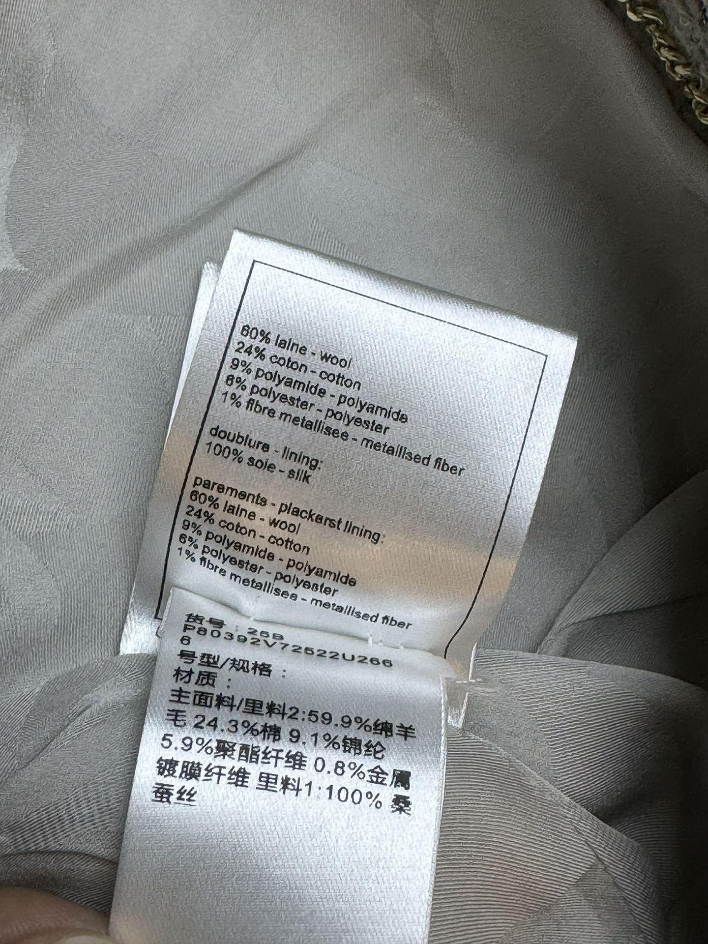 這款衣服是AAAAA 1:1 質量(非常棒). 使用了和原版一模一樣的材料. 商標部分也保持了和香奈兒/Chanel一樣. 圖片拍攝是實物衣服拍攝, 您所收到的實物保證和我們圖片一模一樣.