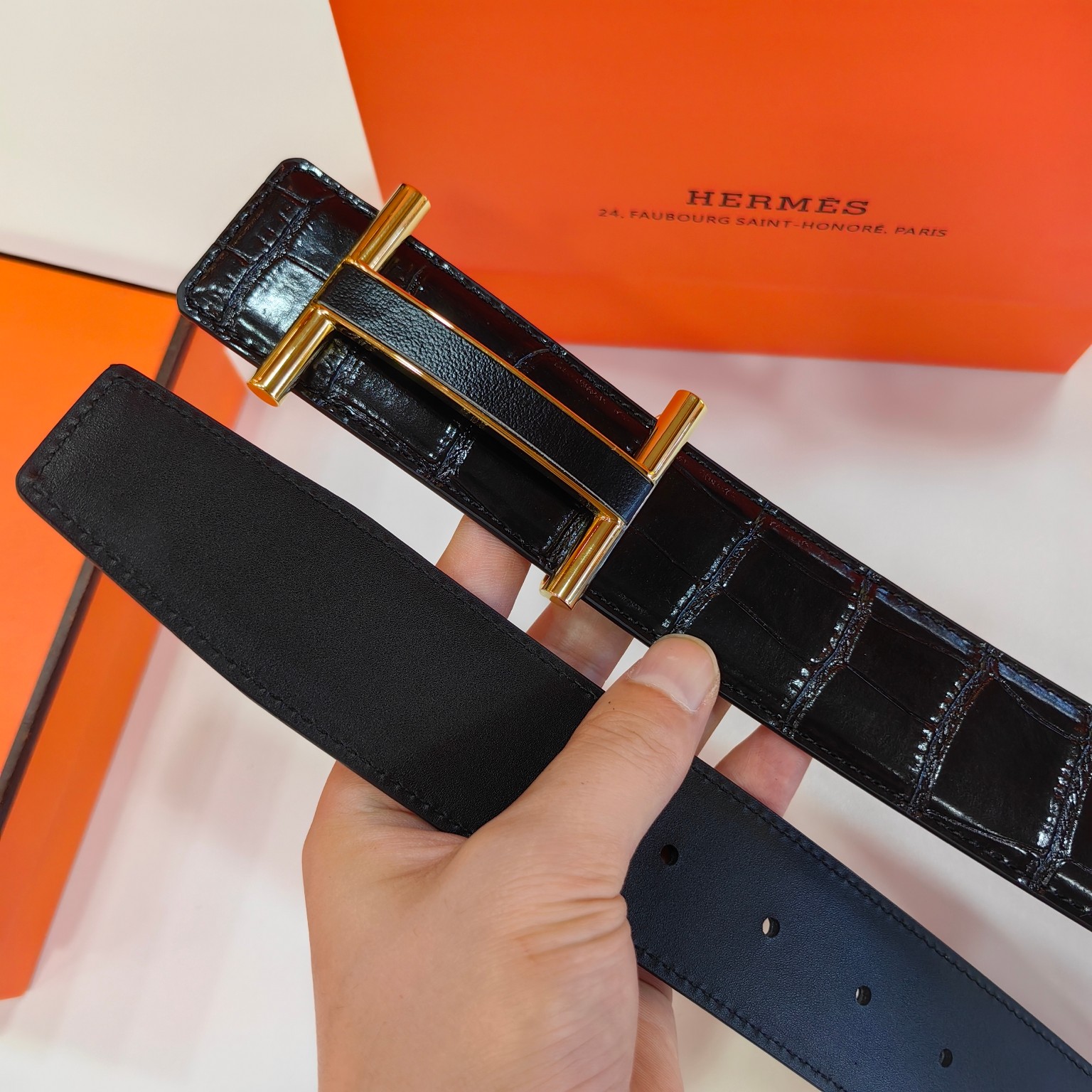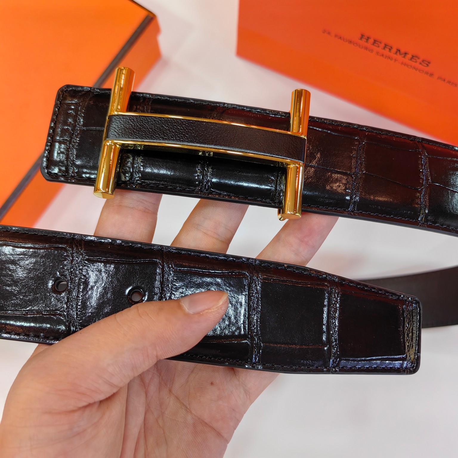 這款皮帶是AAAAA 1:1 質量(非常棒). 使用了和原版一模一樣的材料. 商標部分也保持了和愛馬仕/Hermes一樣. 圖片拍攝是實物皮帶拍攝, 您所收到的實物保證和我們圖片一模一樣.