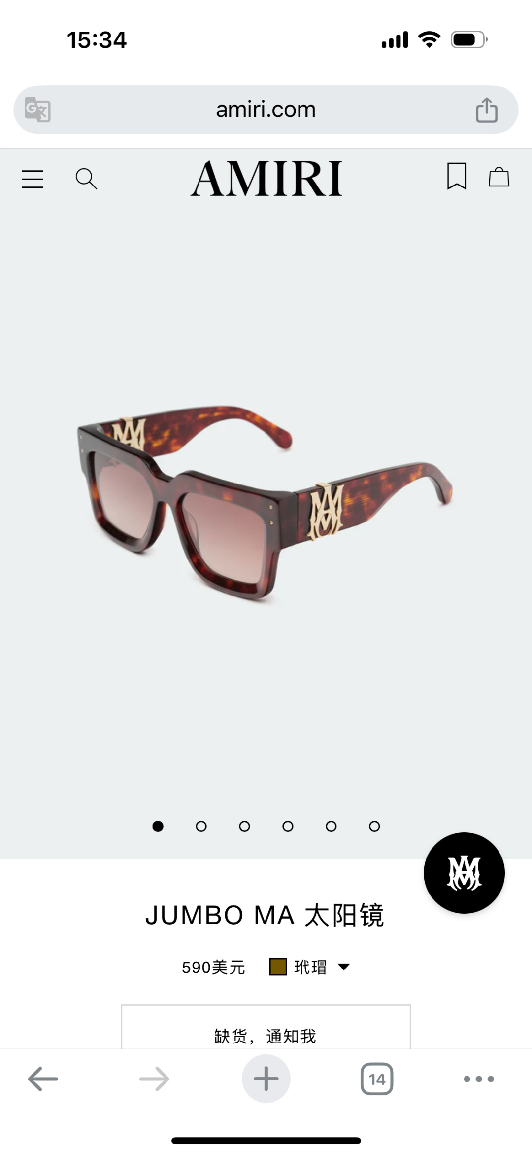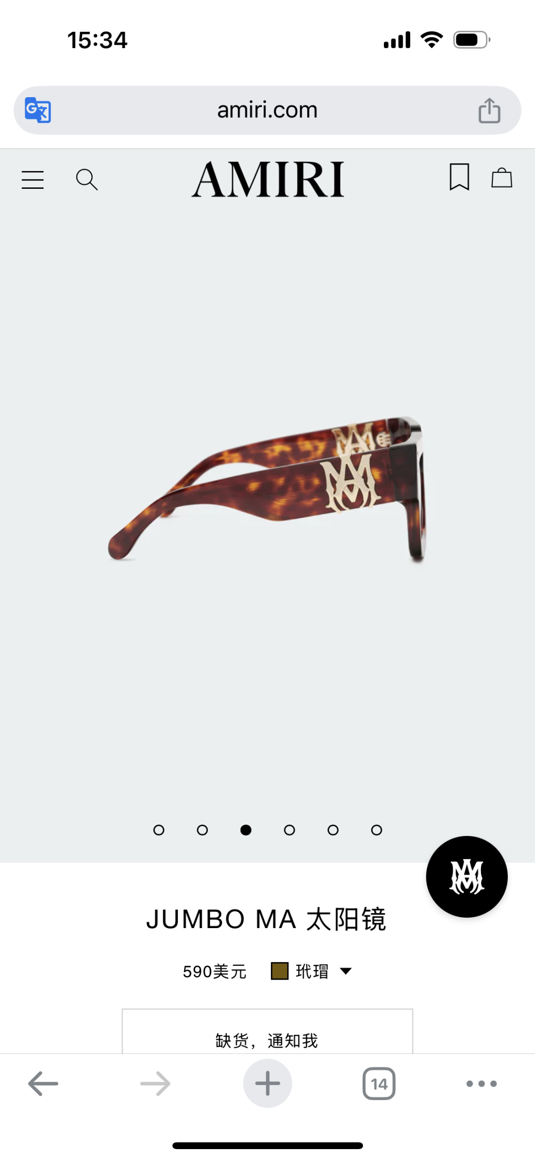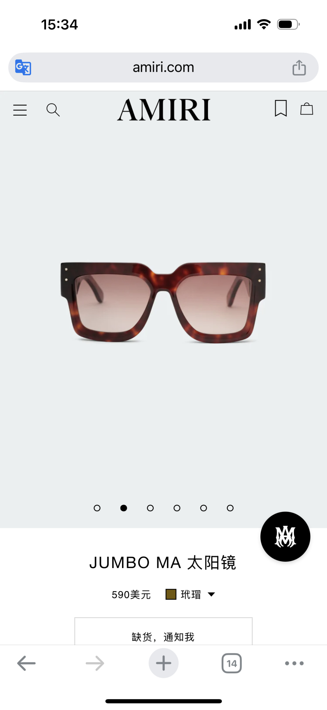 NO:3524849. 這款太陽眼鏡是來自於AMIRI的設計師.
