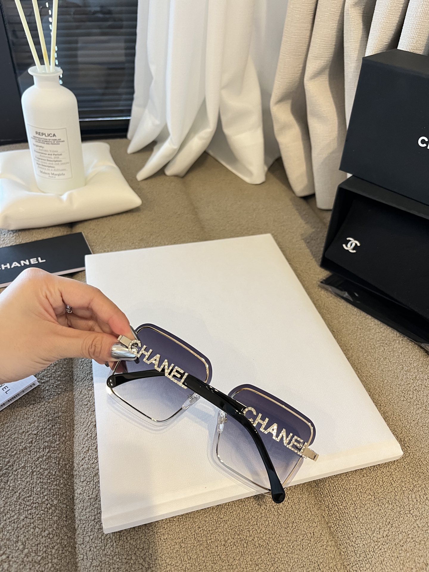 這款太陽眼鏡是AAAAA 1:1 質量(非常棒). 使用了和原版一模一樣的材料. 商標部分也保持了和一樣. 圖片拍攝是實物太陽眼鏡拍攝, 您所收到的實物保證和我們圖片一模一樣.