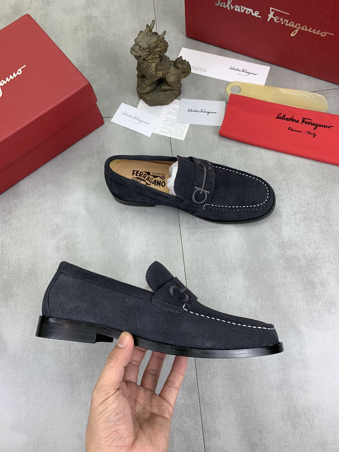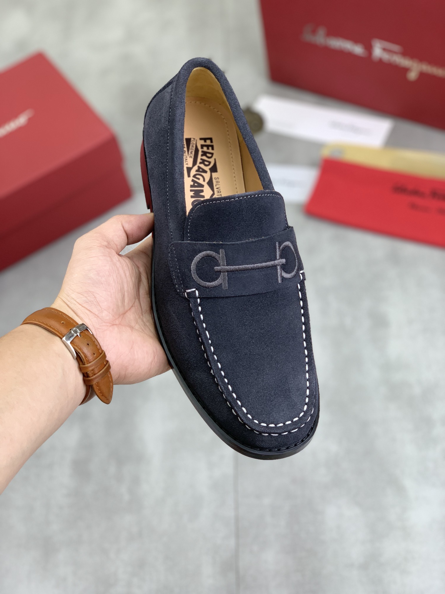 這款鞋子是AAAAA 1:1 質量(非常棒). 使用了和原版一模一樣的材料. 商標部分也保持了和菲拉格慕/Salvatore Ferragamo一樣. 圖片拍攝是實物鞋子拍攝, 您所收到的實物保證和我們圖片一模一樣.
