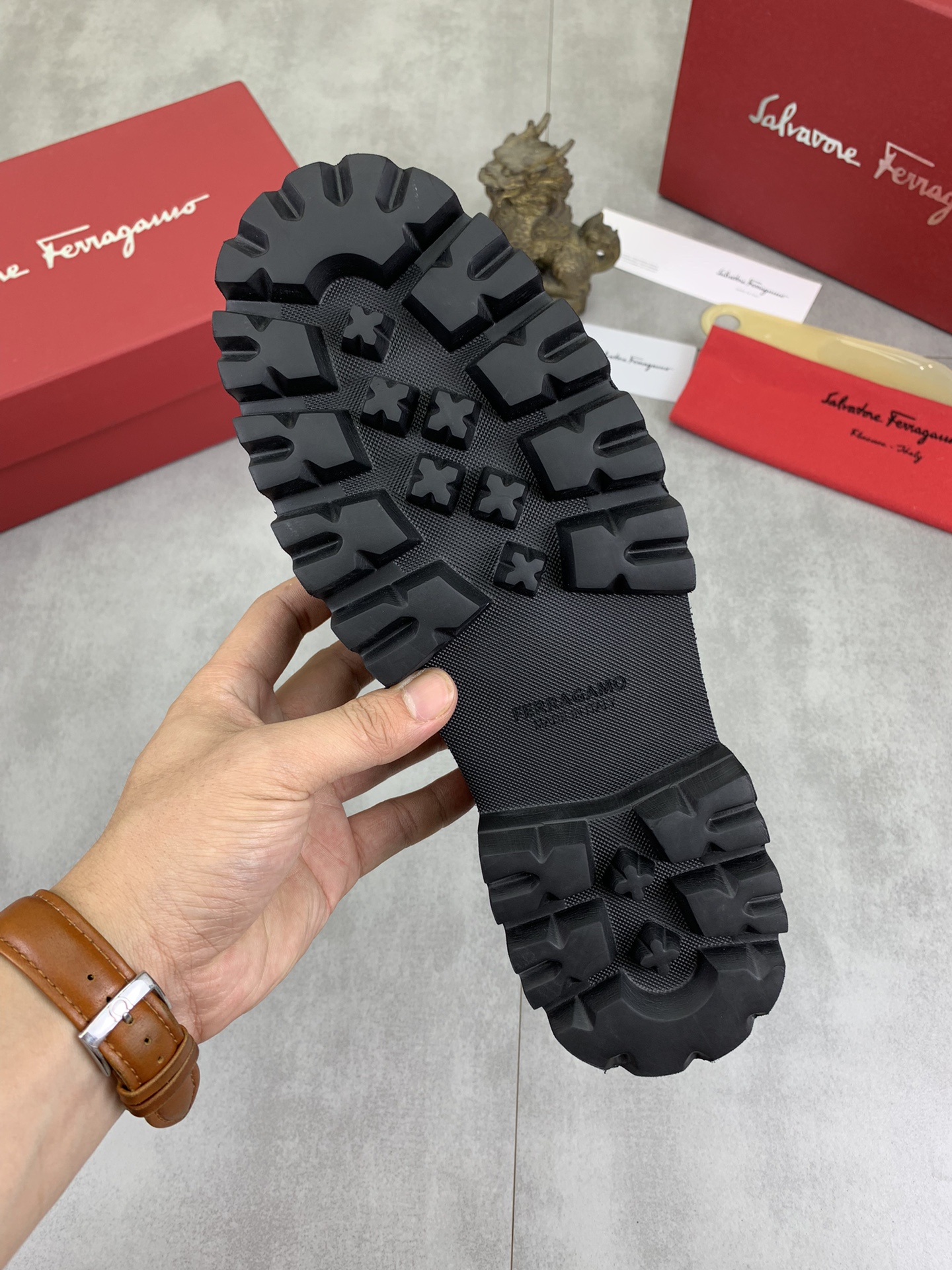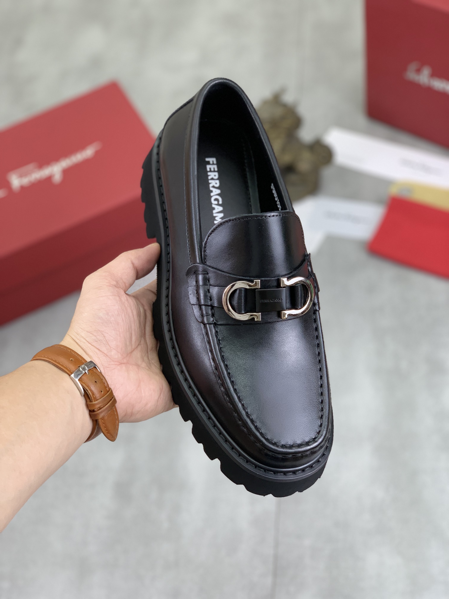 這款鞋子是AAAAA 1:1 質量(非常棒). 使用了和原版一模一樣的材料. 商標部分也保持了和菲拉格慕/Salvatore Ferragamo一樣. 圖片拍攝是實物鞋子拍攝, 您所收到的實物保證和我們圖片一模一樣.