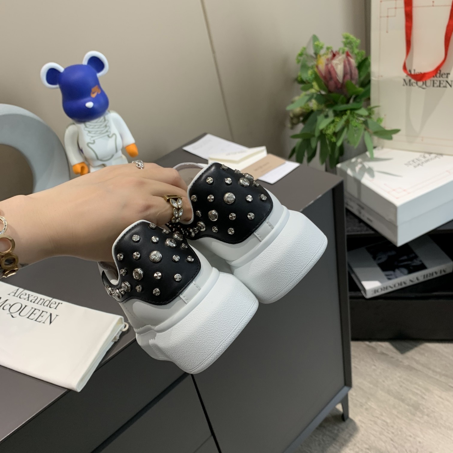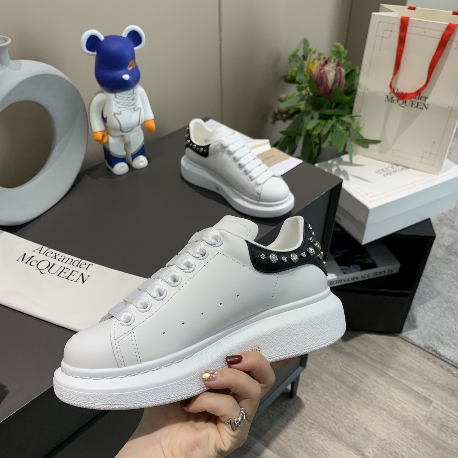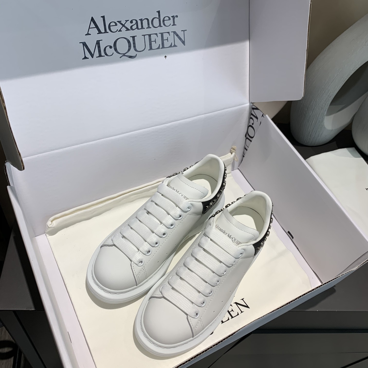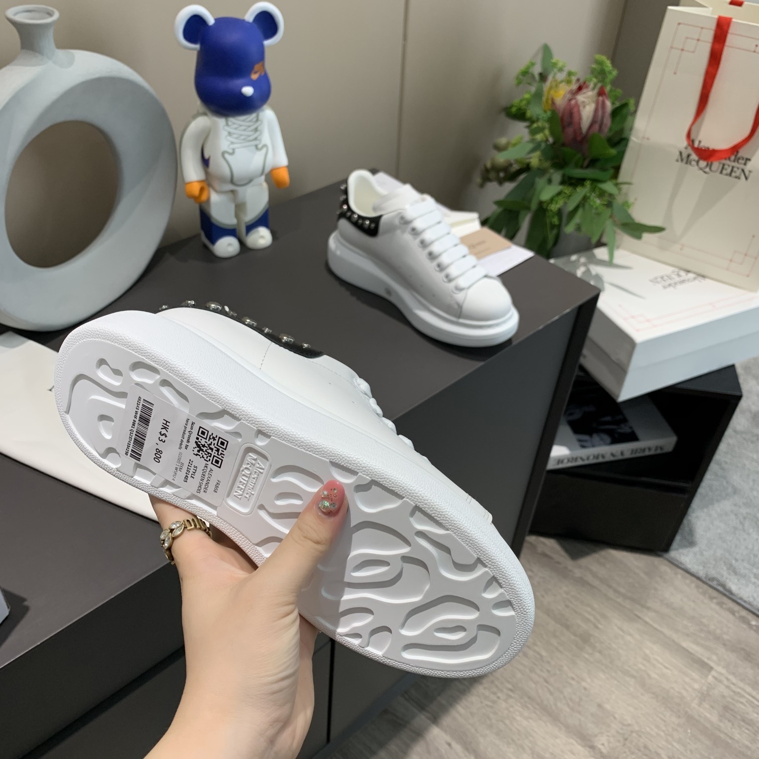這款鞋子是AAAAA 1:1 質量(非常棒). 使用了和原版一模一樣的材料. 商標部分也保持了和麥奎恩/McQueen一樣. 圖片拍攝是實物鞋子拍攝, 您所收到的實物保證和我們圖片一模一樣.