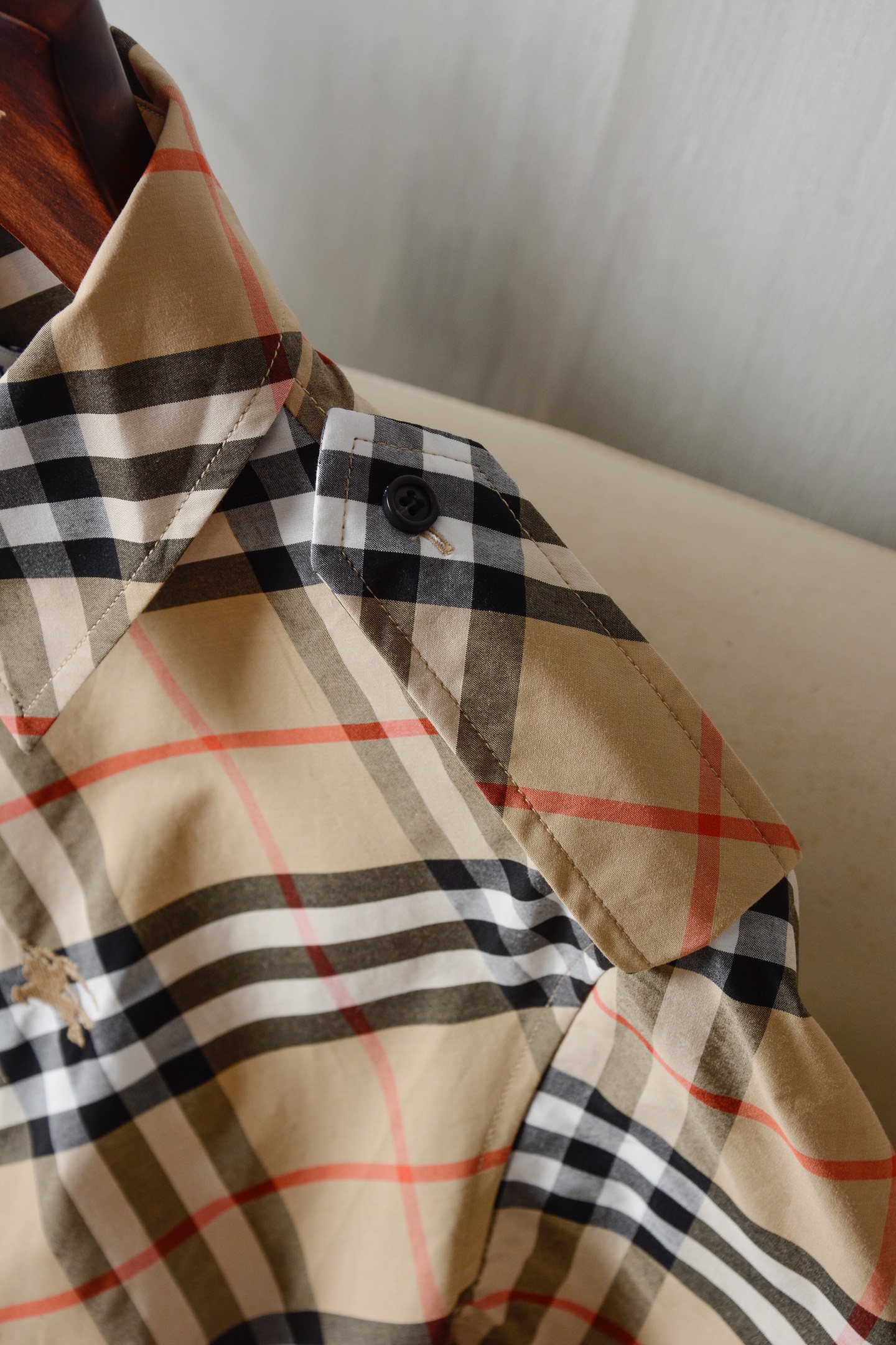 這款衣服是AAAAA 1:1 質量(非常棒). 使用了和原版一模一樣的材料. 商標部分也保持了和巴寶莉/Burberry一樣. 圖片拍攝是實物衣服拍攝, 您所收到的實物保證和我們圖片一模一樣.