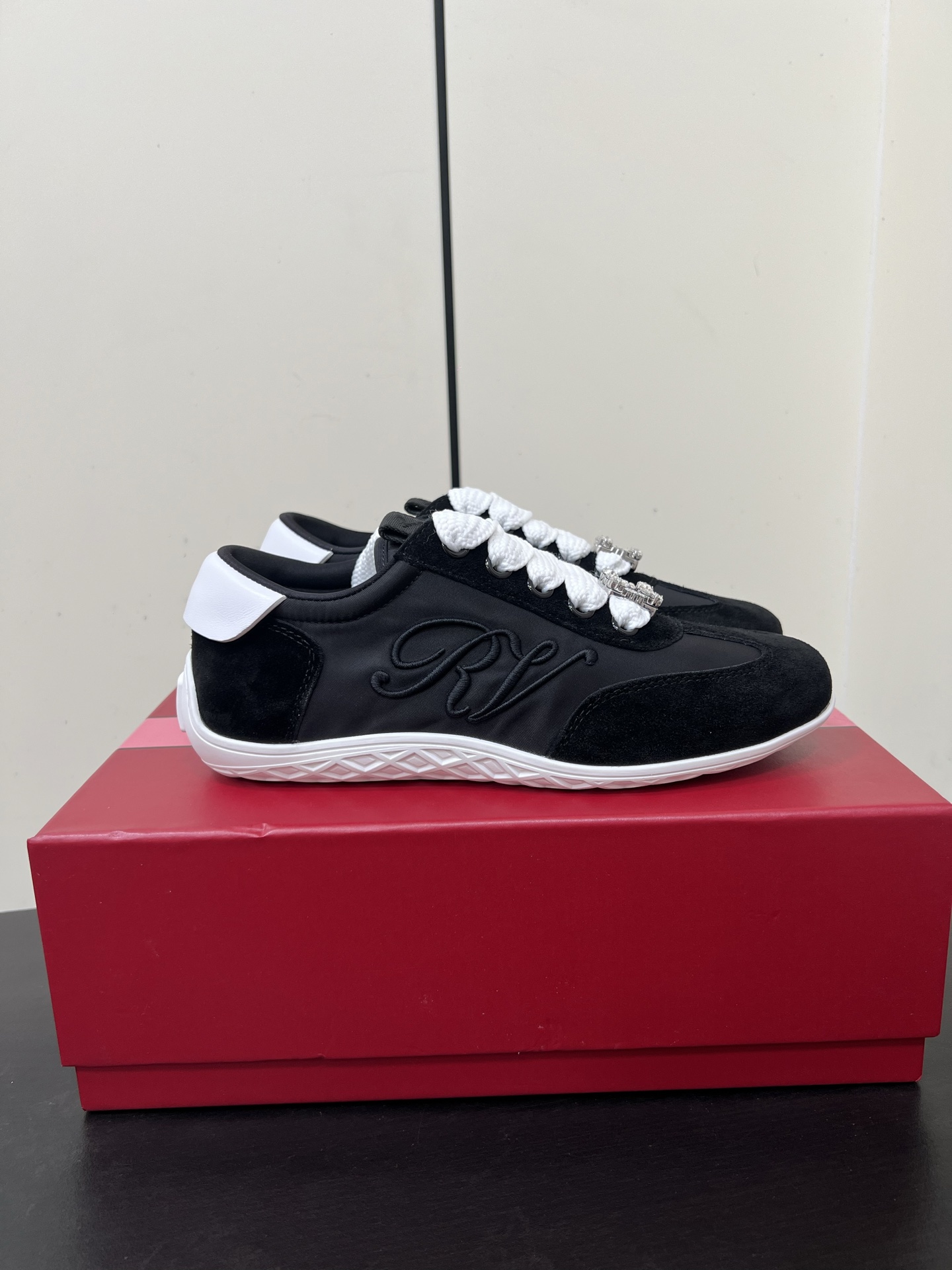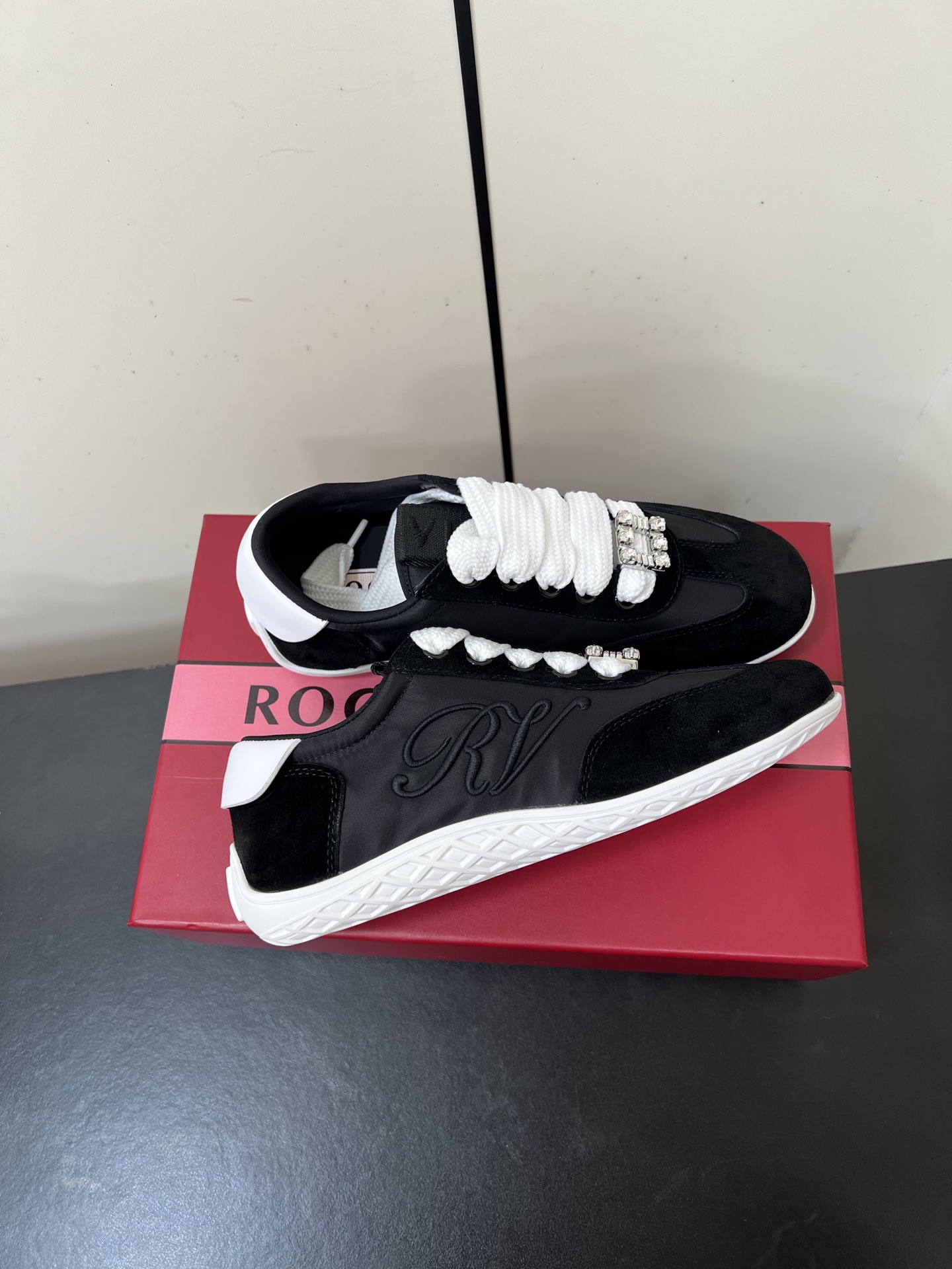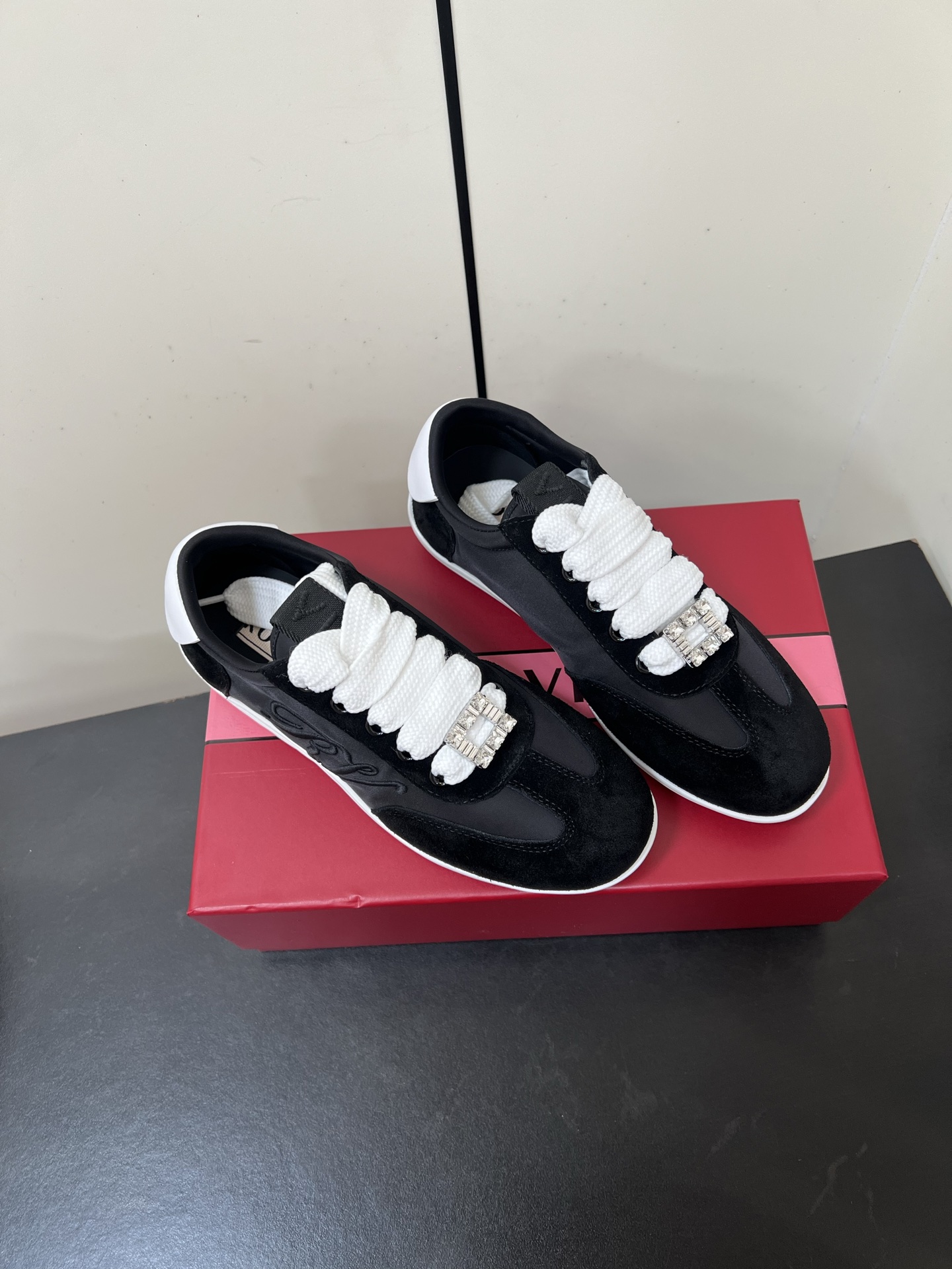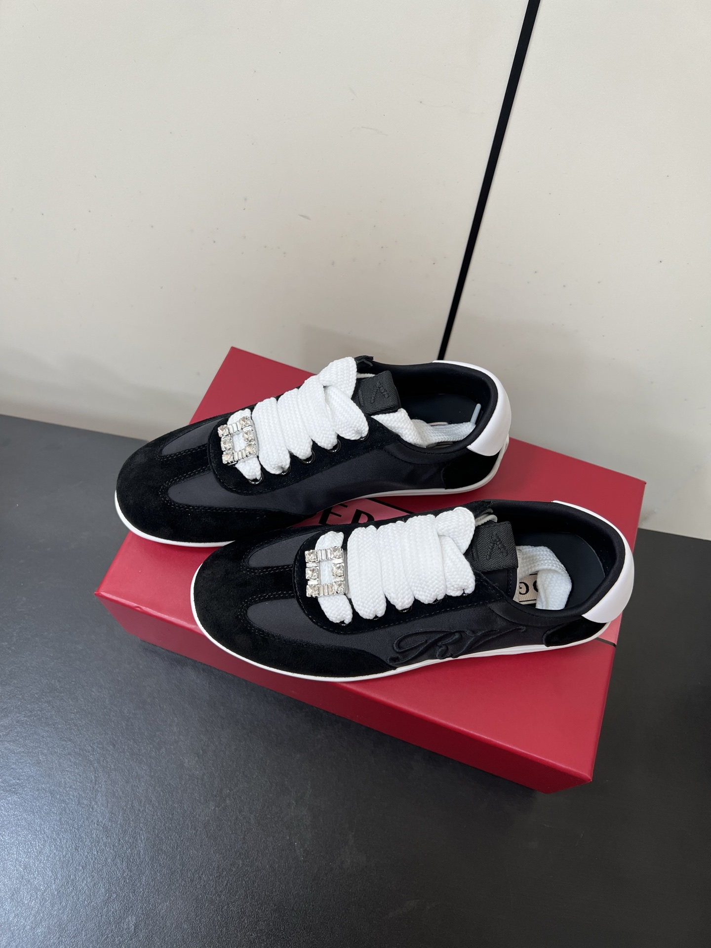 這款鞋子是AAAAA 1:1 質量(非常棒). 使用了和原版一模一樣的材料. 商標部分也保持了和羅傑維維耶/Roger Vivier一樣. 圖片拍攝是實物鞋子拍攝, 您所收到的實物保證和我們圖片一模一樣.