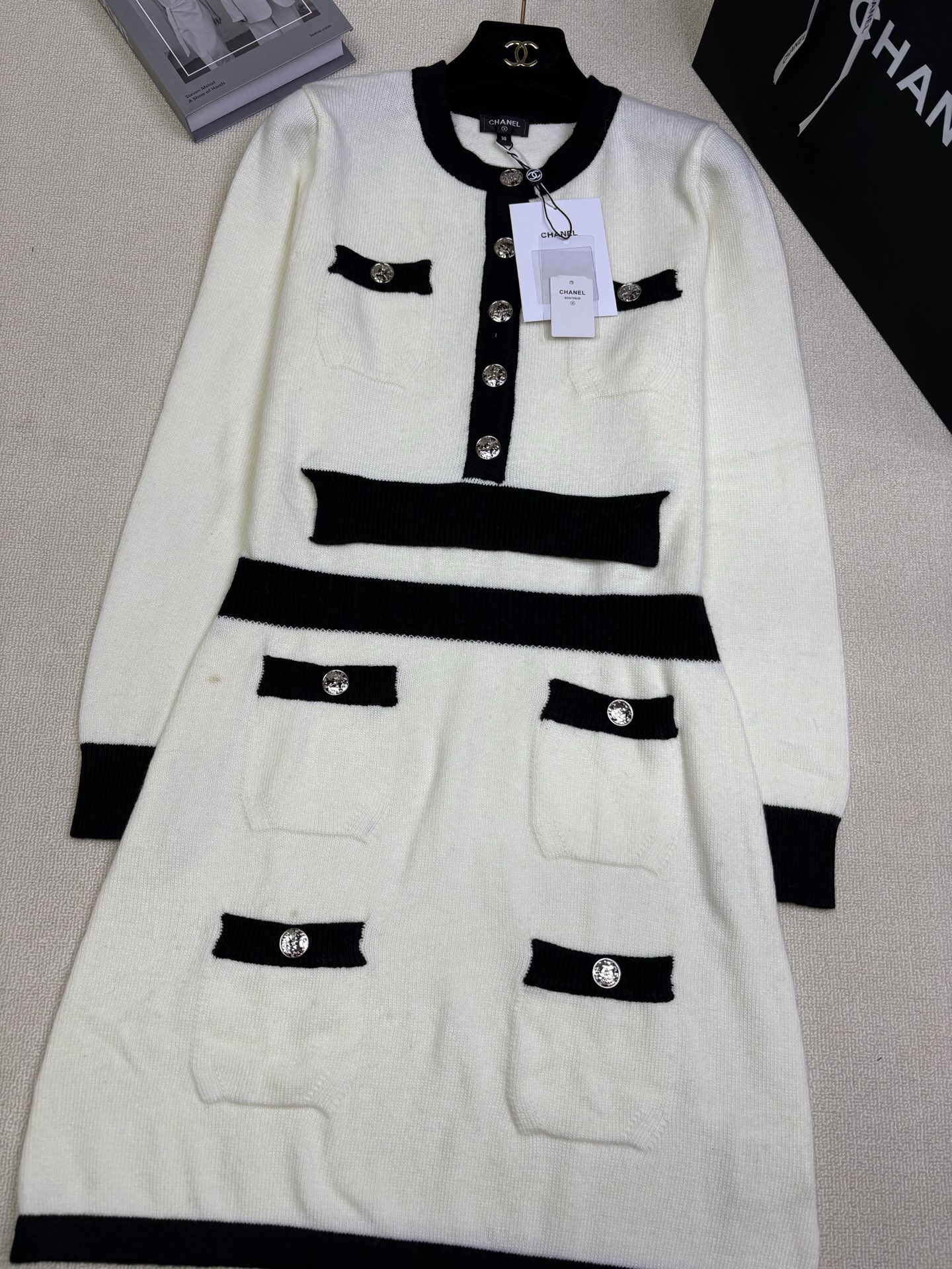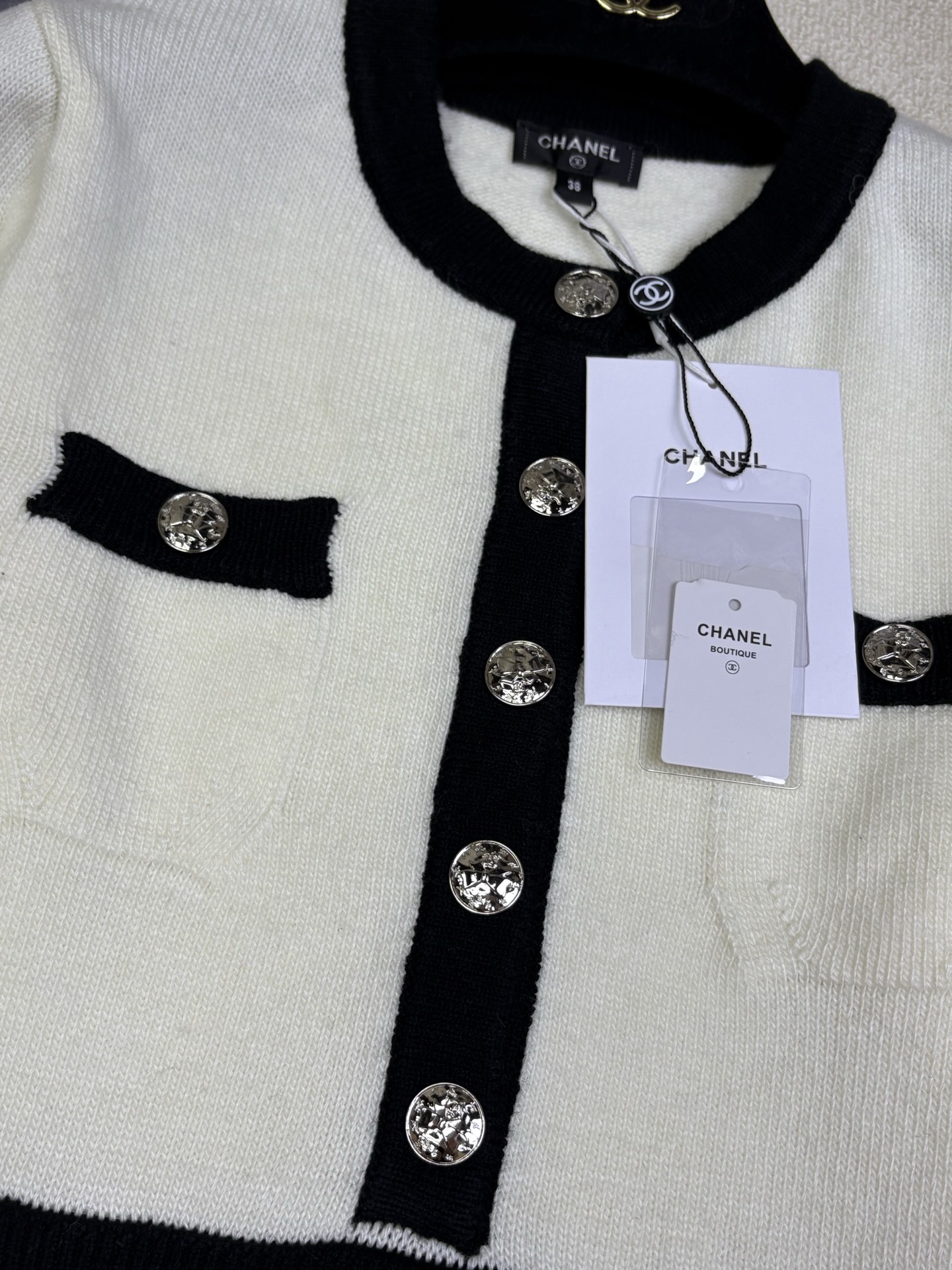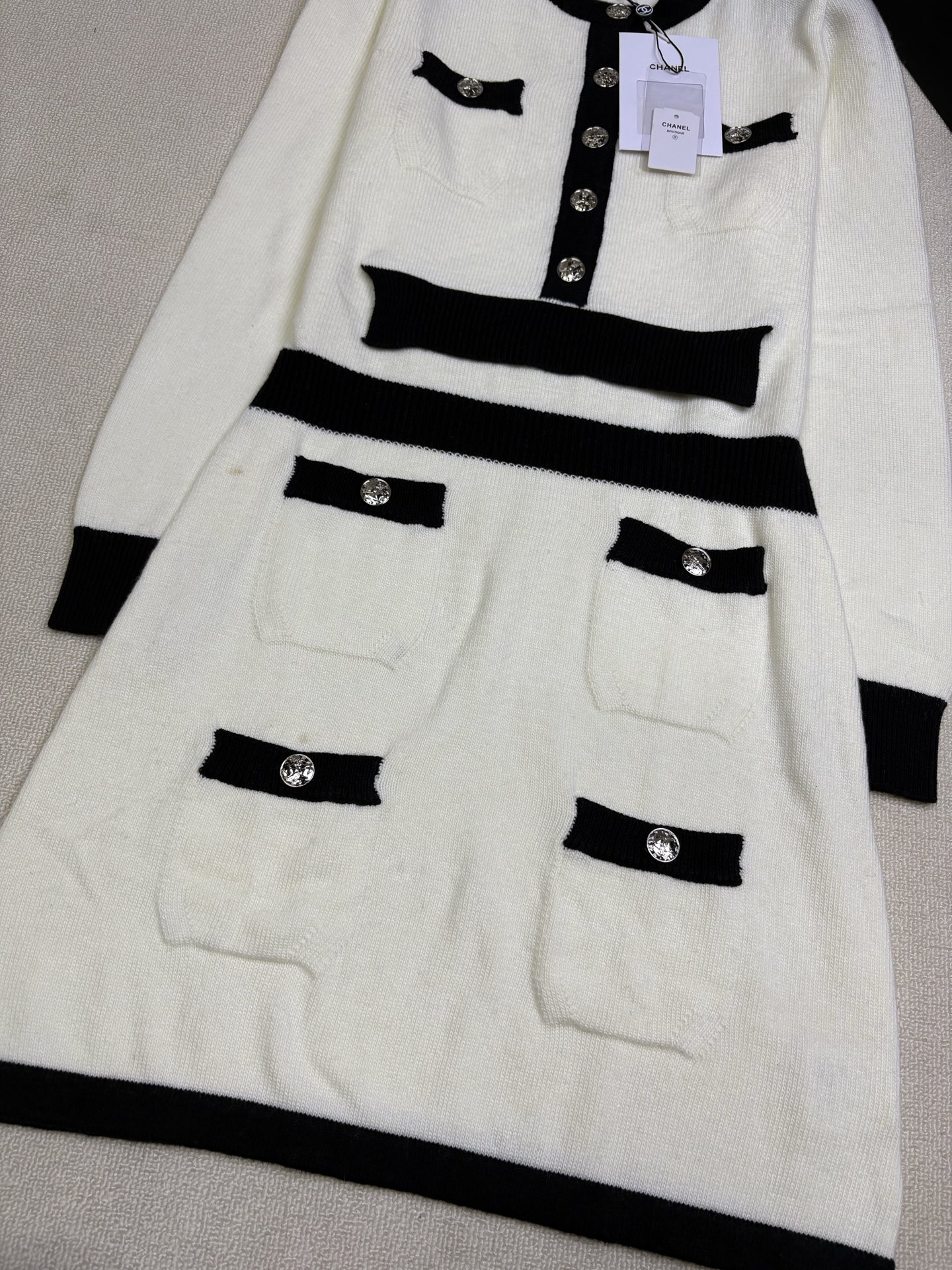 這款衣服是AAAAA 1:1 質量(非常棒). 使用了和原版一模一樣的材料. 商標部分也保持了和香奈兒/Chanel一樣. 圖片拍攝是實物衣服拍攝, 您所收到的實物保證和我們圖片一模一樣.