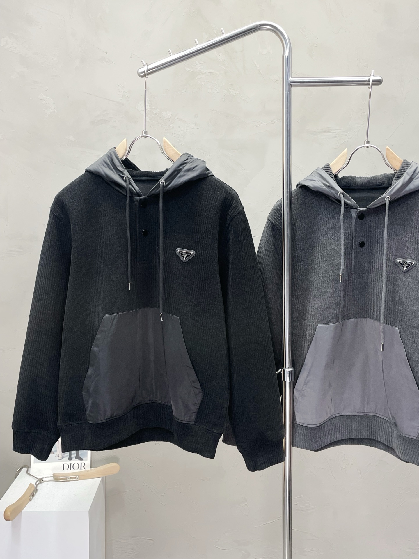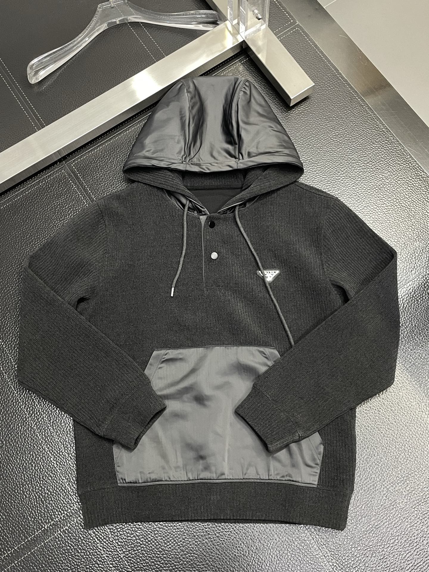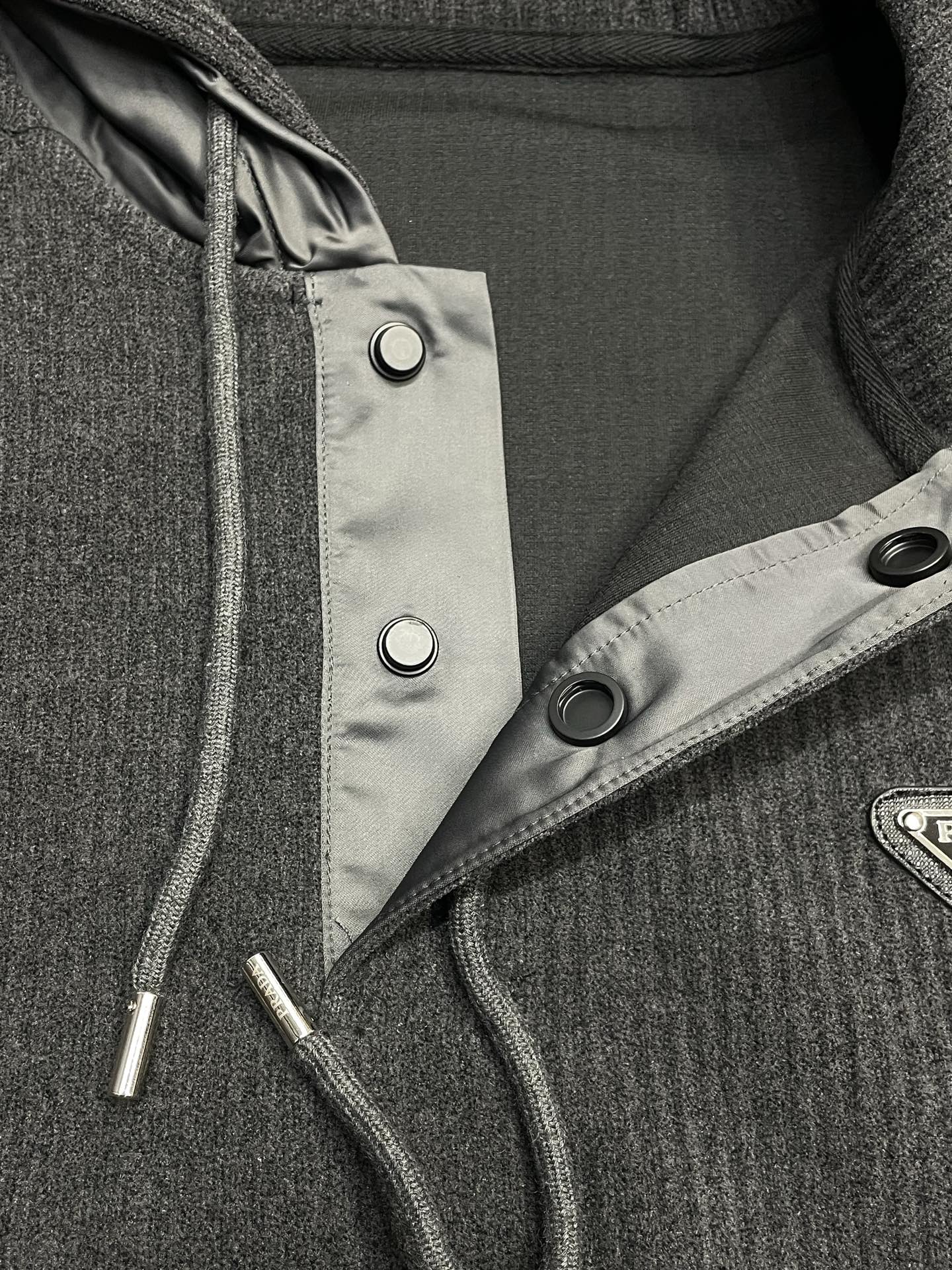 這款衣服是AAAAA 1:1 質量(非常棒). 使用了和原版一模一樣的材料. 商標部分也保持了和普拉達/Prada一樣. 圖片拍攝是實物衣服拍攝, 您所收到的實物保證和我們圖片一模一樣.
