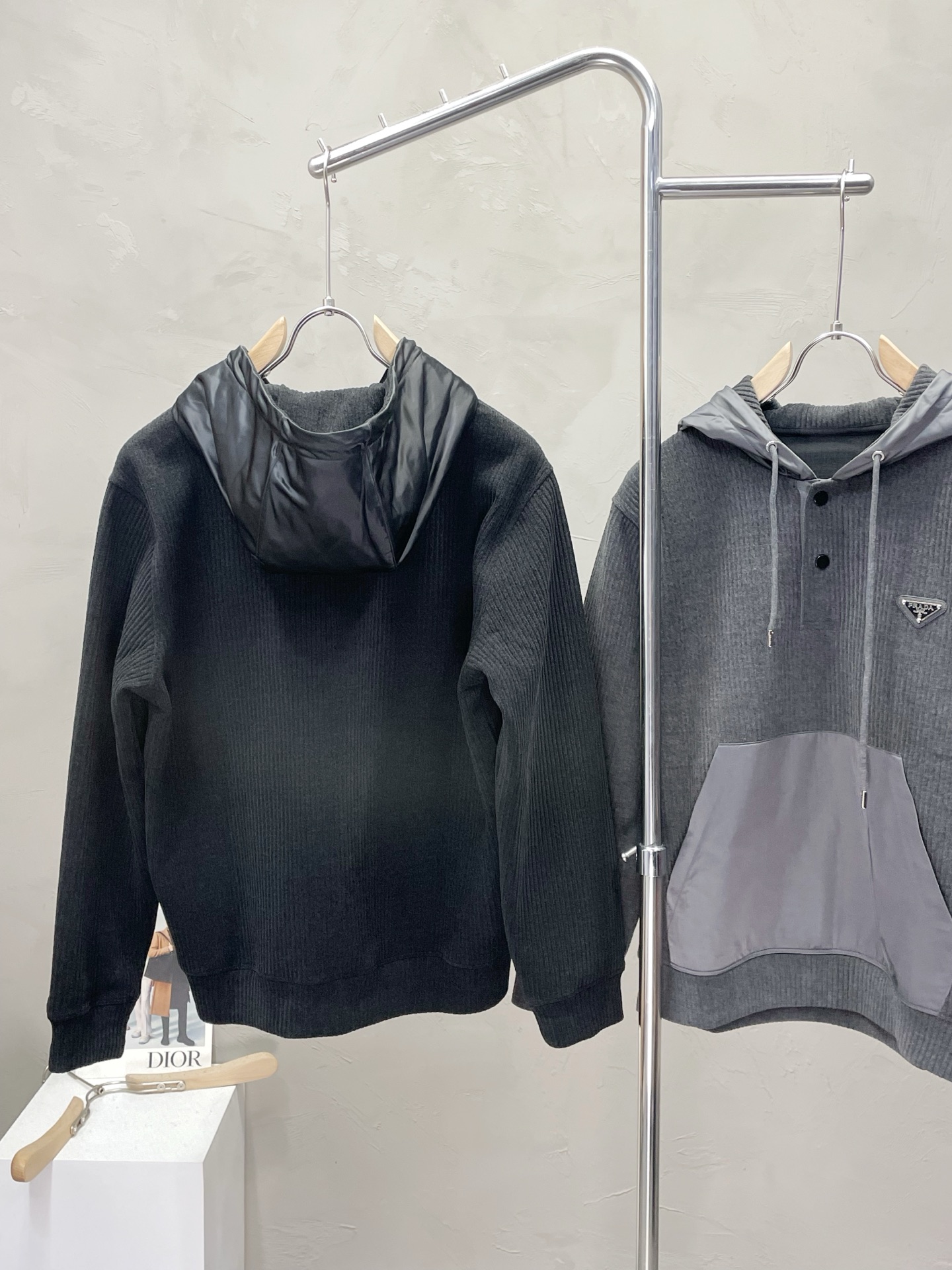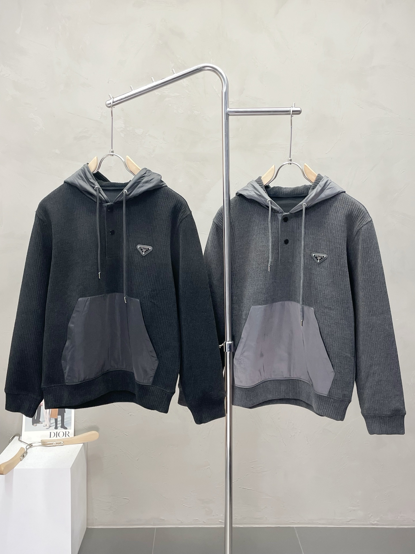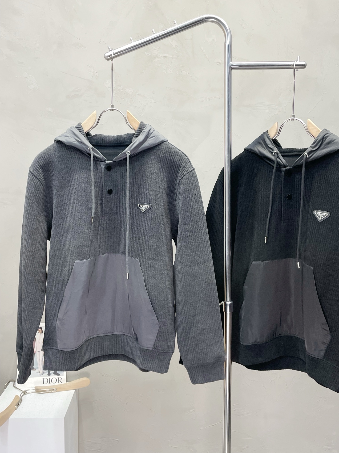 這款衣服是AAAAA 1:1 質量(非常棒). 使用了和原版一模一樣的材料. 商標部分也保持了和普拉達/Prada一樣. 圖片拍攝是實物衣服拍攝, 您所收到的實物保證和我們圖片一模一樣.