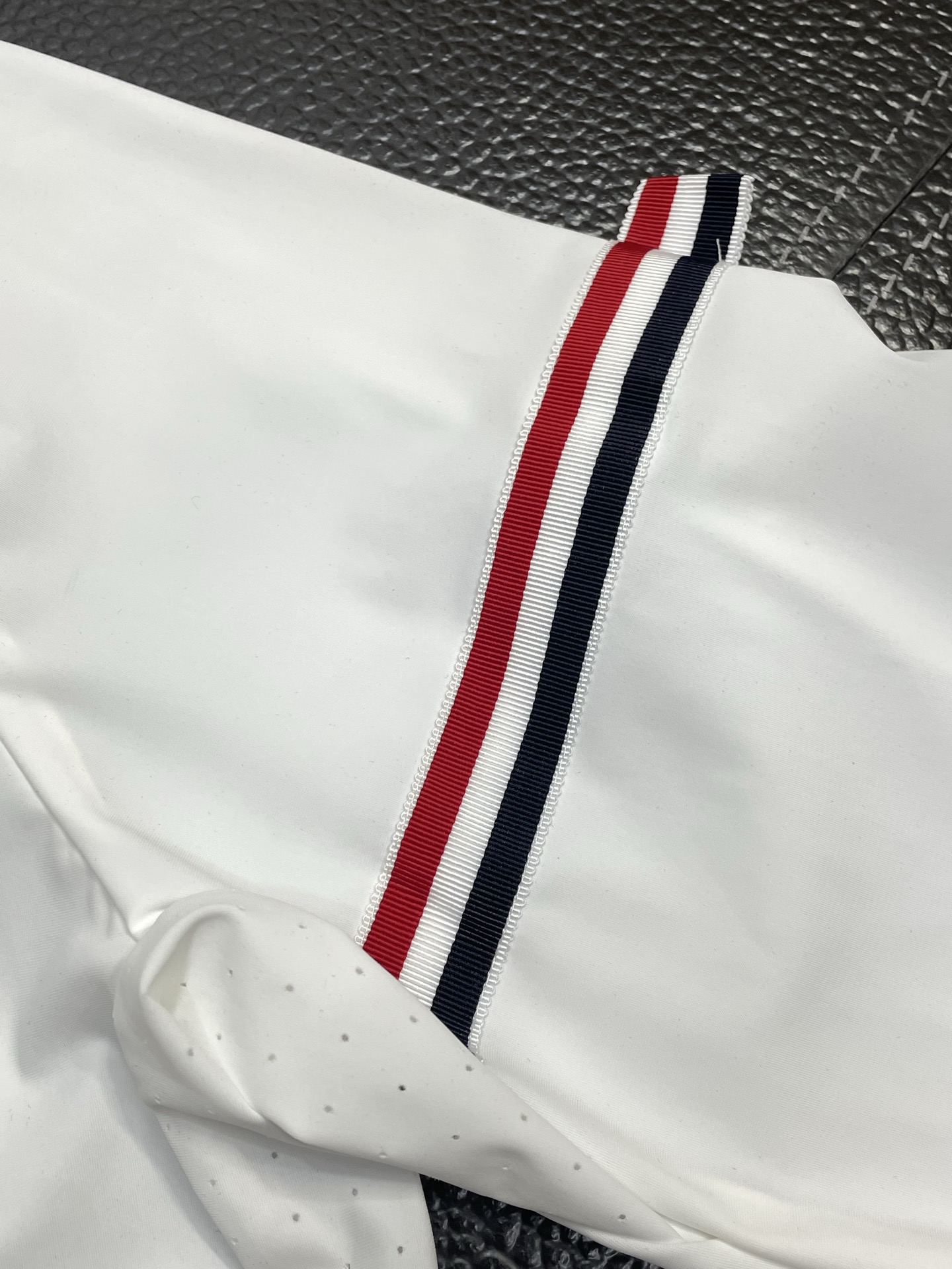 這款衣服是AAAAA 1:1 質量(非常棒). 使用了和原版一模一樣的材料. 商標部分也保持了和湯姆布朗/Thom Browne一樣. 圖片拍攝是實物衣服拍攝, 您所收到的實物保證和我們圖片一模一樣.