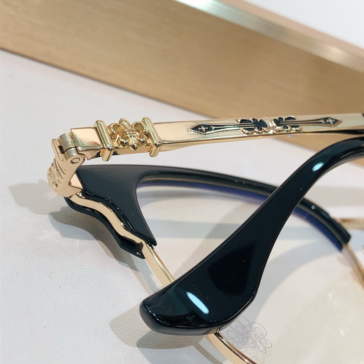 這款太陽眼鏡是AAAAA 1:1 質量(非常棒). 使用了和原版一模一樣的材料. 商標部分也保持了和鉻心/Chrome Hearts一樣. 圖片拍攝是實物太陽眼鏡拍攝, 您所收到的實物保證和我們圖片一模一樣.