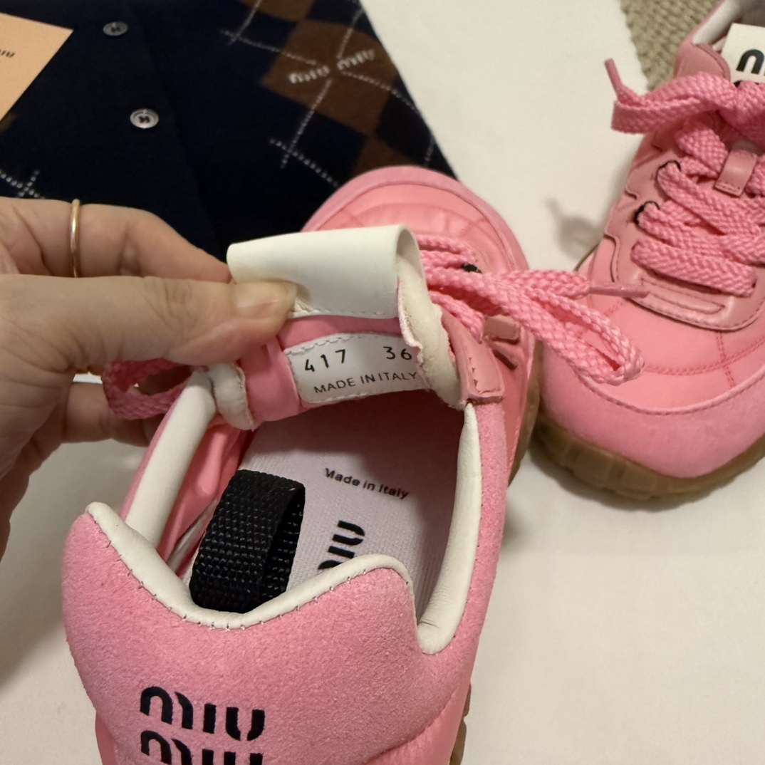 這款鞋子是AAAAA 1:1 質量(非常棒). 使用了和原版一模一樣的材料. 商標部分也保持了和繆繆/Miu Miu一樣. 圖片拍攝是實物鞋子拍攝, 您所收到的實物保證和我們圖片一模一樣.