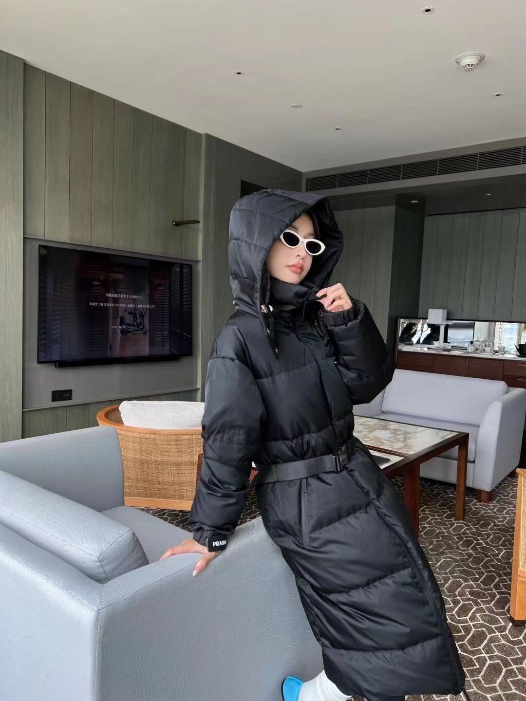 這款衣服是AAAAA 1:1 質量(非常棒). 使用了和原版一模一樣的材料. 商標部分也保持了和普拉達/Prada一樣. 圖片拍攝是實物衣服拍攝, 您所收到的實物保證和我們圖片一模一樣.