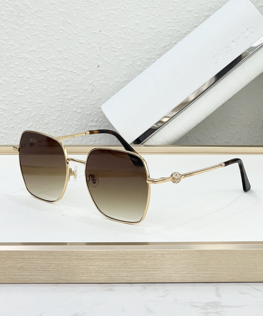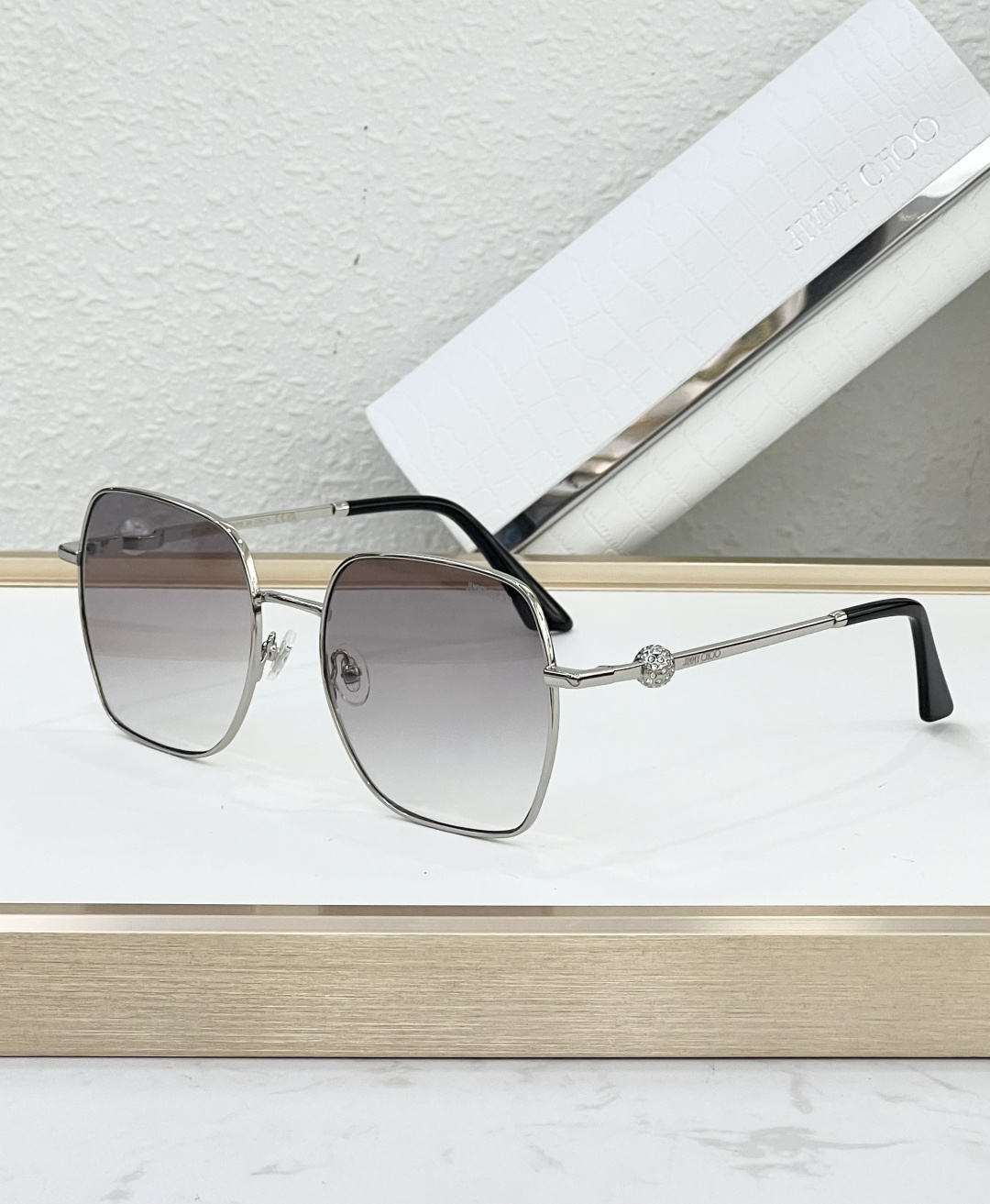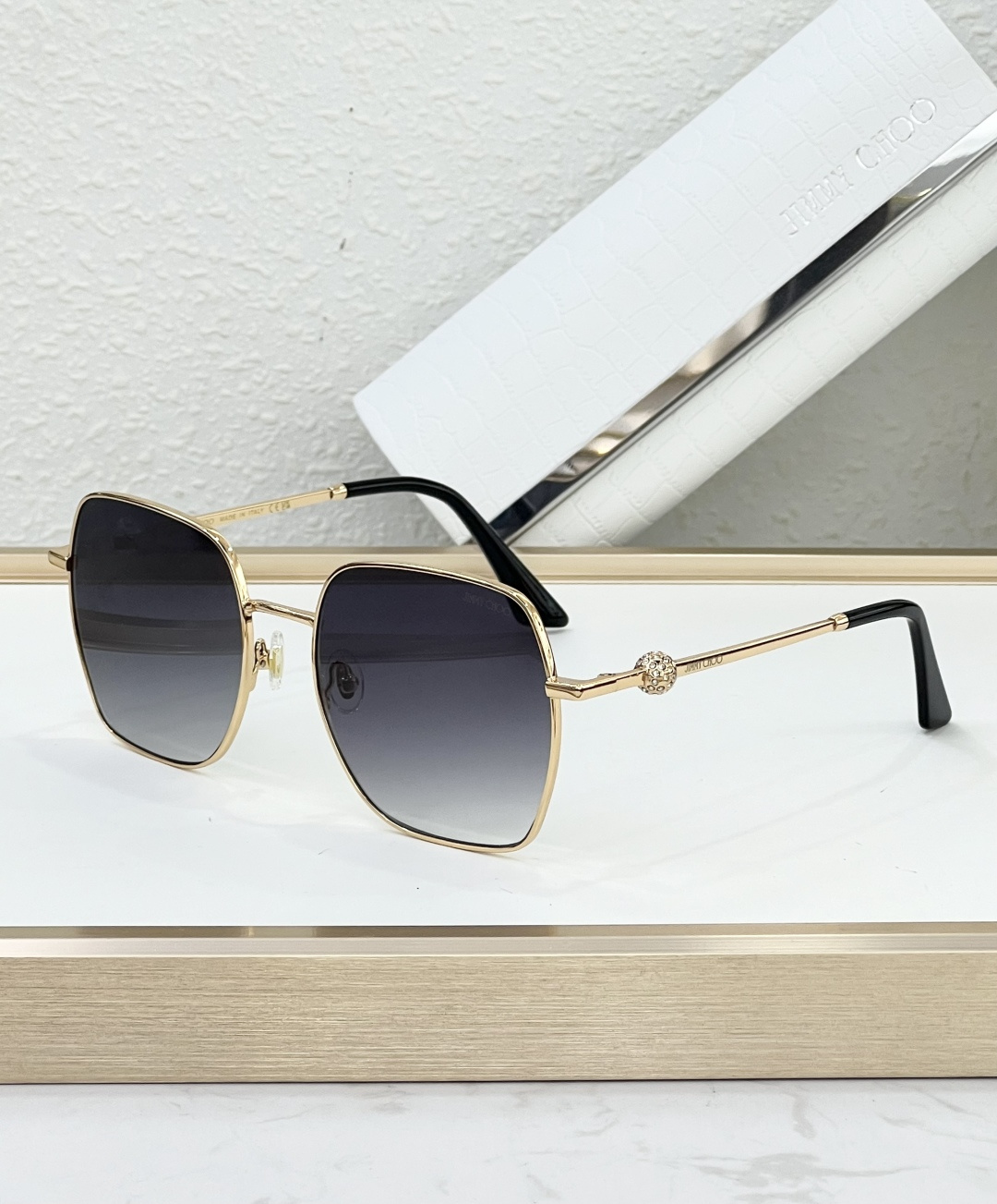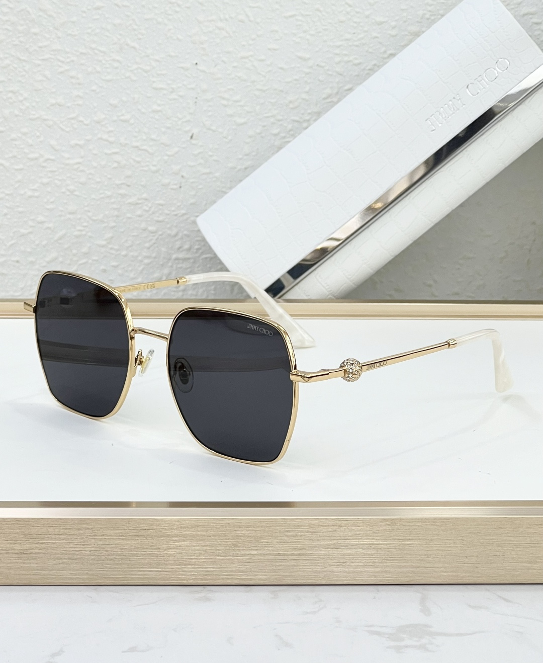這款太陽眼鏡是AAAAA 1:1 質量(非常棒). 使用了和原版一模一樣的材料. 商標部分也保持了和吉米喬/JIMMY CHOO一樣. 圖片拍攝是實物太陽眼鏡拍攝, 您所收到的實物保證和我們圖片一模一樣.