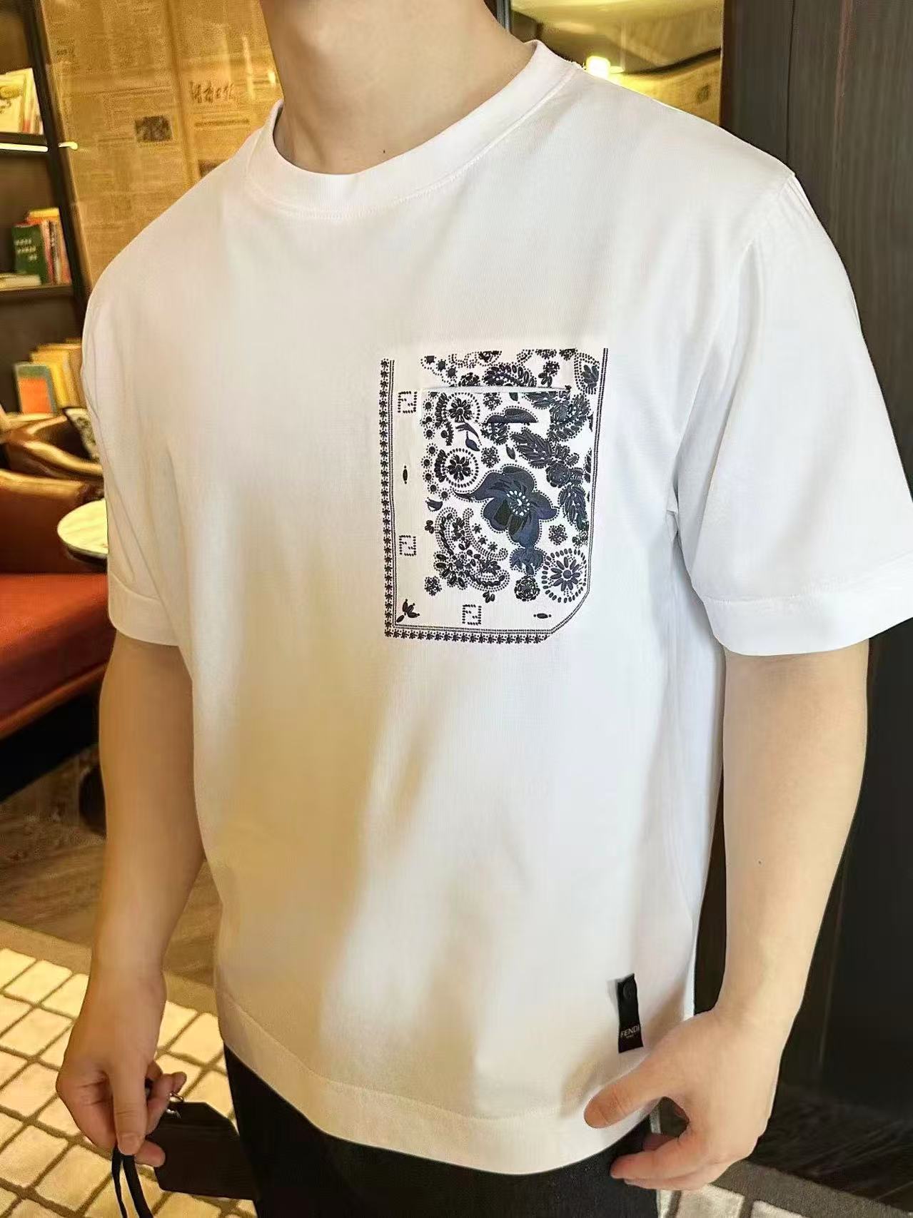 這款衣服是AAAAA 1:1 質量(非常棒). 使用了和原版一模一樣的材料. 商標部分也保持了和芬迪/Fendi一樣. 圖片拍攝是實物衣服拍攝, 您所收到的實物保證和我們圖片一模一樣.