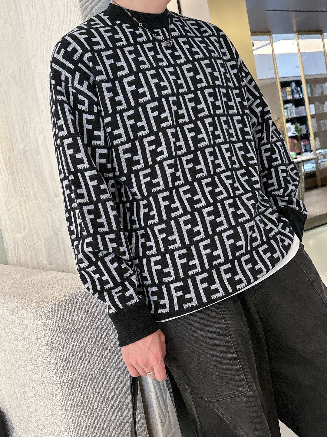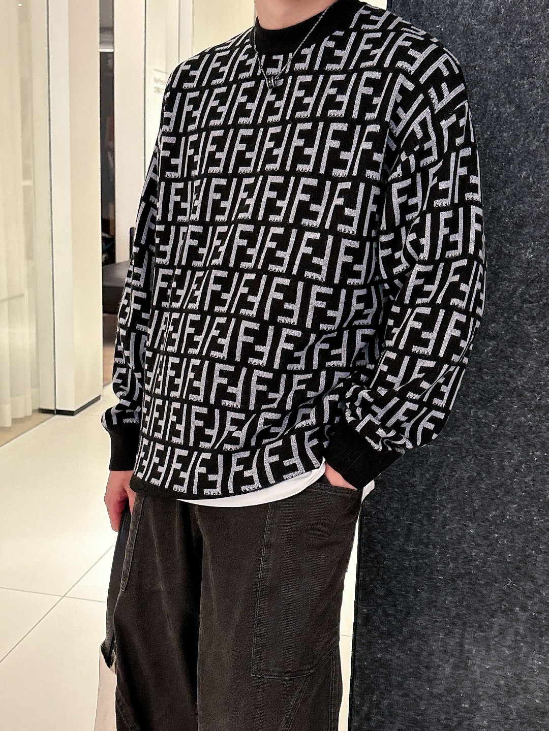 這款衣服是AAAAA 1:1 質量(非常棒). 使用了和原版一模一樣的材料. 商標部分也保持了和芬迪/Fendi一樣. 圖片拍攝是實物衣服拍攝, 您所收到的實物保證和我們圖片一模一樣.