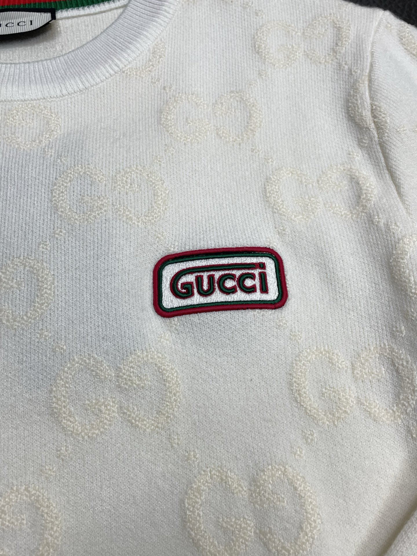 這款衣服是AAAAA 1:1 質量(非常棒). 使用了和原版一模一樣的材料. 商標部分也保持了和古奇/Gucci一樣. 圖片拍攝是實物衣服拍攝, 您所收到的實物保證和我們圖片一模一樣.