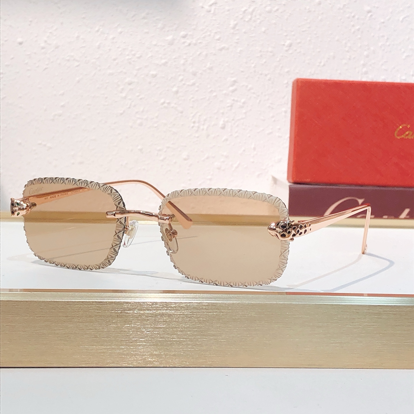 這款太陽眼鏡是AAAAA 1:1 質量(非常棒). 使用了和原版一模一樣的材料. 商標部分也保持了和卡地亞/Cartier一樣. 圖片拍攝是實物太陽眼鏡拍攝, 您所收到的實物保證和我們圖片一模一樣.