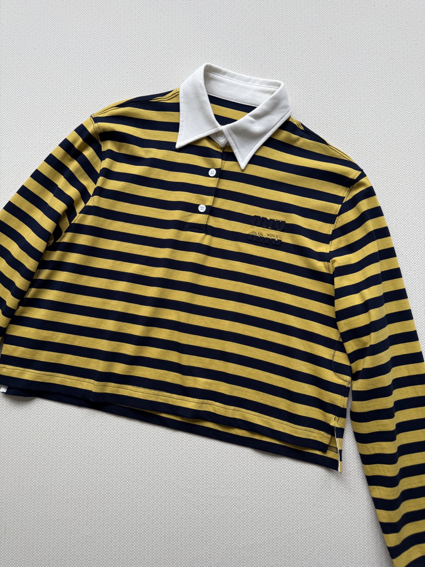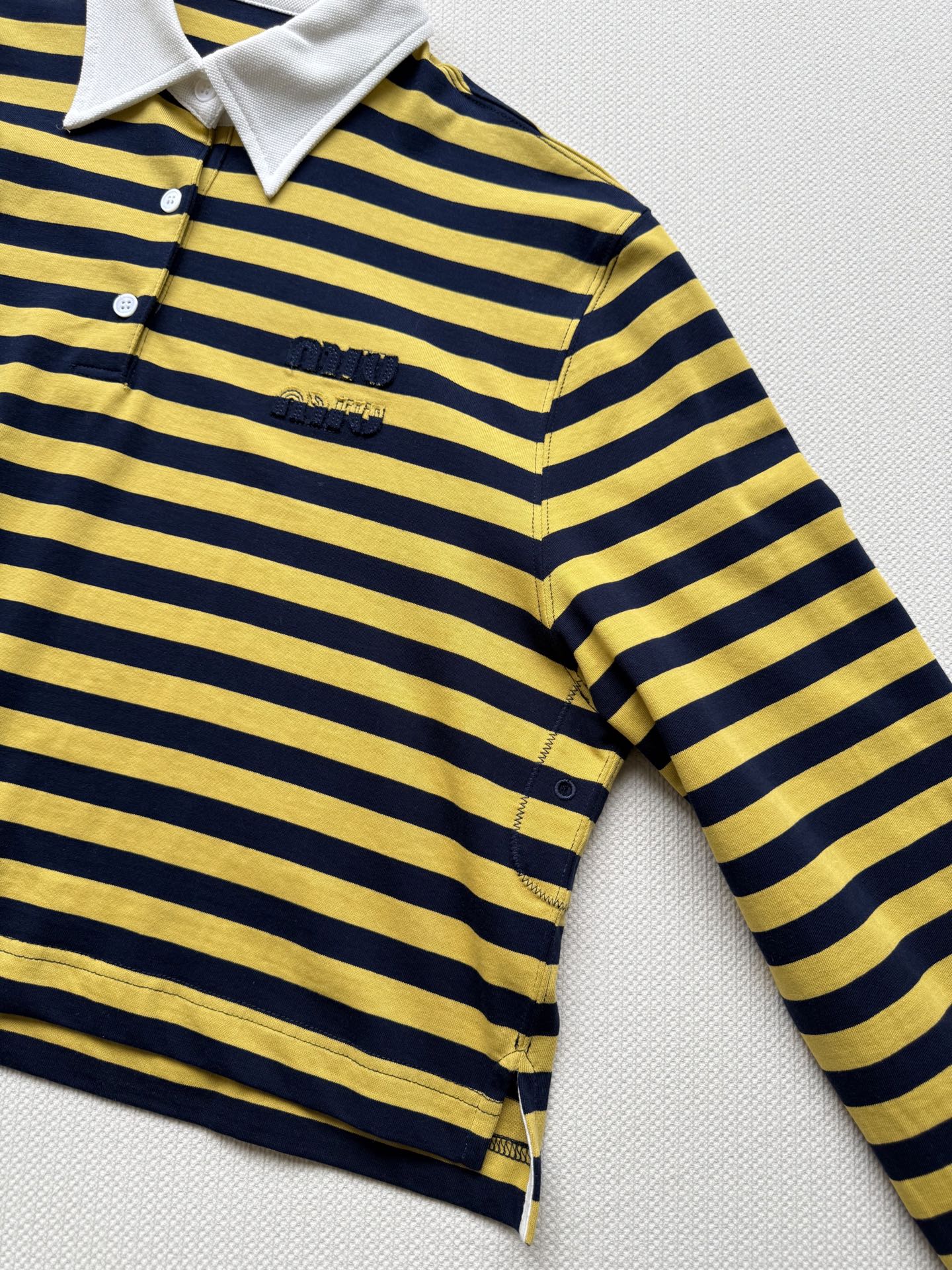 這款衣服是AAAAA 1:1 質量(非常棒). 使用了和原版一模一樣的材料. 商標部分也保持了和繆繆/Miu Miu一樣. 圖片拍攝是實物衣服拍攝, 您所收到的實物保證和我們圖片一模一樣.