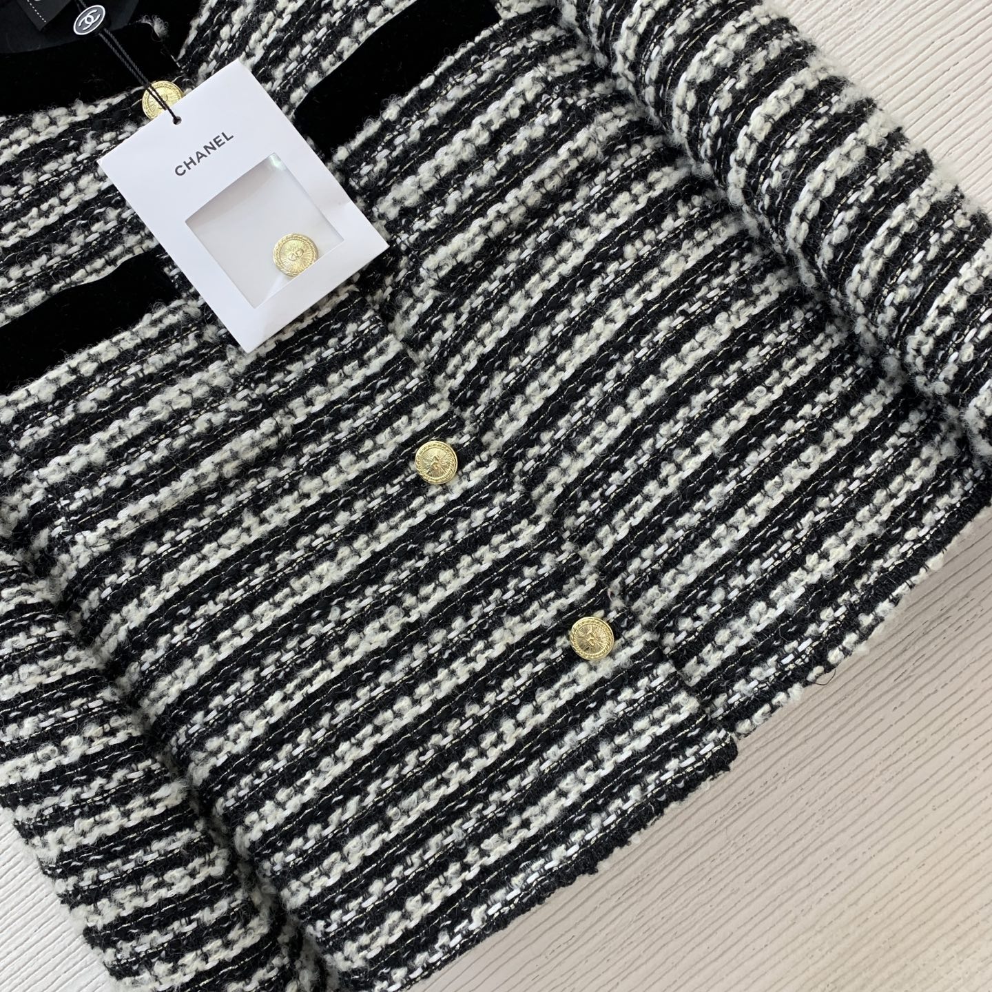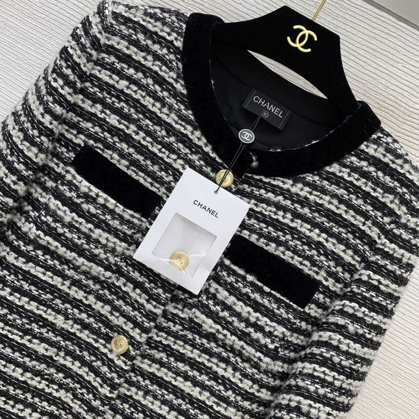 這款衣服是AAAAA 1:1 質量(非常棒). 使用了和原版一模一樣的材料. 商標部分也保持了和香奈兒/Chanel一樣. 圖片拍攝是實物衣服拍攝, 您所收到的實物保證和我們圖片一模一樣.