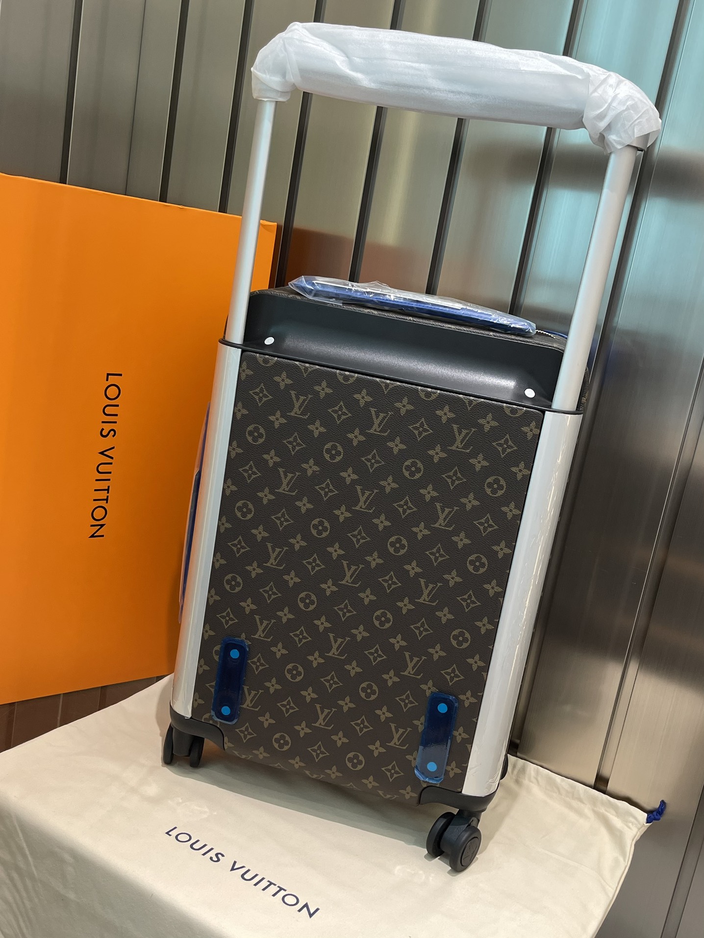 這款拉桿箱是AAAAA 1:1 質量(非常棒). 使用了和原版一模一樣的材料. 商標部分也保持了和路易威登/Louis Vuitton一樣. 圖片拍攝是實物拉桿箱拍攝, 您所收到的實物保證和我們圖片一模一樣.