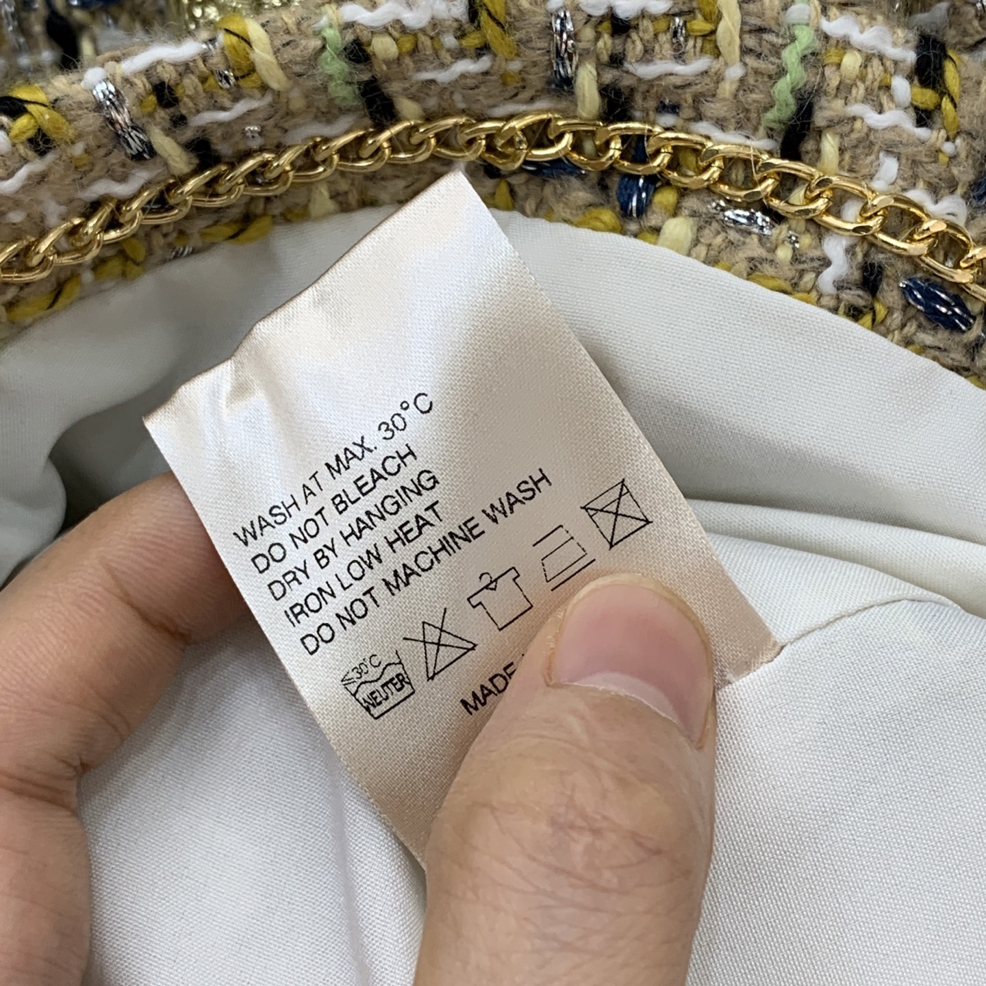 這款衣服是AAAAA 1:1 質量(非常棒). 使用了和原版一模一樣的材料. 商標部分也保持了和香奈兒/Chanel一樣. 圖片拍攝是實物衣服拍攝, 您所收到的實物保證和我們圖片一模一樣.