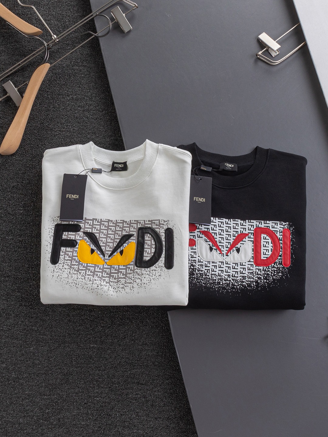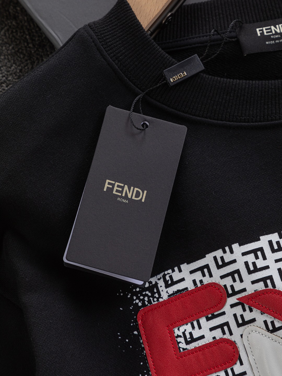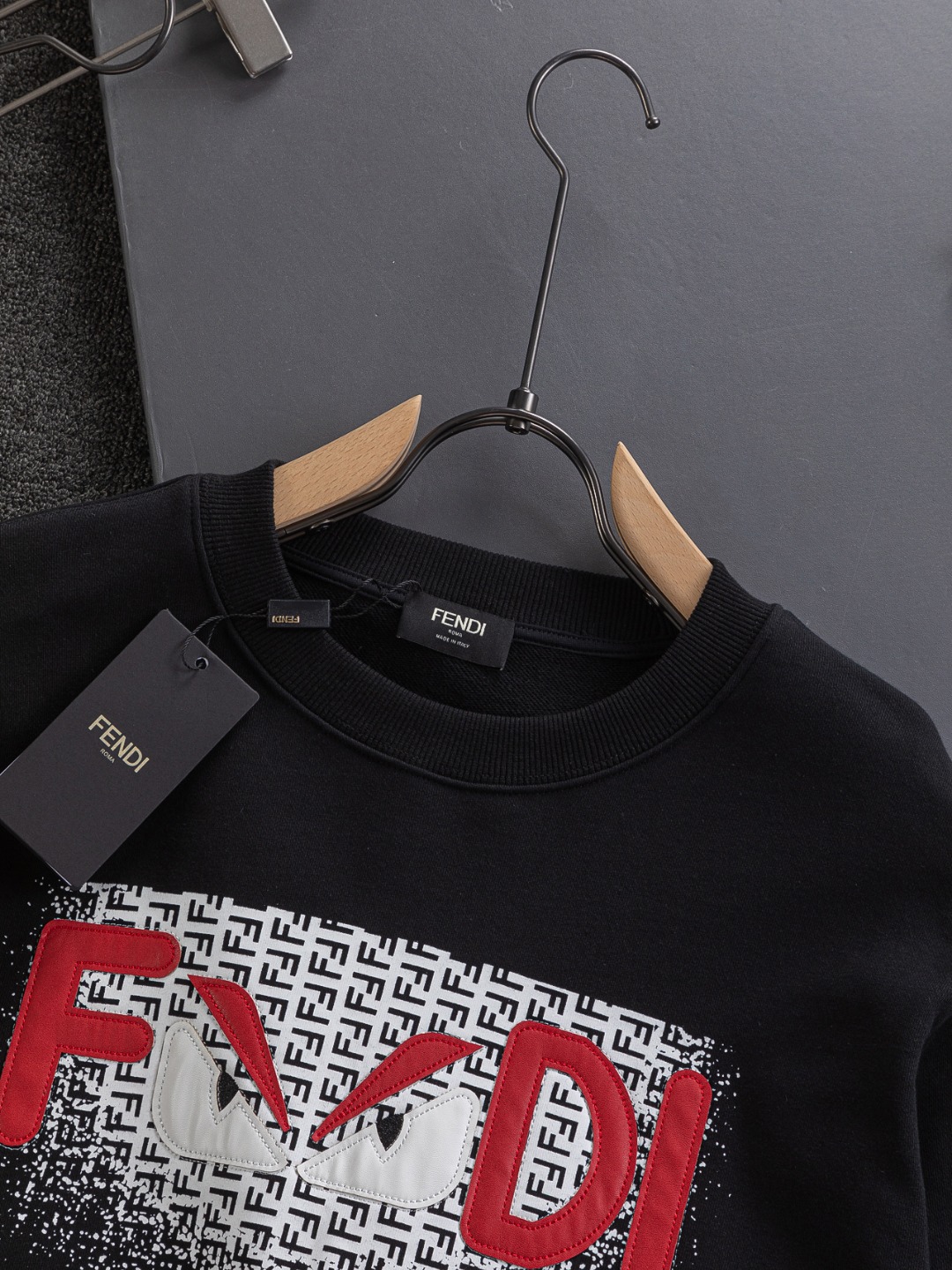 這款衣服是AAAAA 1:1 質量(非常棒). 使用了和原版一模一樣的材料. 商標部分也保持了和芬迪/Fendi一樣. 圖片拍攝是實物衣服拍攝, 您所收到的實物保證和我們圖片一模一樣.