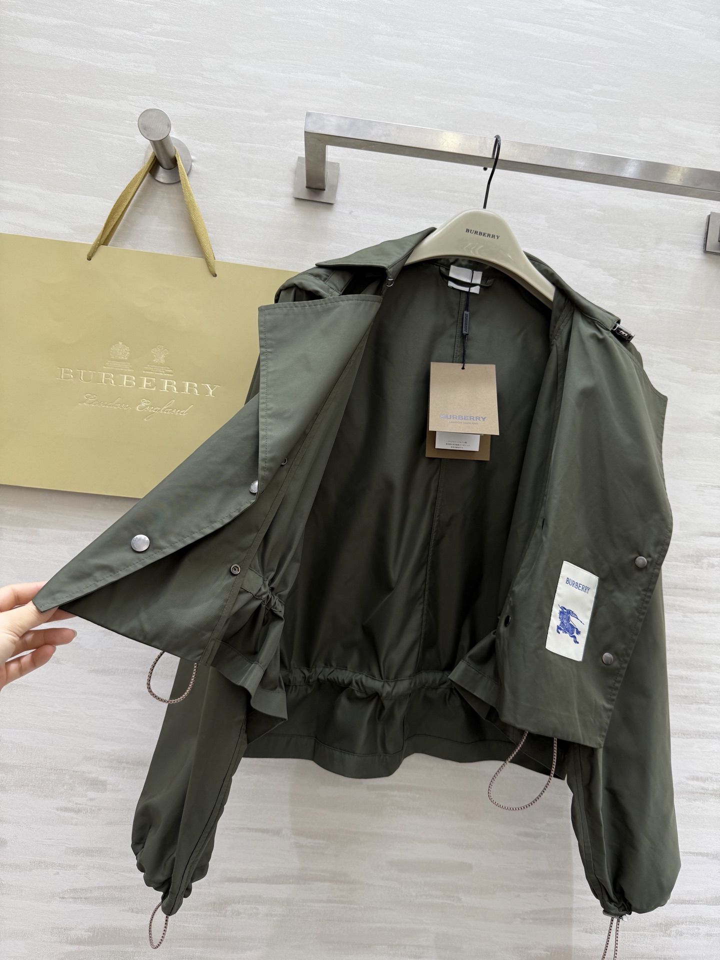這款衣服是AAAAA 1:1 質量(非常棒). 使用了和原版一模一樣的材料. 商標部分也保持了和巴寶莉/Burberry一樣. 圖片拍攝是實物衣服拍攝, 您所收到的實物保證和我們圖片一模一樣.