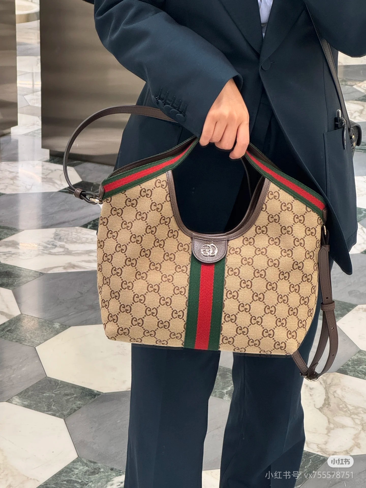 這款包包是AAAAA 1:1 質量(非常棒). 使用了和原版一模一樣的材料. 商標部分也保持了和古奇/Gucci一樣. 圖片拍攝是實物包包拍攝, 您所收到的實物保證和我們圖片一模一樣.