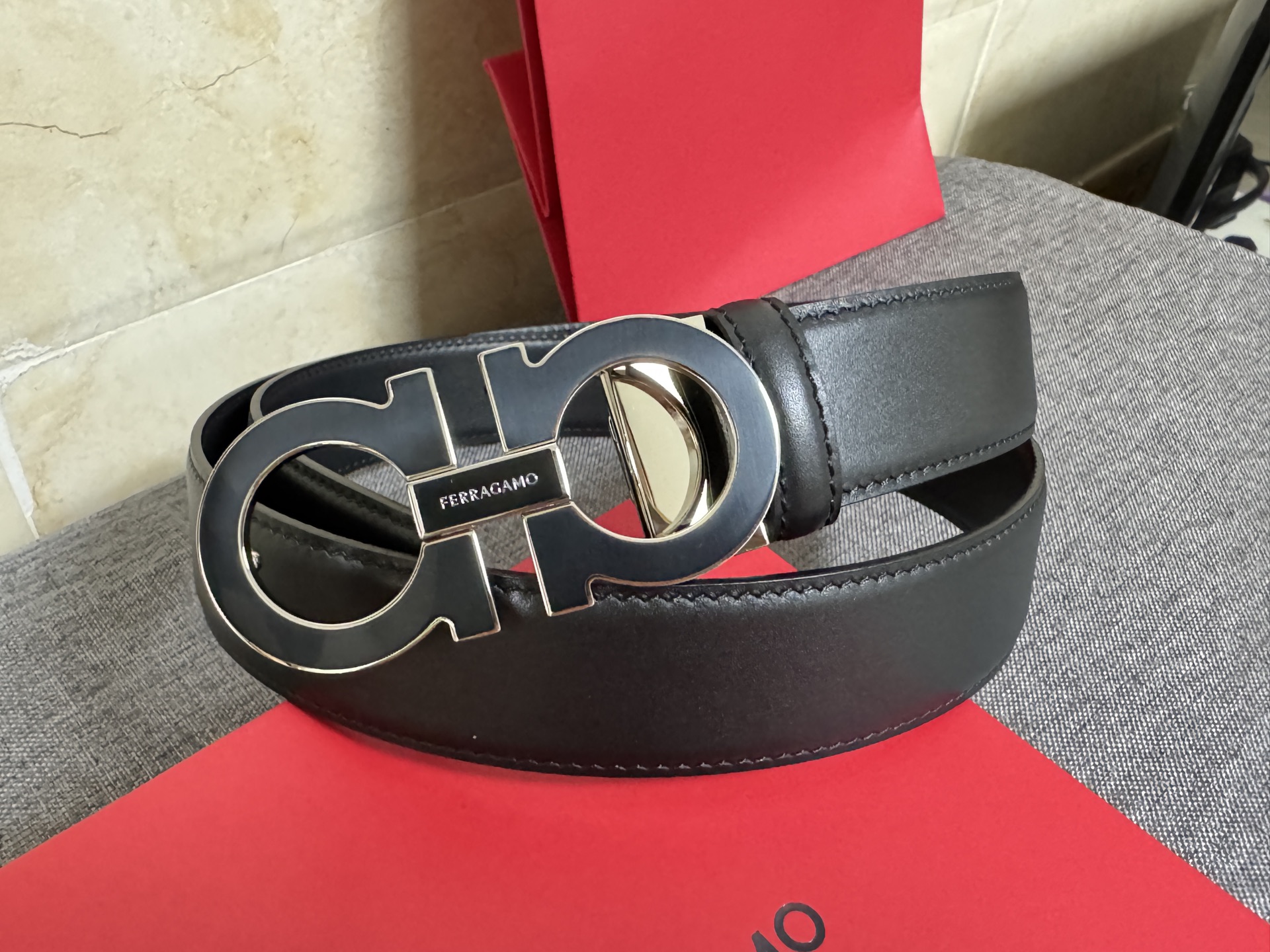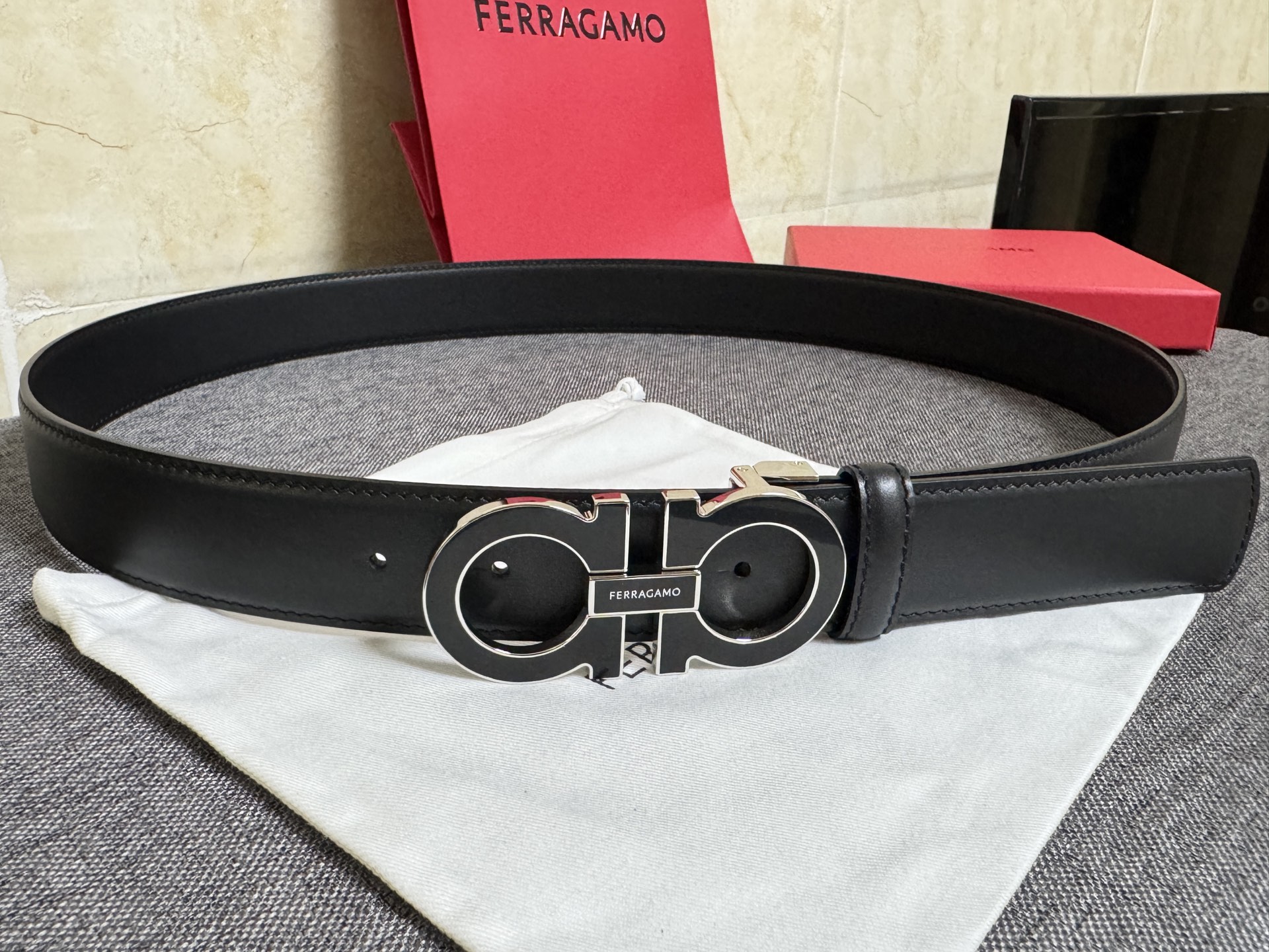 這款皮帶是AAAAA 1:1 質量(非常棒). 使用了和原版一模一樣的材料. 商標部分也保持了和菲拉格慕/Salvatore Ferragamo一樣. 圖片拍攝是實物皮帶拍攝, 您所收到的實物保證和我們圖片一模一樣.