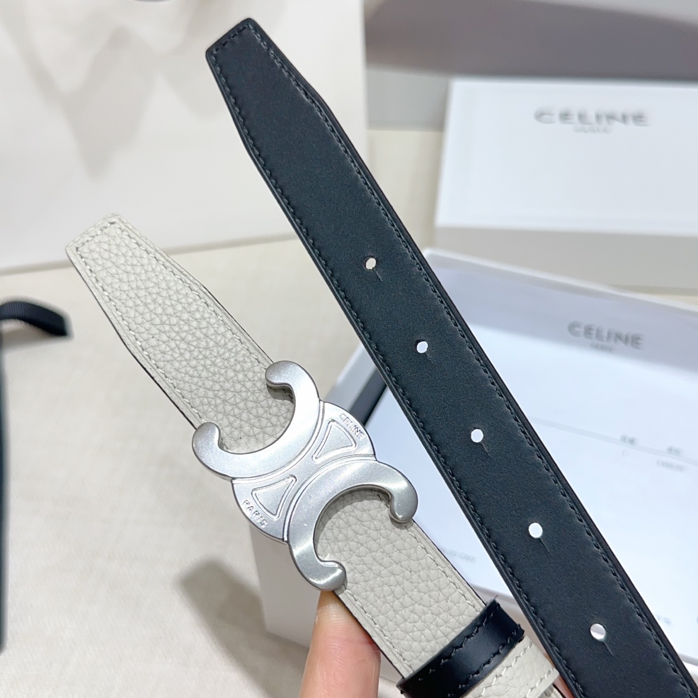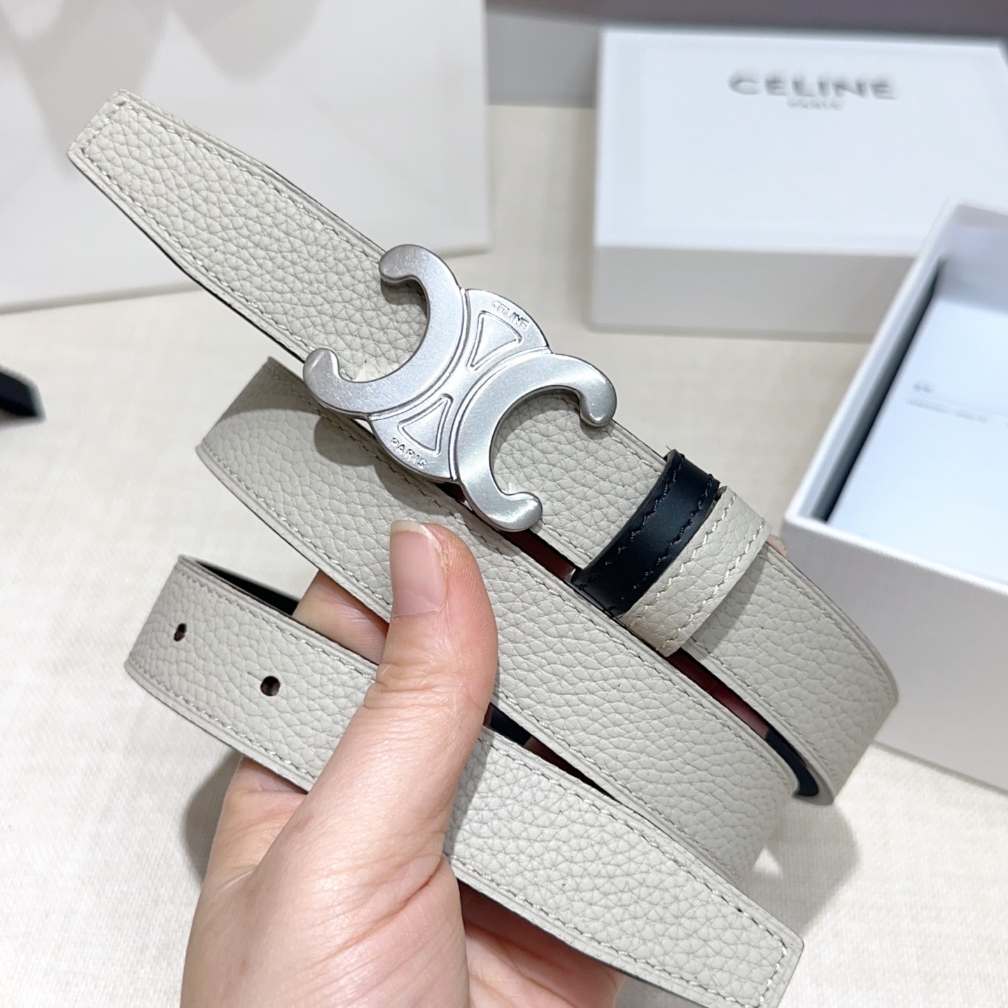 這款皮帶是AAAAA 1:1 質量(非常棒). 使用了和原版一模一樣的材料. 商標部分也保持了和思琳/赛琳/Celine一樣. 圖片拍攝是實物皮帶拍攝, 您所收到的實物保證和我們圖片一模一樣.