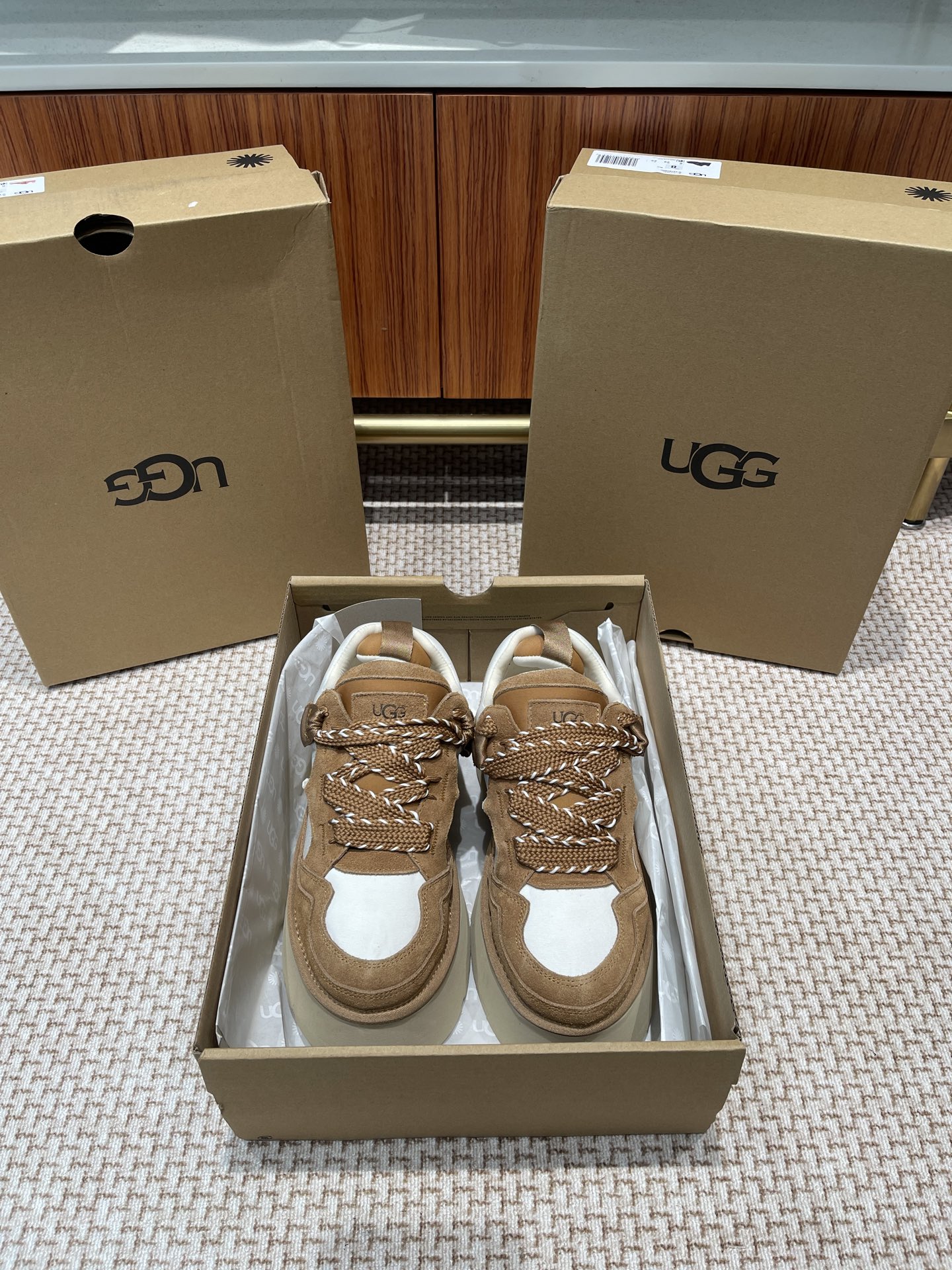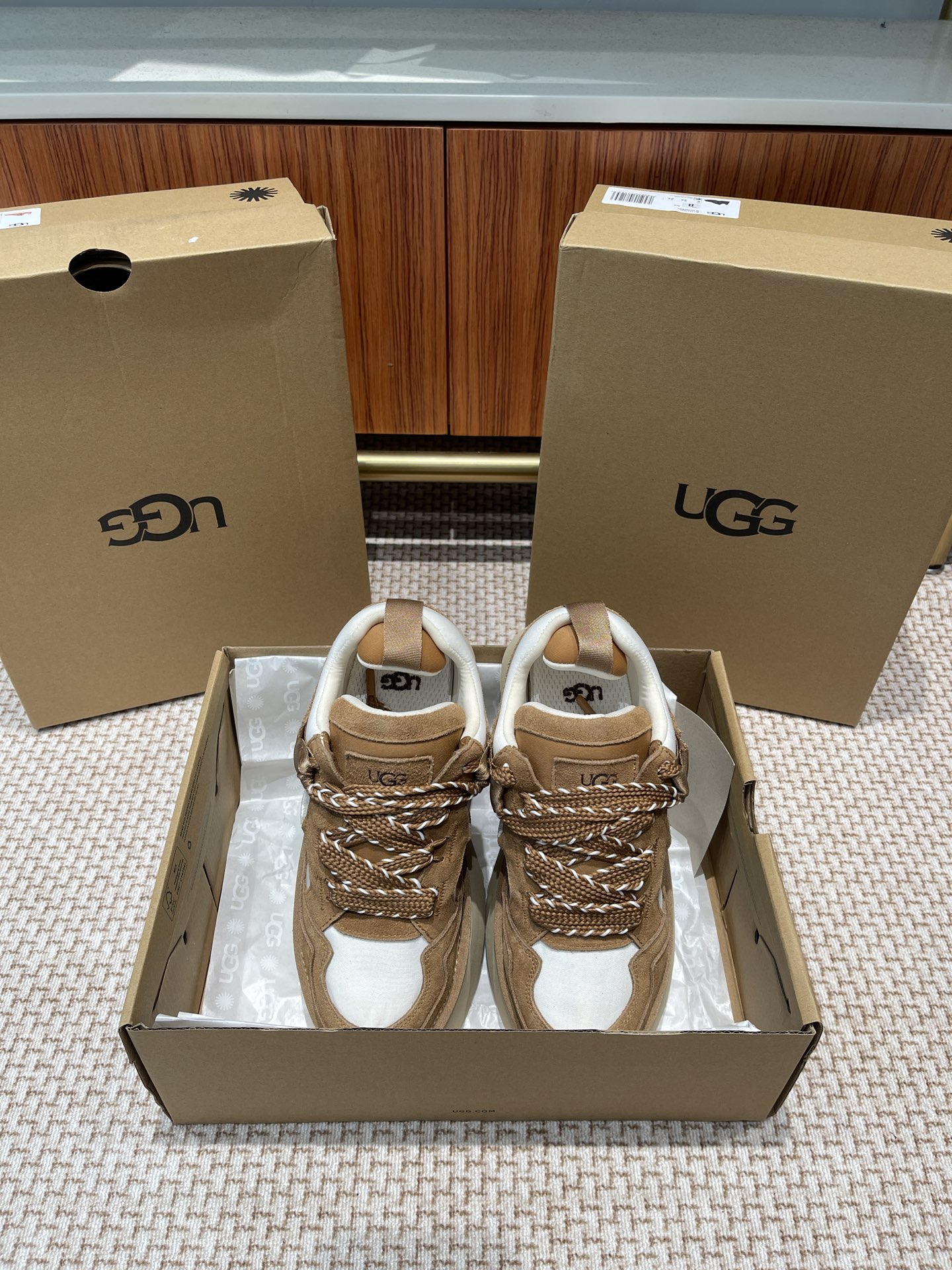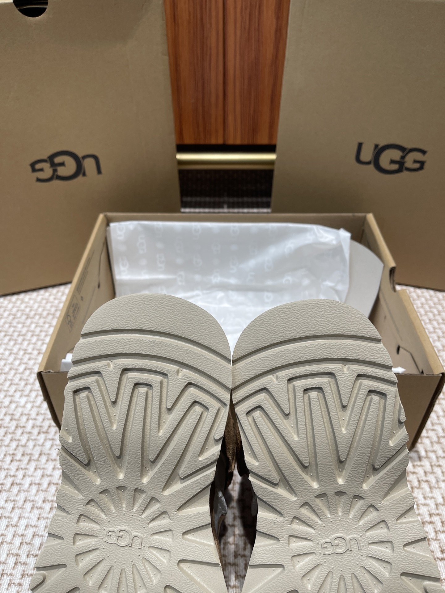 這款鞋子是AAAAA 1:1 質量(非常棒). 使用了和原版一模一樣的材料. 商標部分也保持了和UGG一樣. 圖片拍攝是實物鞋子拍攝, 您所收到的實物保證和我們圖片一模一樣.