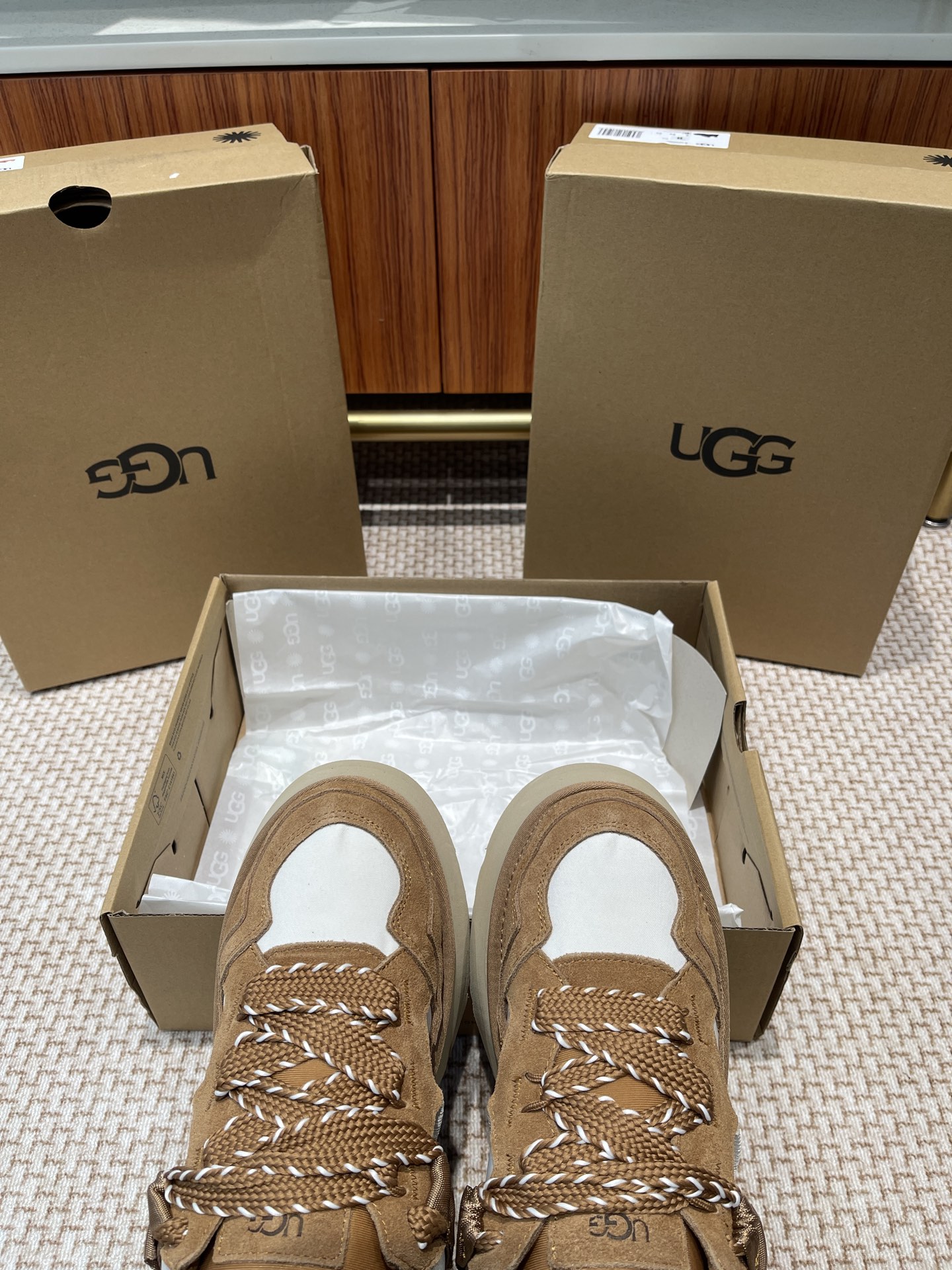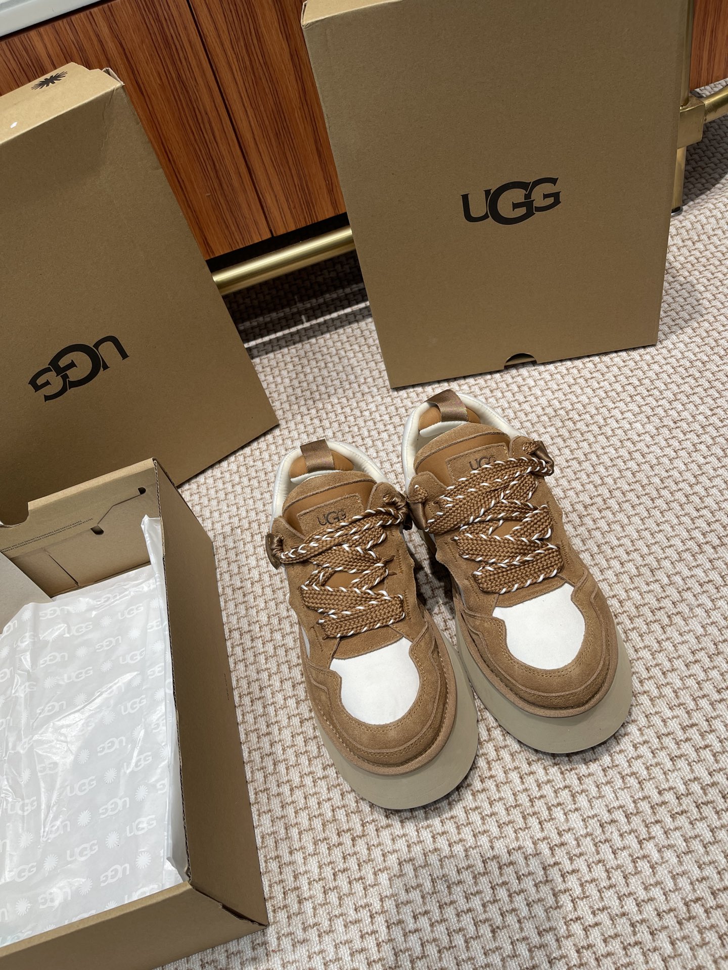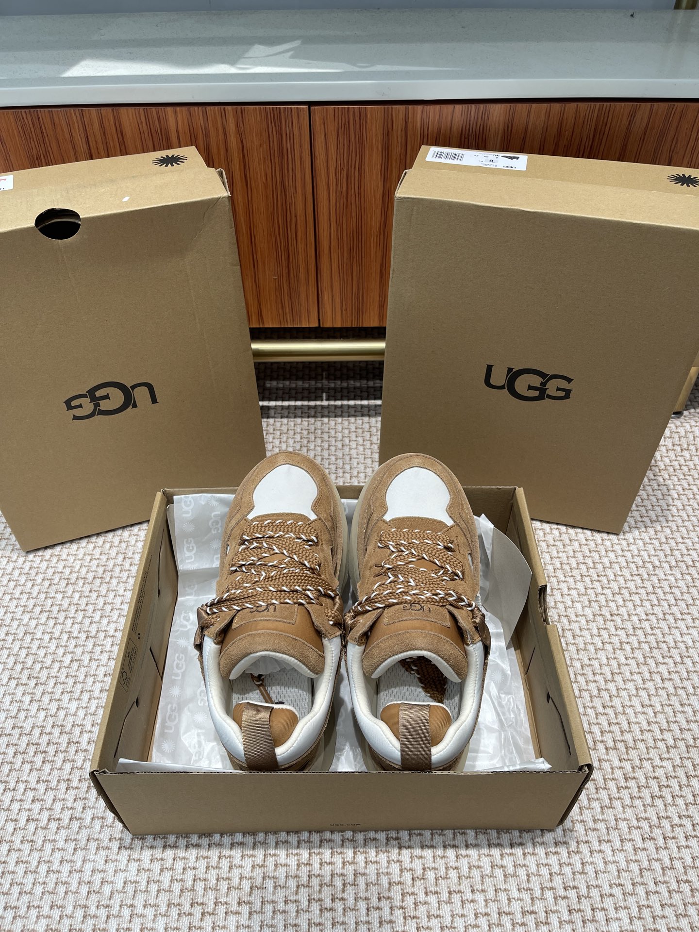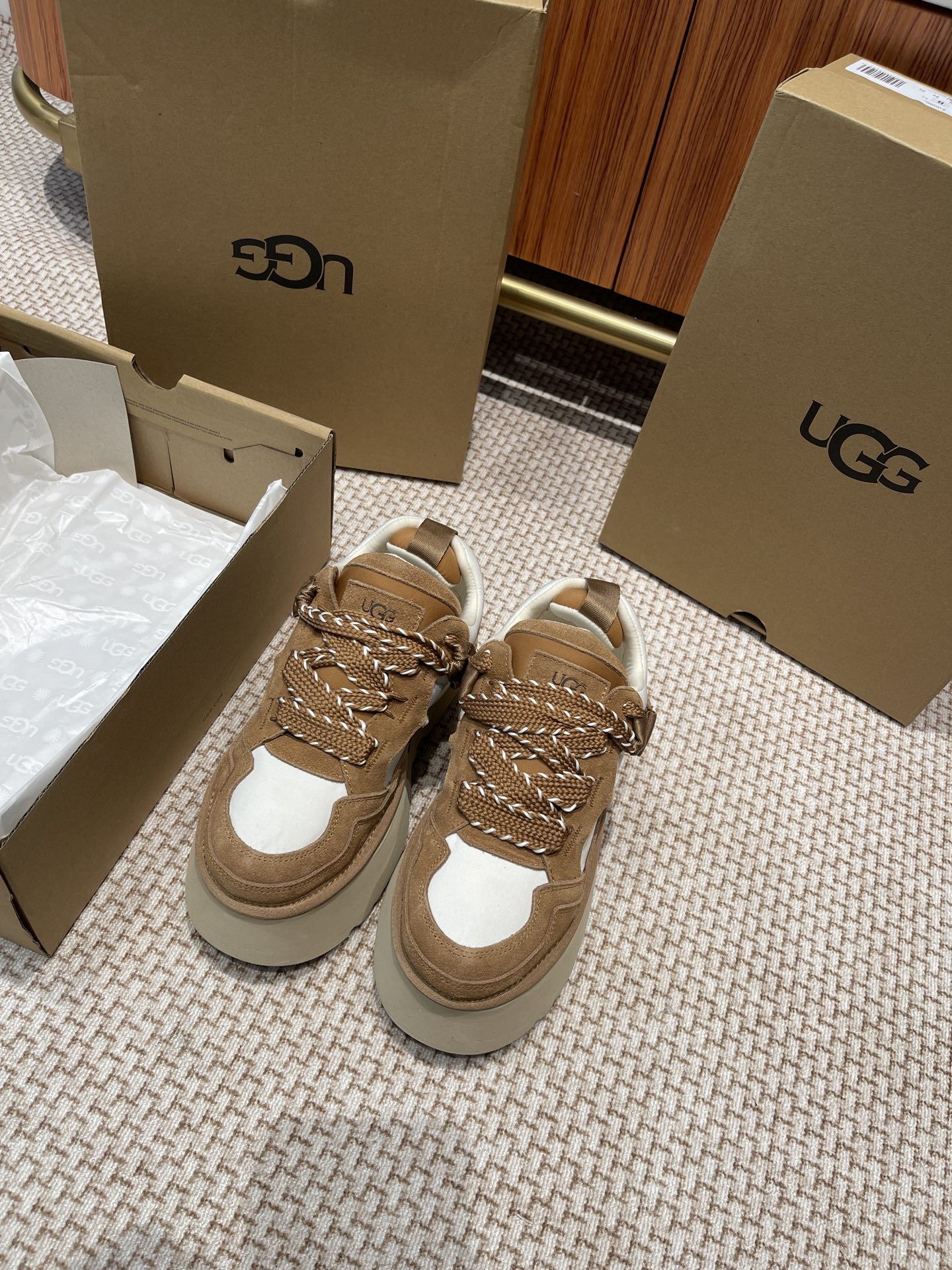 這款鞋子是AAAAA 1:1 質量(非常棒). 使用了和原版一模一樣的材料. 商標部分也保持了和UGG一樣. 圖片拍攝是實物鞋子拍攝, 您所收到的實物保證和我們圖片一模一樣.