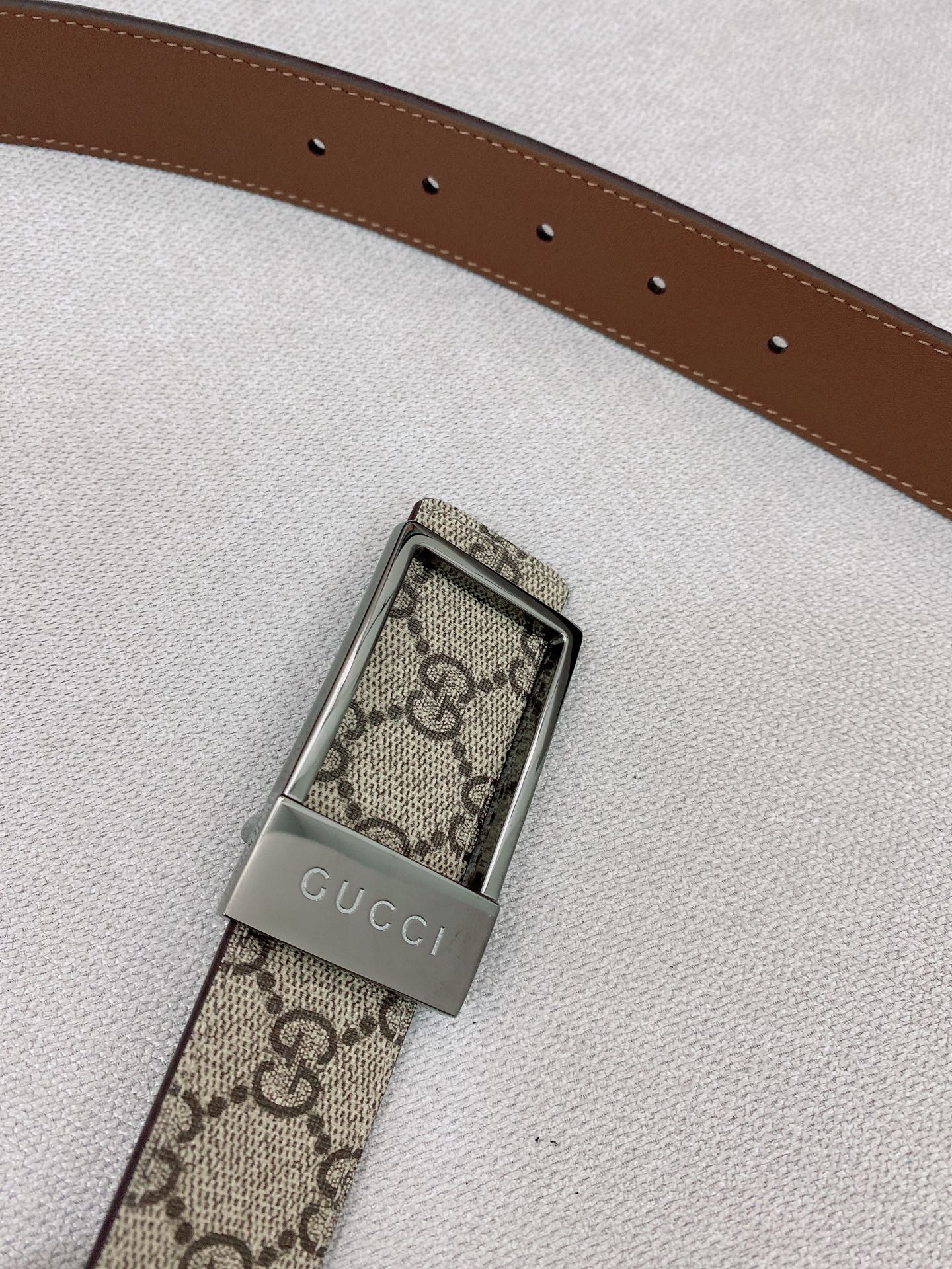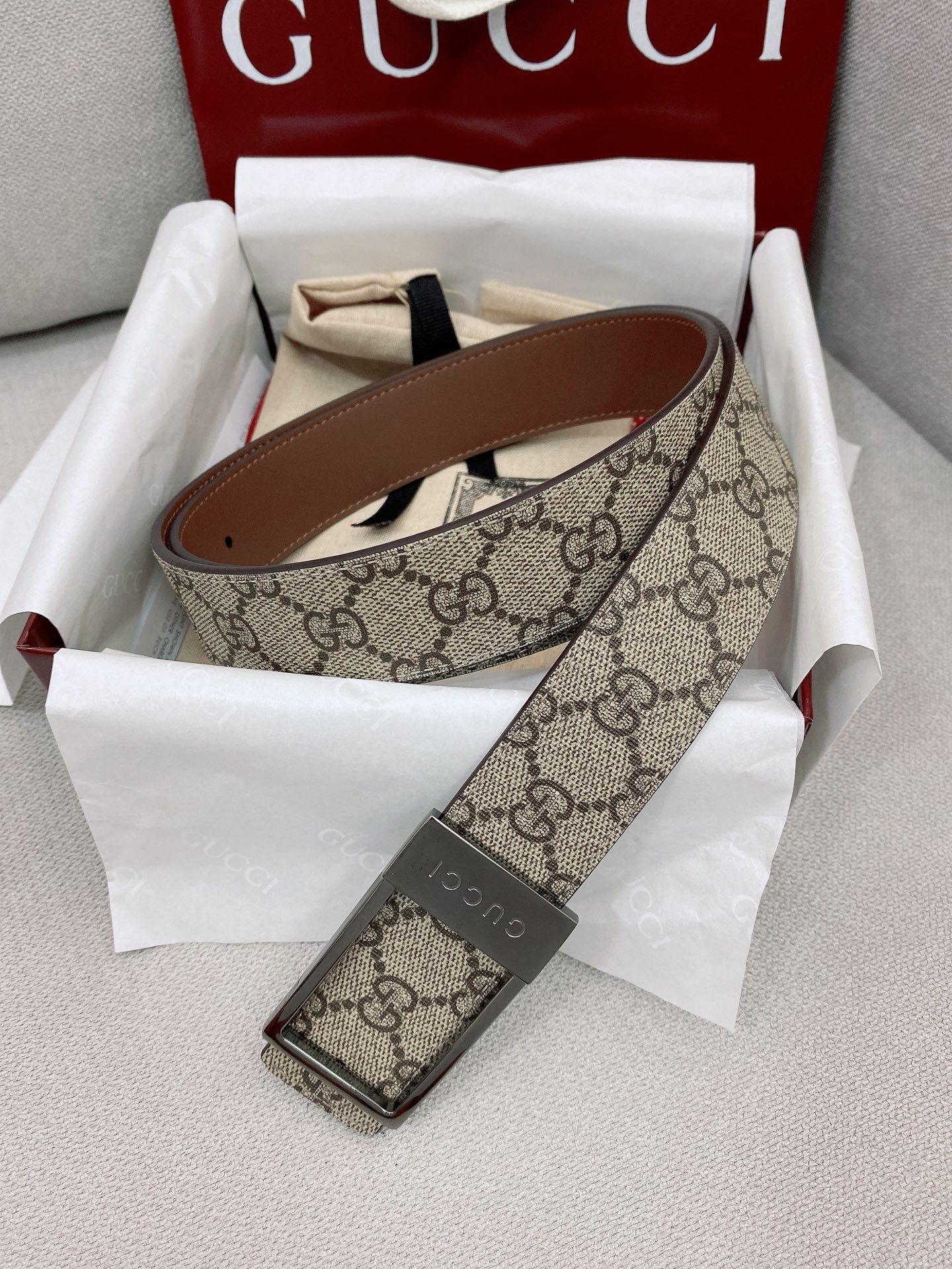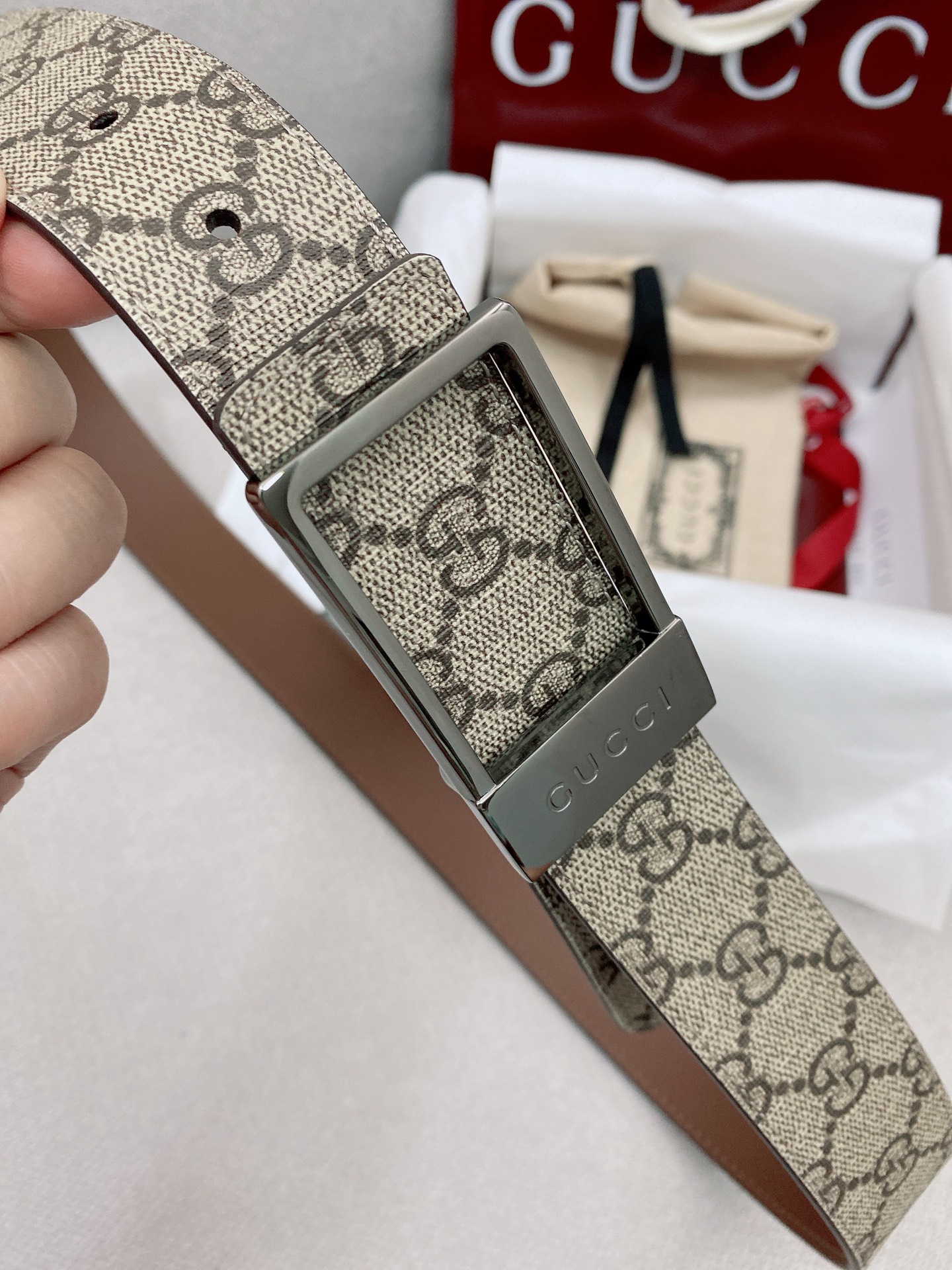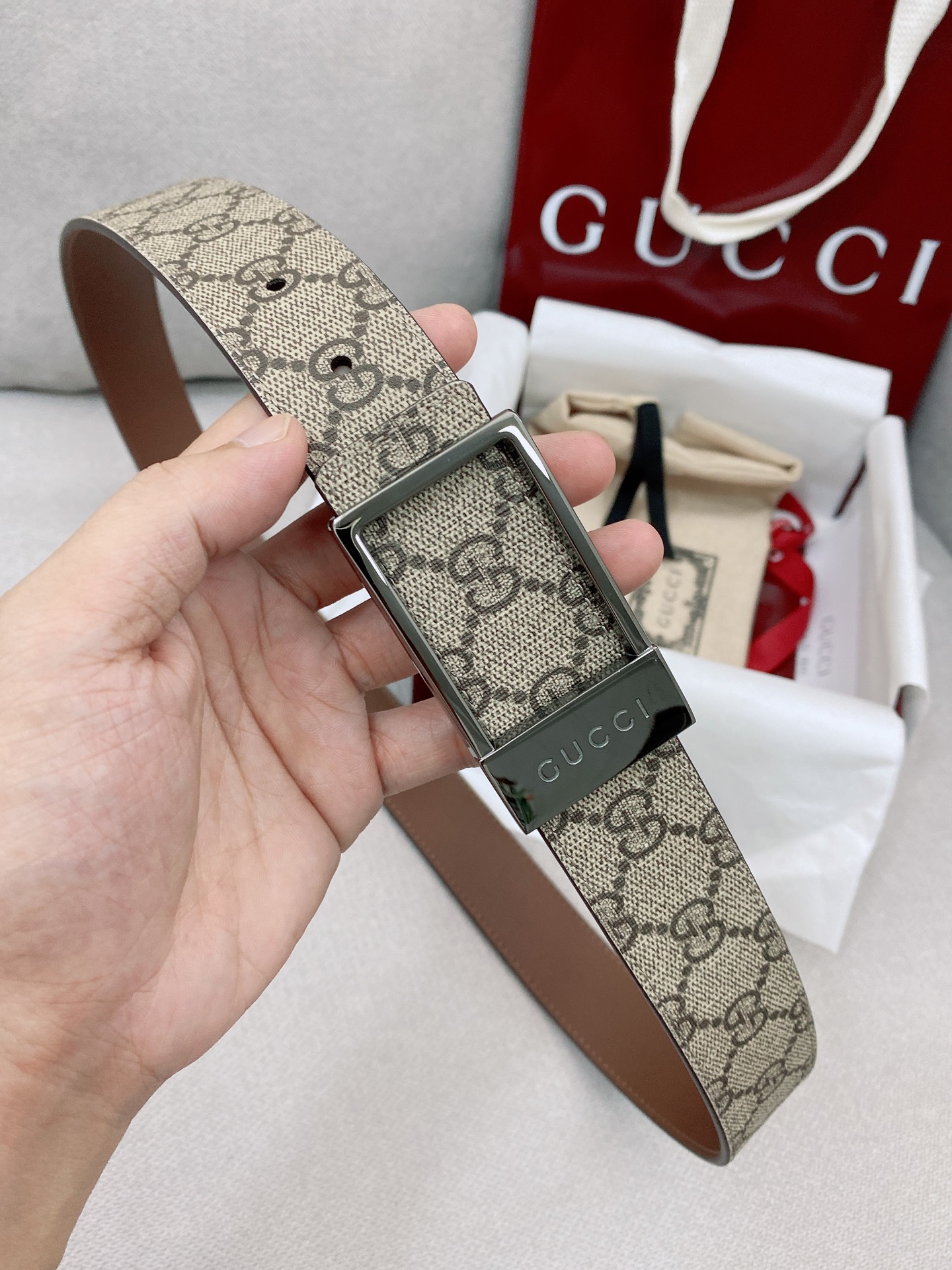 這款皮帶是AAAAA 1:1 質量(非常棒). 使用了和原版一模一樣的材料. 商標部分也保持了和古奇/Gucci一樣. 圖片拍攝是實物皮帶拍攝, 您所收到的實物保證和我們圖片一模一樣.