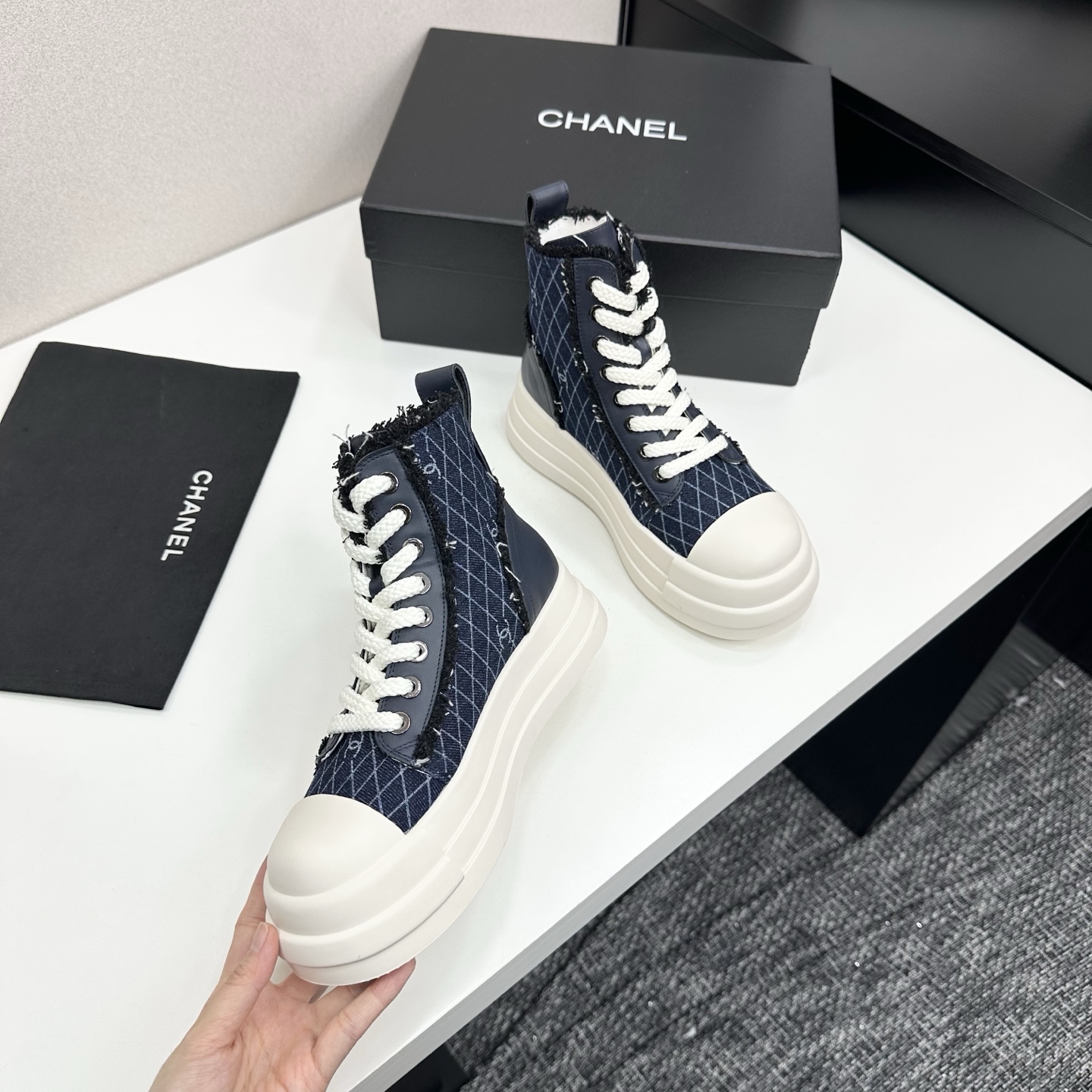 這款鞋子是AAAAA 1:1 質量(非常棒). 使用了和原版一模一樣的材料. 商標部分也保持了和香奈兒/Chanel一樣. 圖片拍攝是實物鞋子拍攝, 您所收到的實物保證和我們圖片一模一樣.
