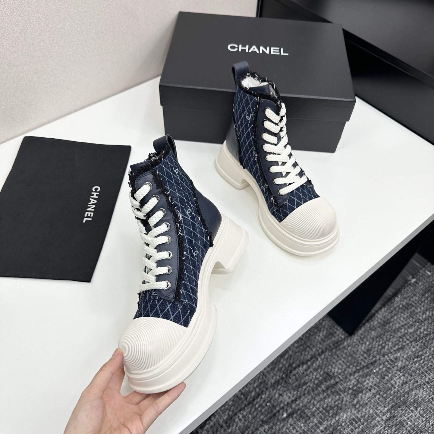 這款鞋子是AAAAA 1:1 質量(非常棒). 使用了和原版一模一樣的材料. 商標部分也保持了和香奈兒/Chanel一樣. 圖片拍攝是實物鞋子拍攝, 您所收到的實物保證和我們圖片一模一樣.