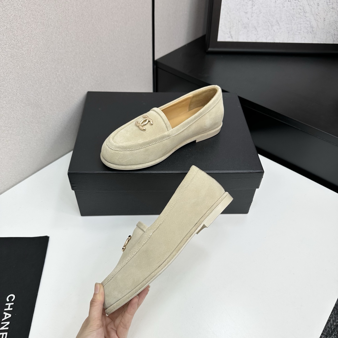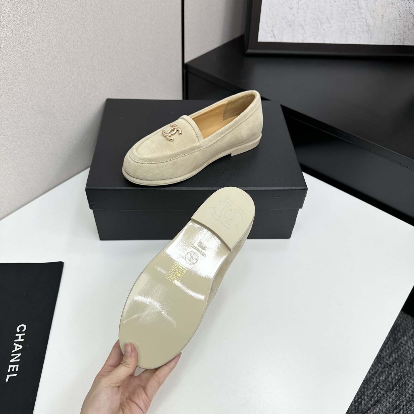 這款鞋子是AAAAA 1:1 質量(非常棒). 使用了和原版一模一樣的材料. 商標部分也保持了和香奈兒/Chanel一樣. 圖片拍攝是實物鞋子拍攝, 您所收到的實物保證和我們圖片一模一樣.