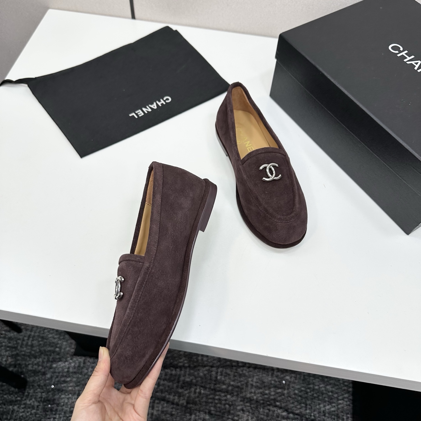 這款鞋子是AAAAA 1:1 質量(非常棒). 使用了和原版一模一樣的材料. 商標部分也保持了和香奈兒/Chanel一樣. 圖片拍攝是實物鞋子拍攝, 您所收到的實物保證和我們圖片一模一樣.