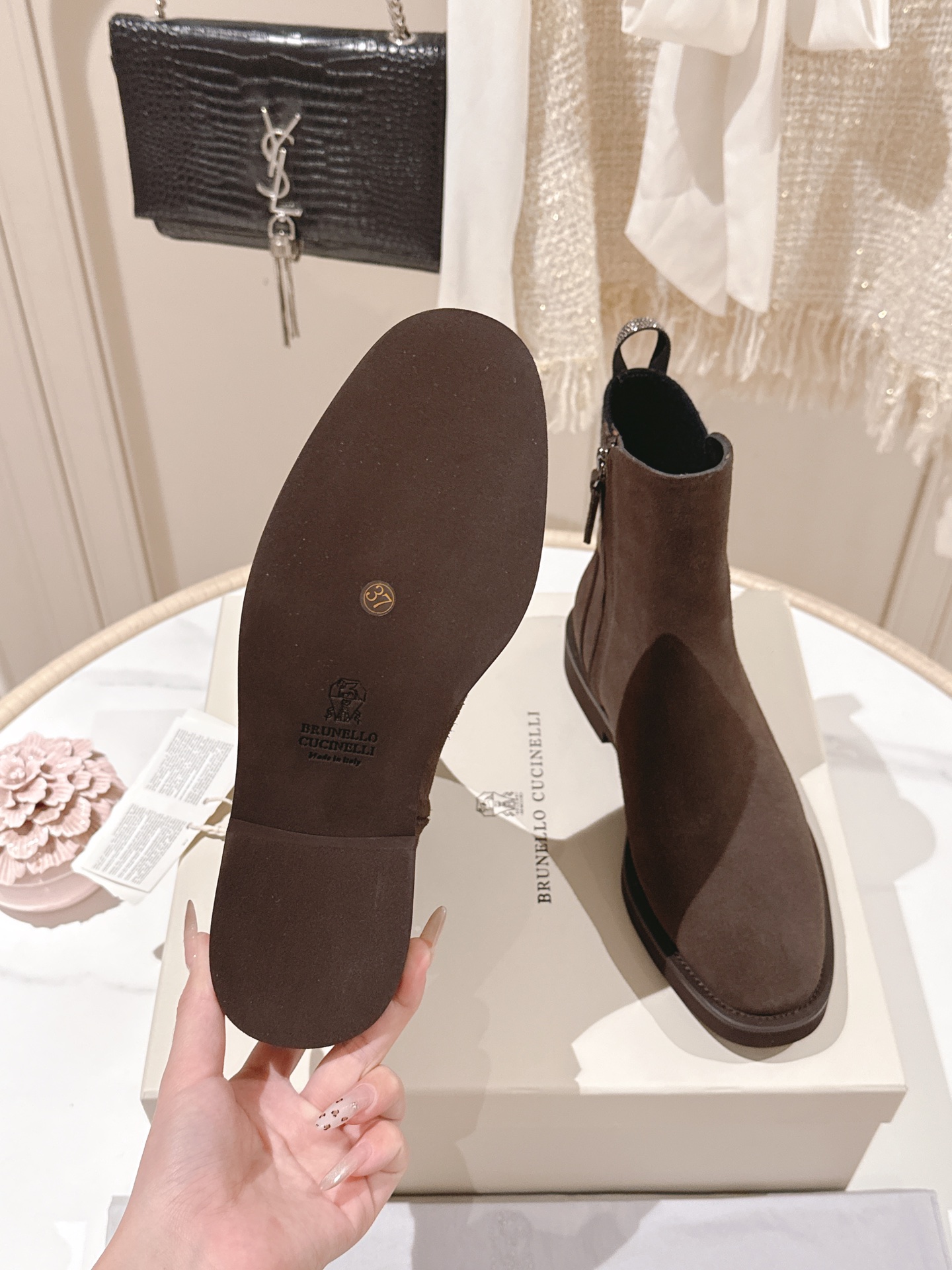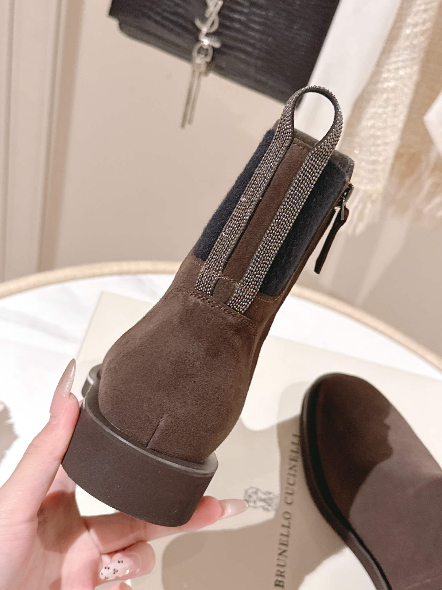 這款鞋子是AAAAA 1:1 質量(非常棒). 使用了和原版一模一樣的材料. 商標部分也保持了和Brunello Cucinelli一樣. 圖片拍攝是實物鞋子拍攝, 您所收到的實物保證和我們圖片一模一樣.