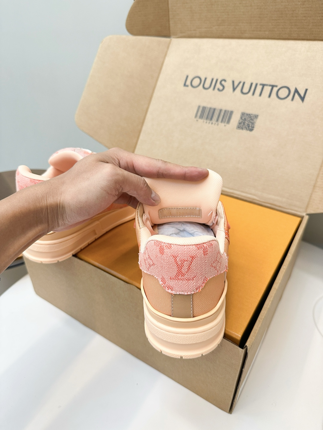 這款鞋子是AAAAA 1:1 質量(非常棒). 使用了和原版一模一樣的材料. 商標部分也保持了和路易威登/Louis Vuitton一樣. 圖片拍攝是實物鞋子拍攝, 您所收到的實物保證和我們圖片一模一樣.