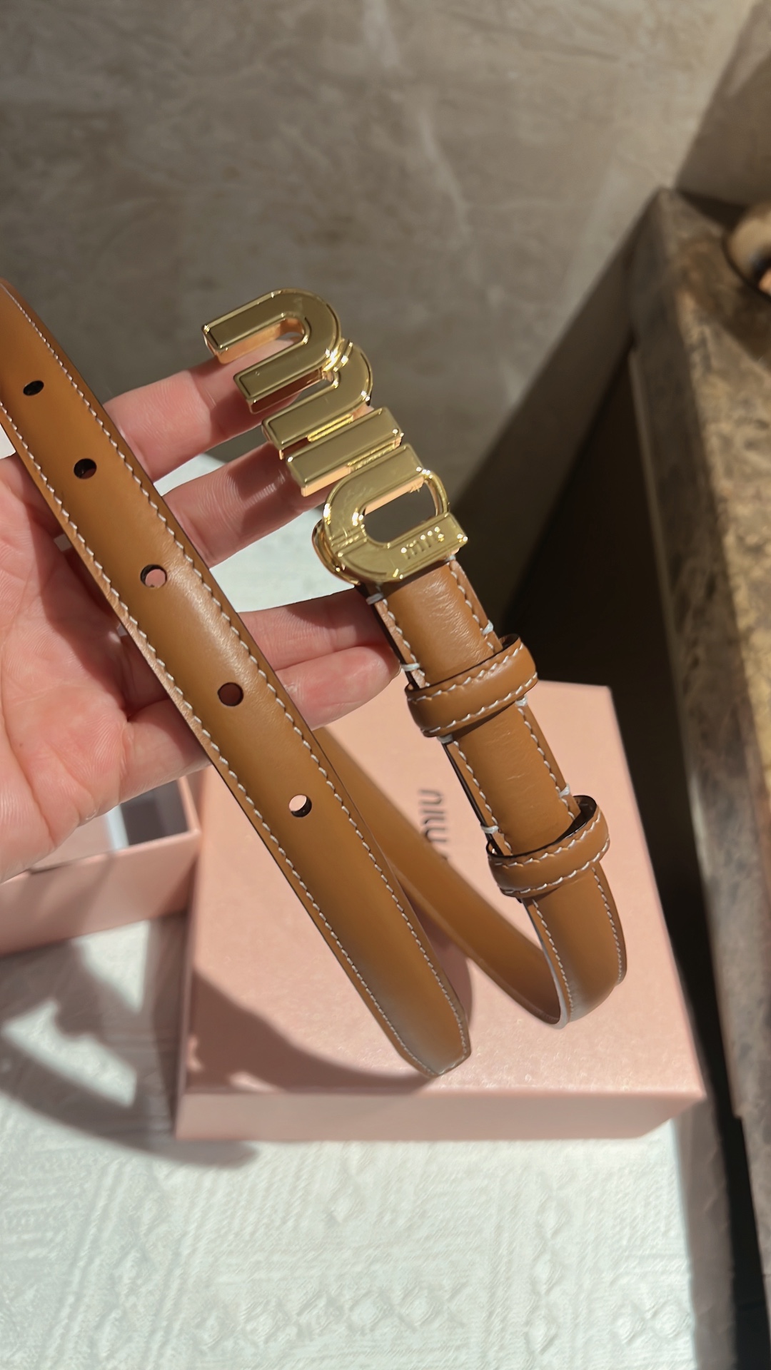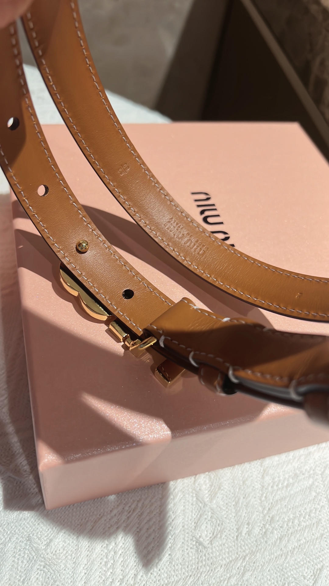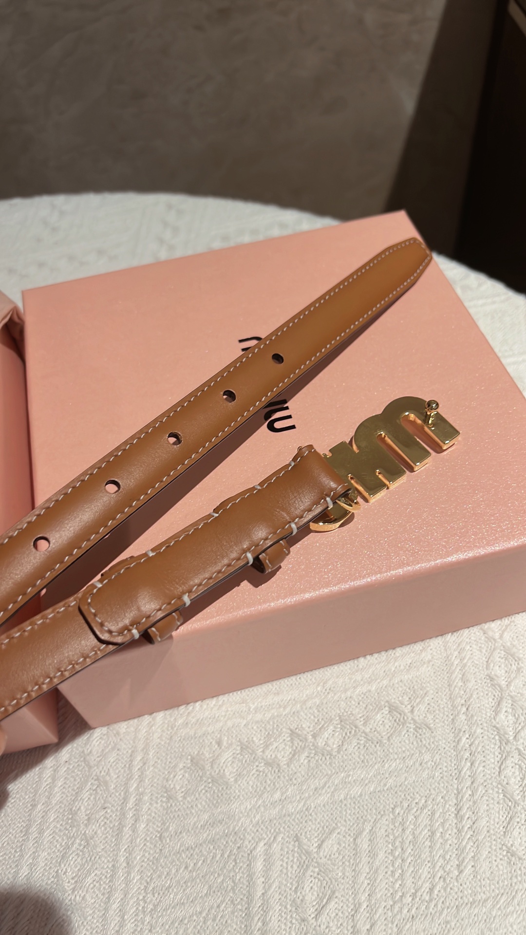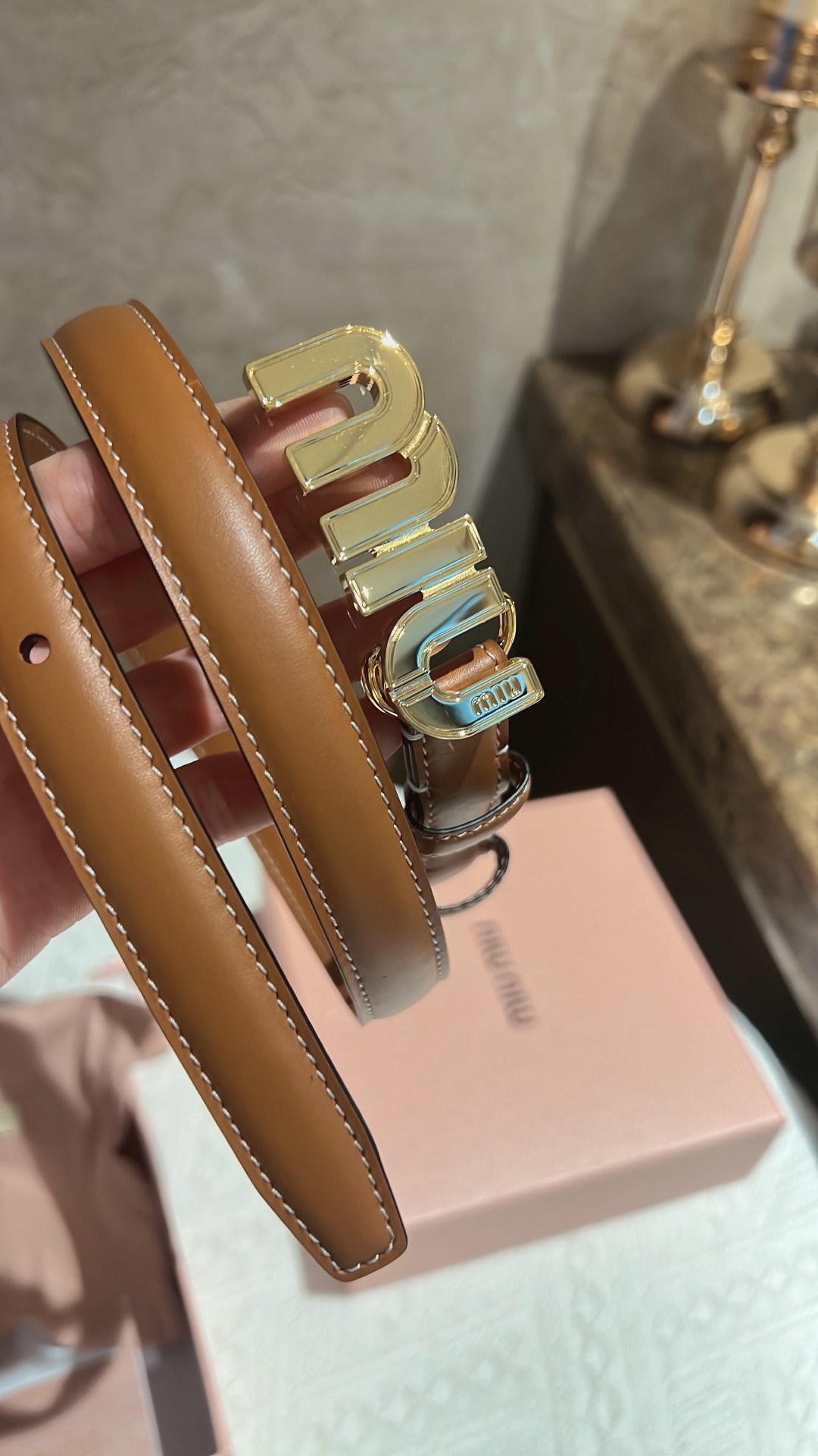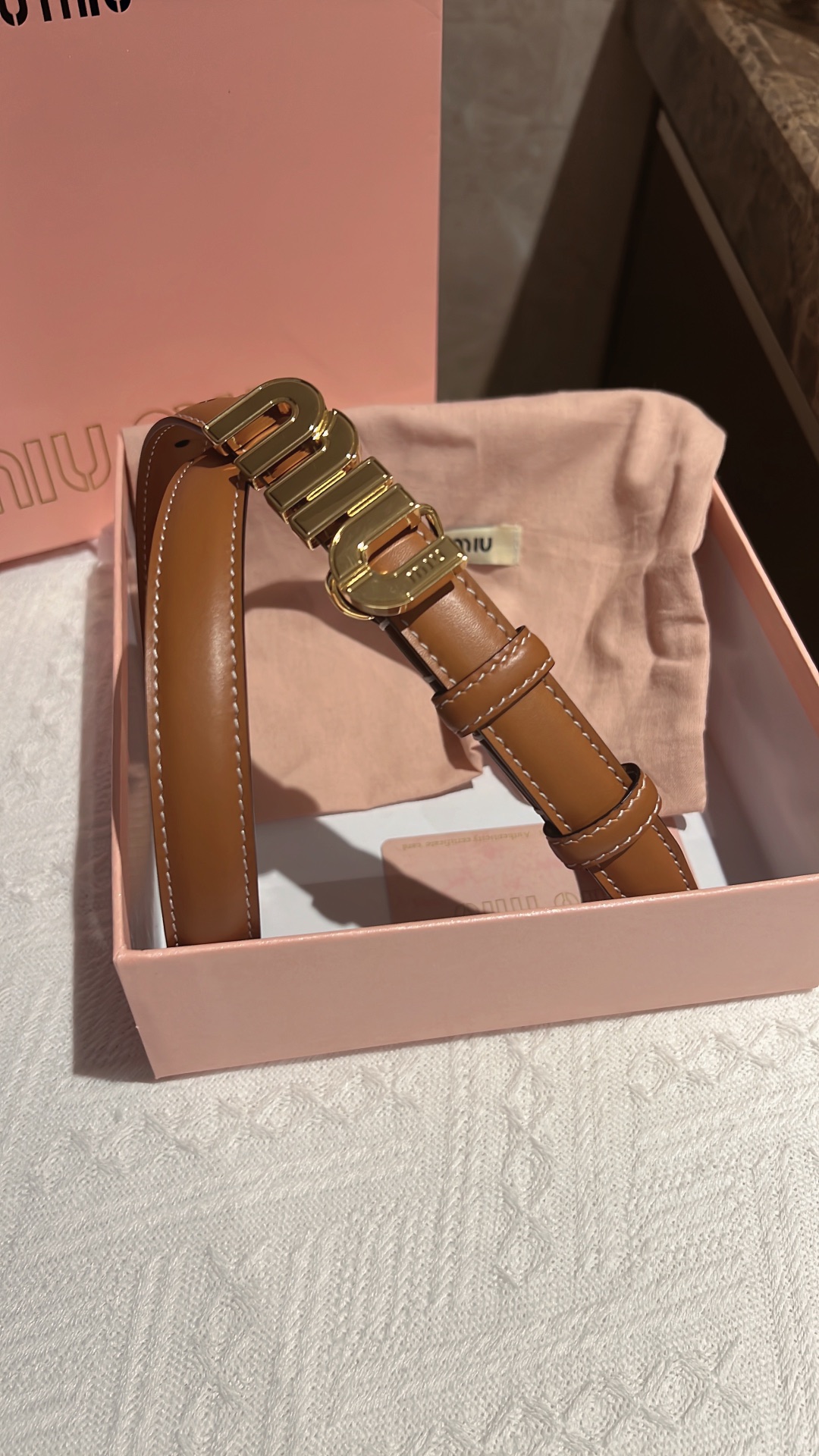 這款皮帶是AAAAA 1:1 質量(非常棒). 使用了和原版一模一樣的材料. 商標部分也保持了和繆繆/Miu Miu一樣. 圖片拍攝是實物皮帶拍攝, 您所收到的實物保證和我們圖片一模一樣.