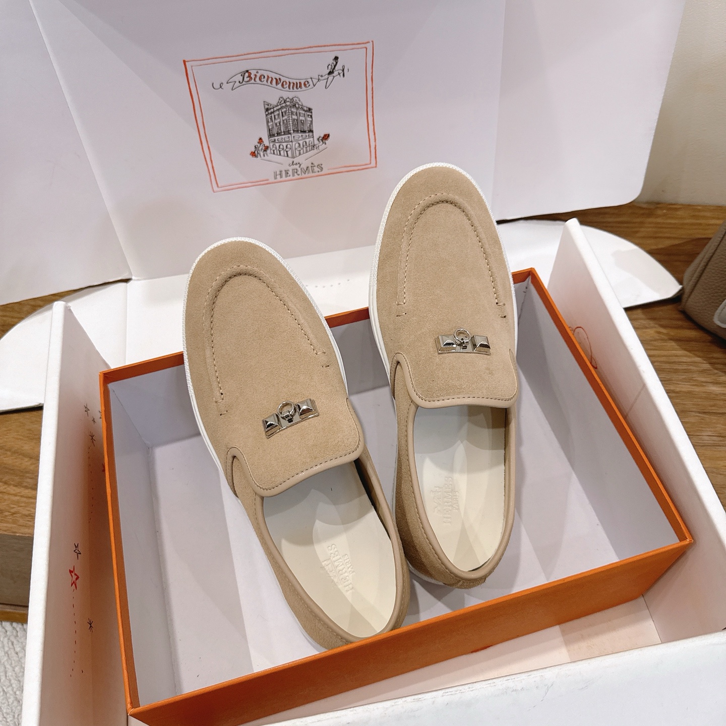 這款鞋子是AAAAA 1:1 質量(非常棒). 使用了和原版一模一樣的材料. 商標部分也保持了和愛馬仕/Hermes一樣. 圖片拍攝是實物鞋子拍攝, 您所收到的實物保證和我們圖片一模一樣.