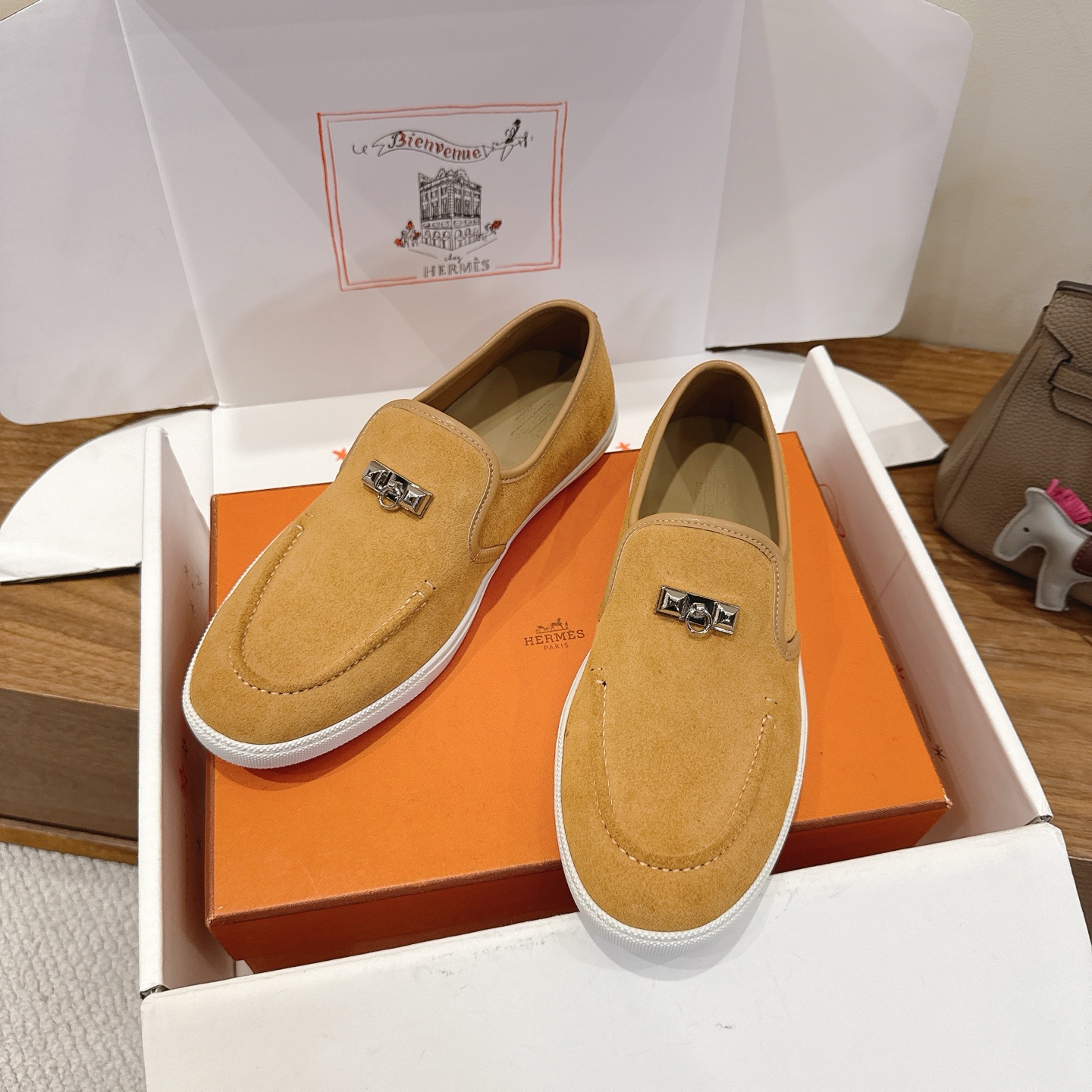 這款鞋子是AAAAA 1:1 質量(非常棒). 使用了和原版一模一樣的材料. 商標部分也保持了和愛馬仕/Hermes一樣. 圖片拍攝是實物鞋子拍攝, 您所收到的實物保證和我們圖片一模一樣.