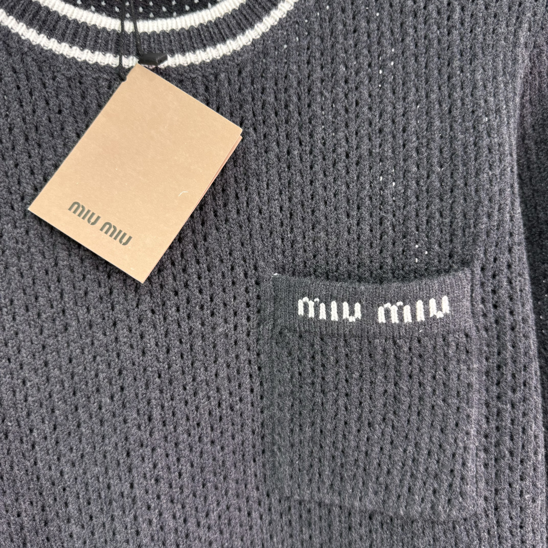 這款衣服是AAAAA 1:1 質量(非常棒). 使用了和原版一模一樣的材料. 商標部分也保持了和繆繆/Miu Miu一樣. 圖片拍攝是實物衣服拍攝, 您所收到的實物保證和我們圖片一模一樣.