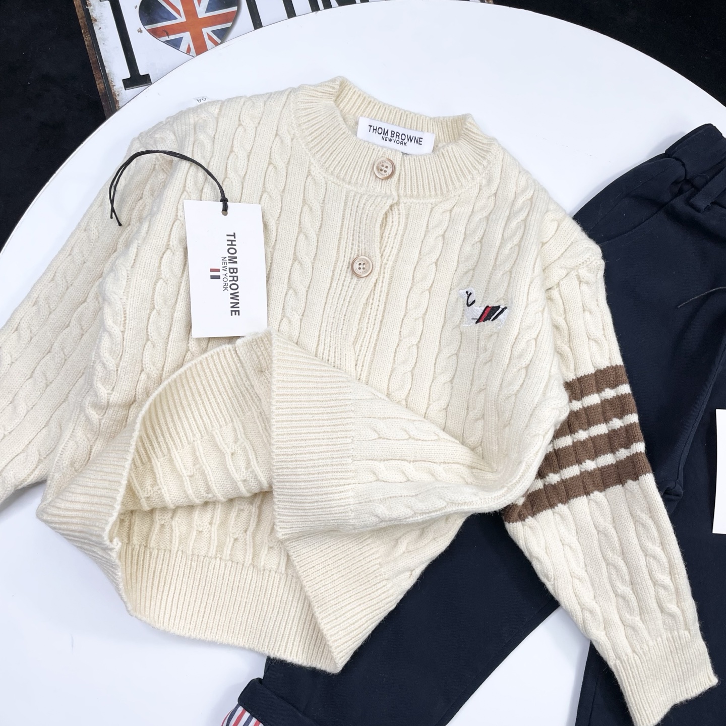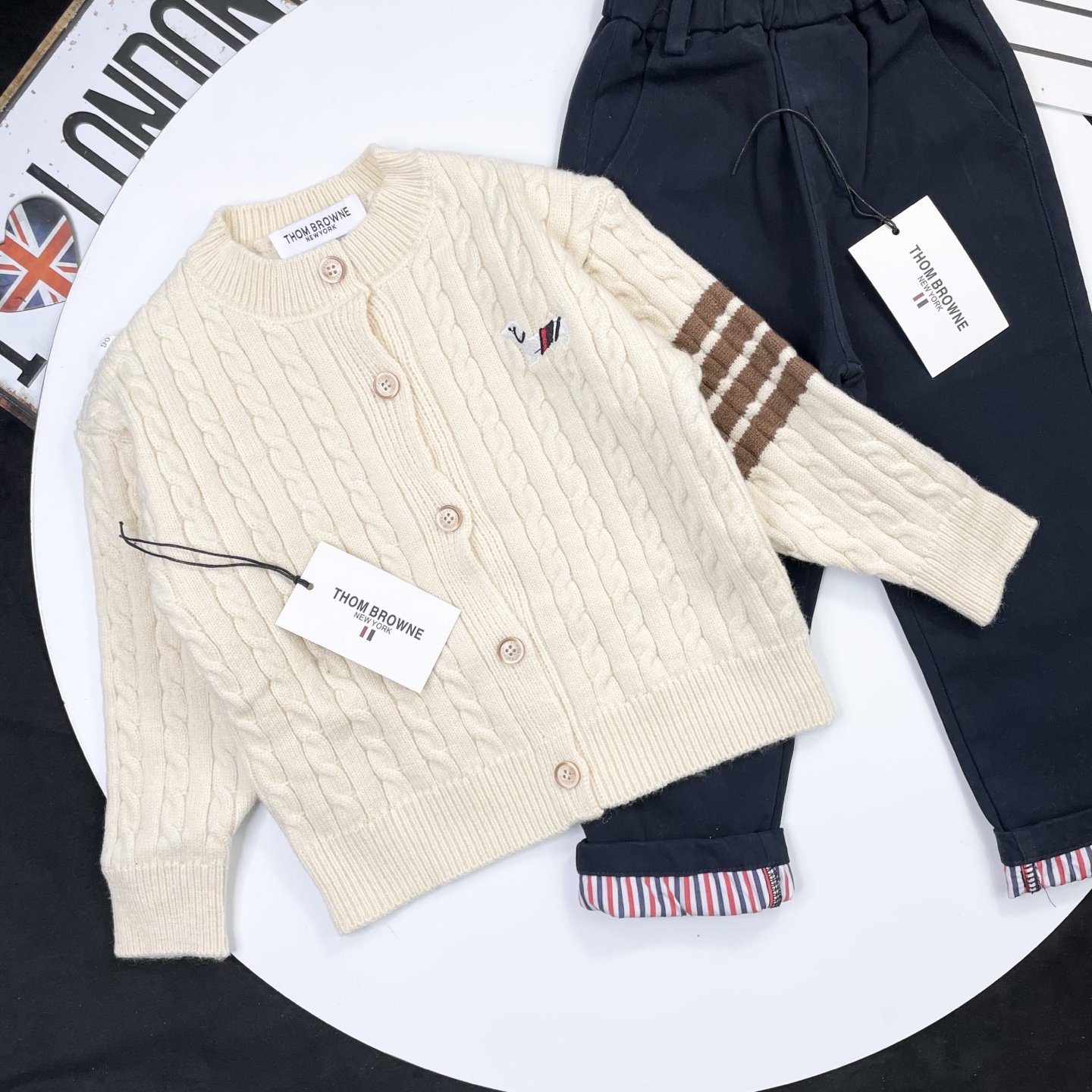 這款children's clothes是AAAAA 1:1 質量(非常棒). 使用了和原版一模一樣的材料. 商標部分也保持了和湯姆布朗/Thom Browne一樣. 圖片拍攝是實物children's clothes拍攝, 您所收到的實物保證和我們圖片一模一樣.