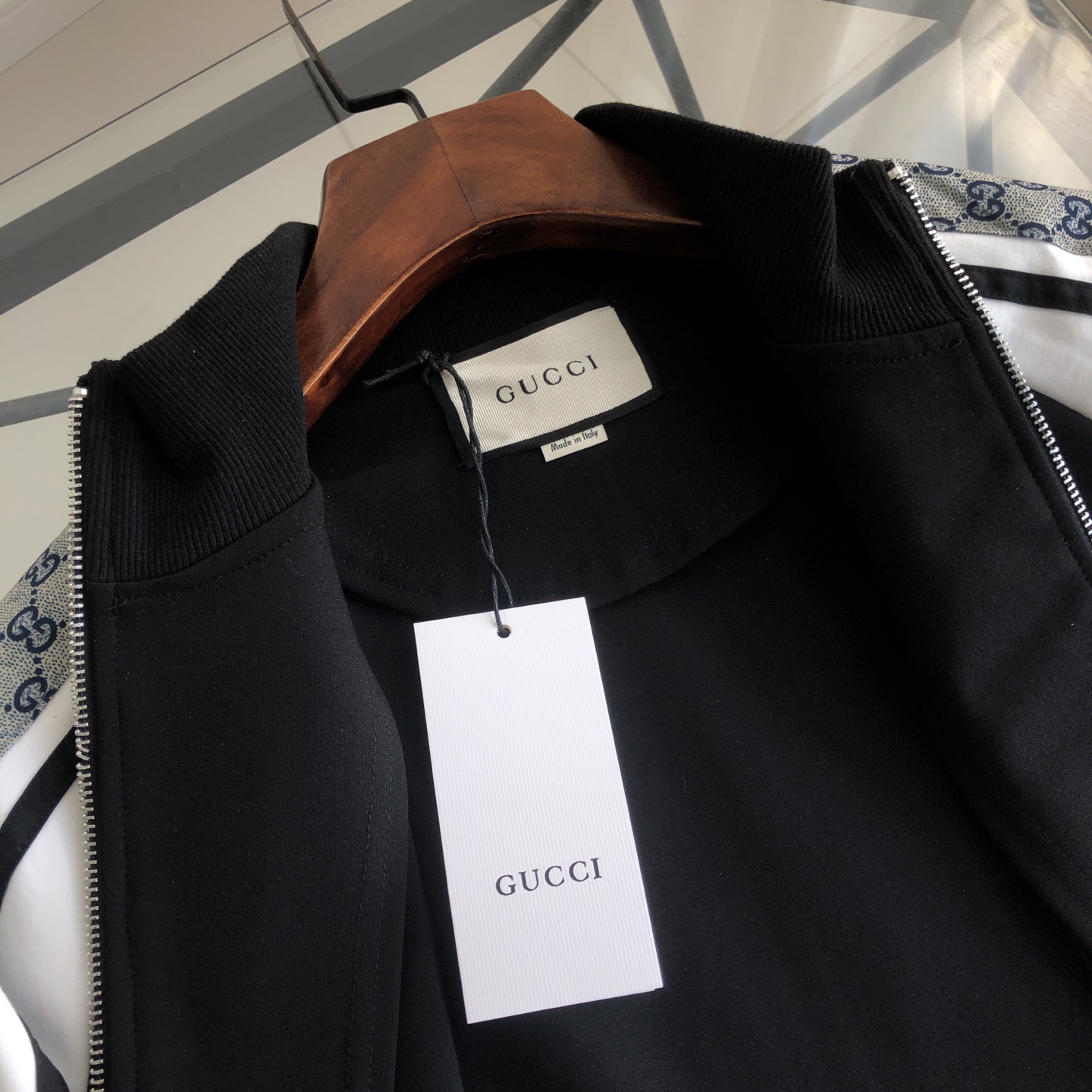 這款衣服是AAAAA 1:1 質量(非常棒). 使用了和原版一模一樣的材料. 商標部分也保持了和古奇/Gucci一樣. 圖片拍攝是實物衣服拍攝, 您所收到的實物保證和我們圖片一模一樣.