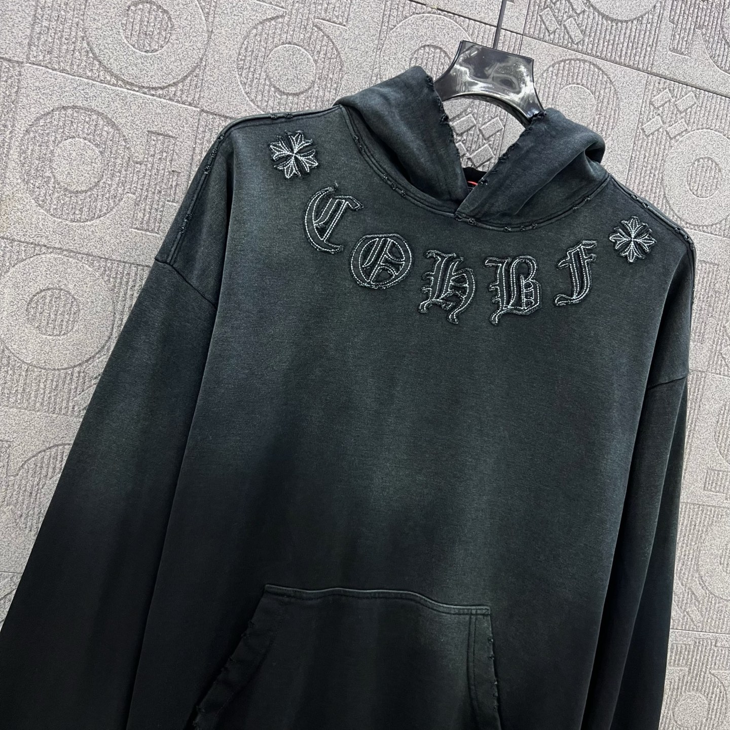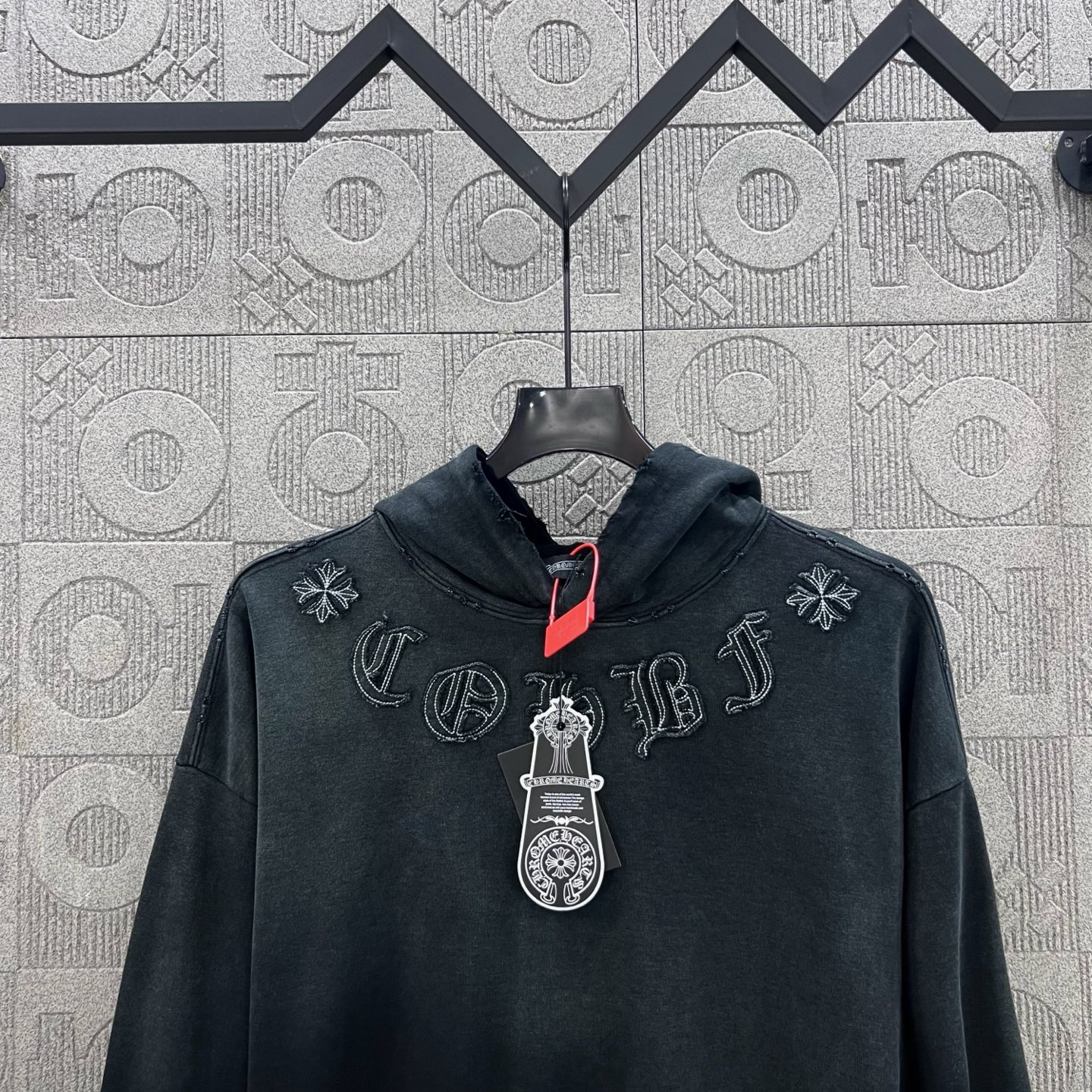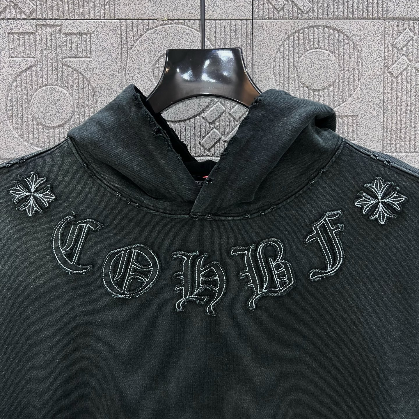 這款衣服是AAAAA 1:1 質量(非常棒). 使用了和原版一模一樣的材料. 商標部分也保持了和鉻心/Chrome Hearts一樣. 圖片拍攝是實物衣服拍攝, 您所收到的實物保證和我們圖片一模一樣.