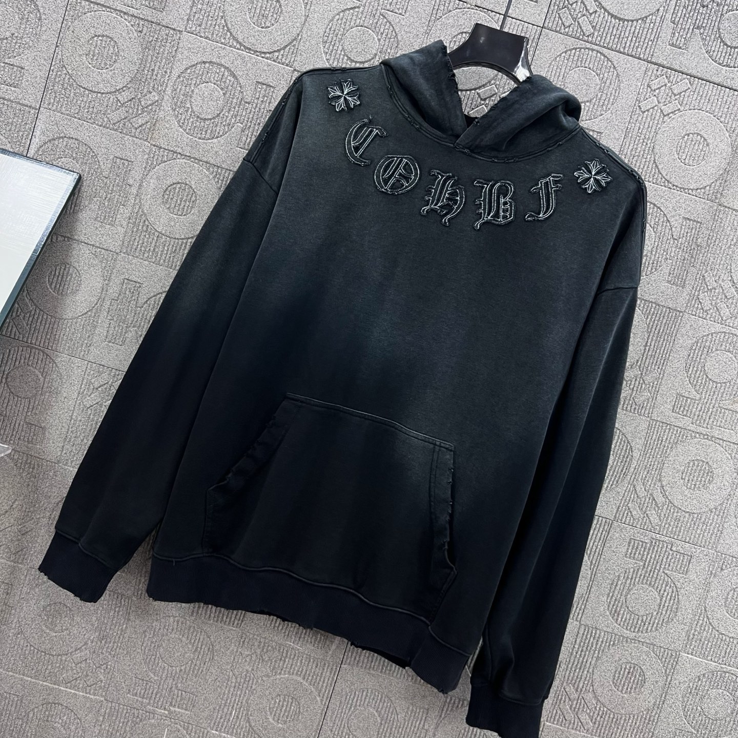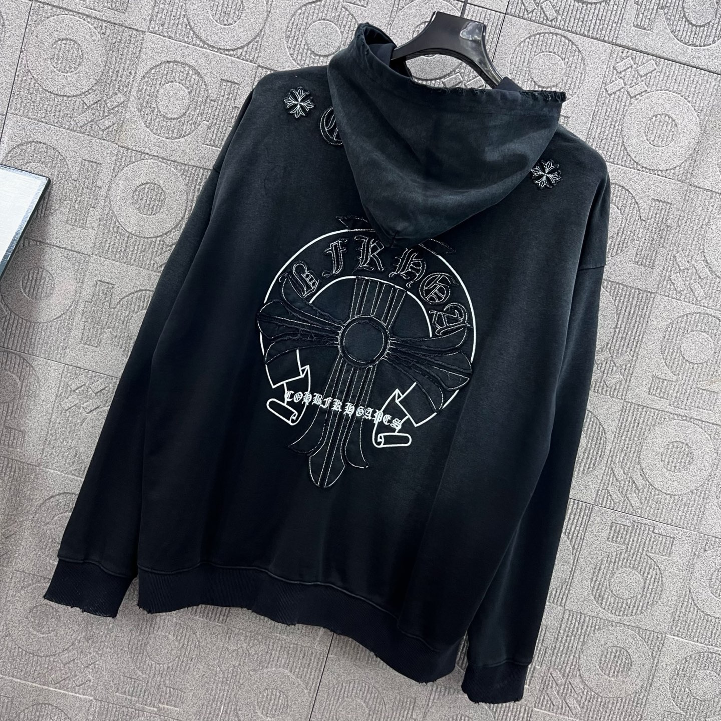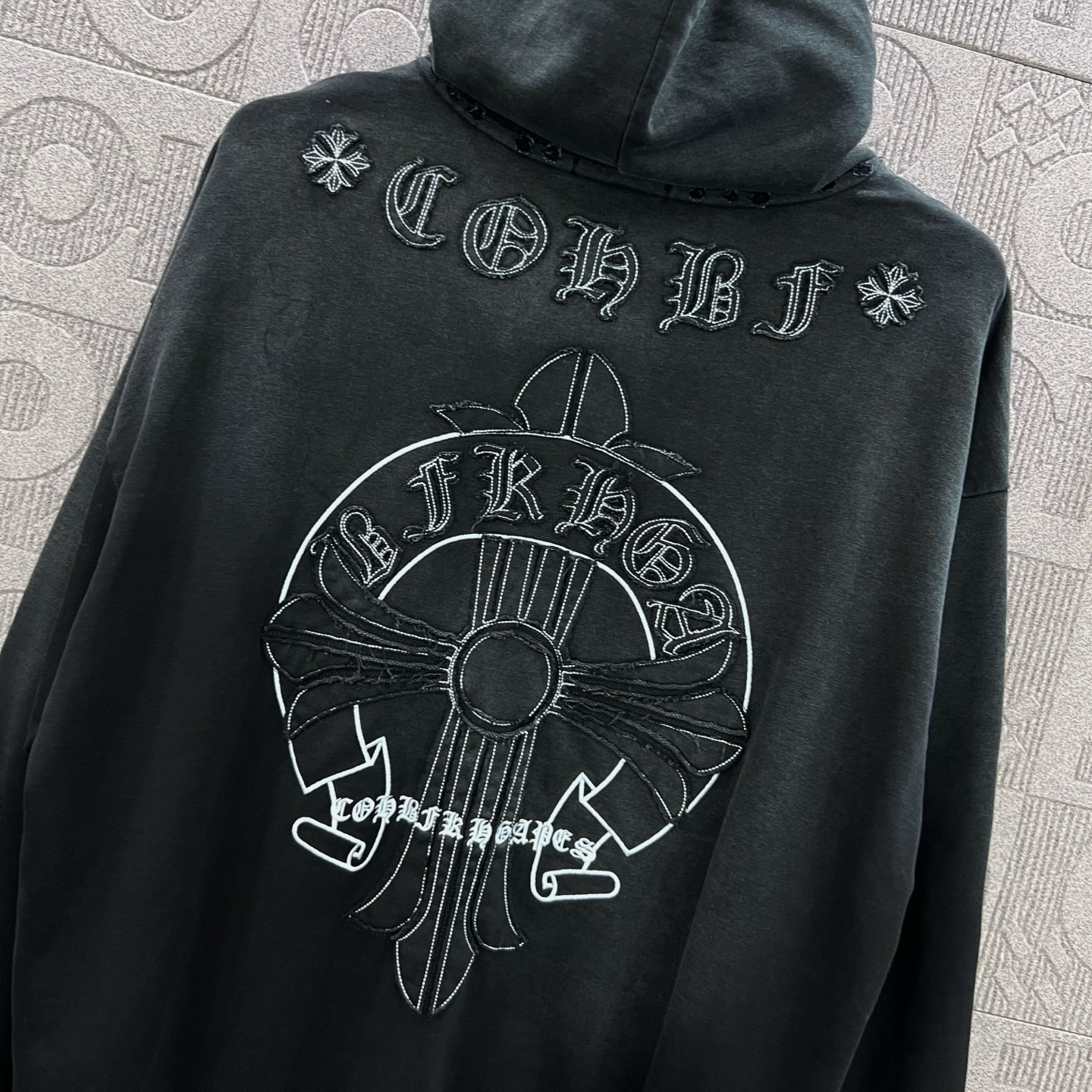 這款衣服是AAAAA 1:1 質量(非常棒). 使用了和原版一模一樣的材料. 商標部分也保持了和鉻心/Chrome Hearts一樣. 圖片拍攝是實物衣服拍攝, 您所收到的實物保證和我們圖片一模一樣.